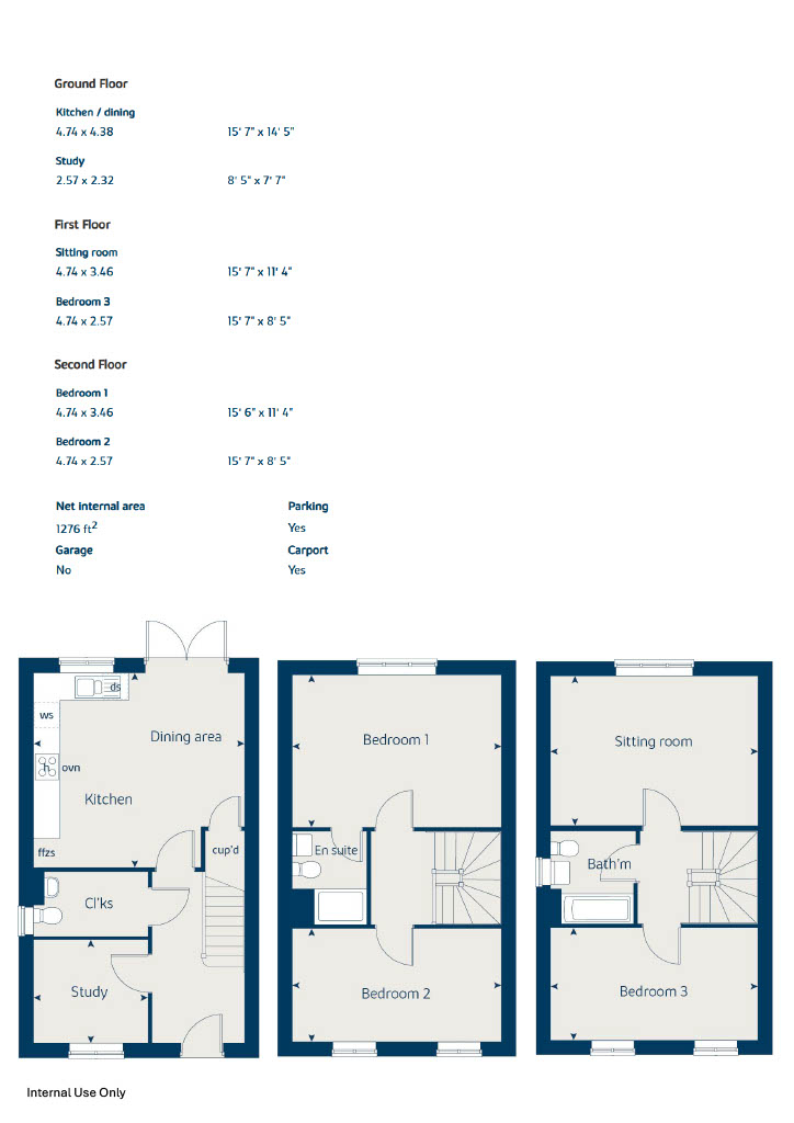 A home that provides living across three floors. The ground floor features a study, kitchen/dining room and convenient cloakroom while on the first floor you will find a living room, bathroom and bedroom. Upstairs the second floor has two further bedrooms and an ensuite to bedroom 1.