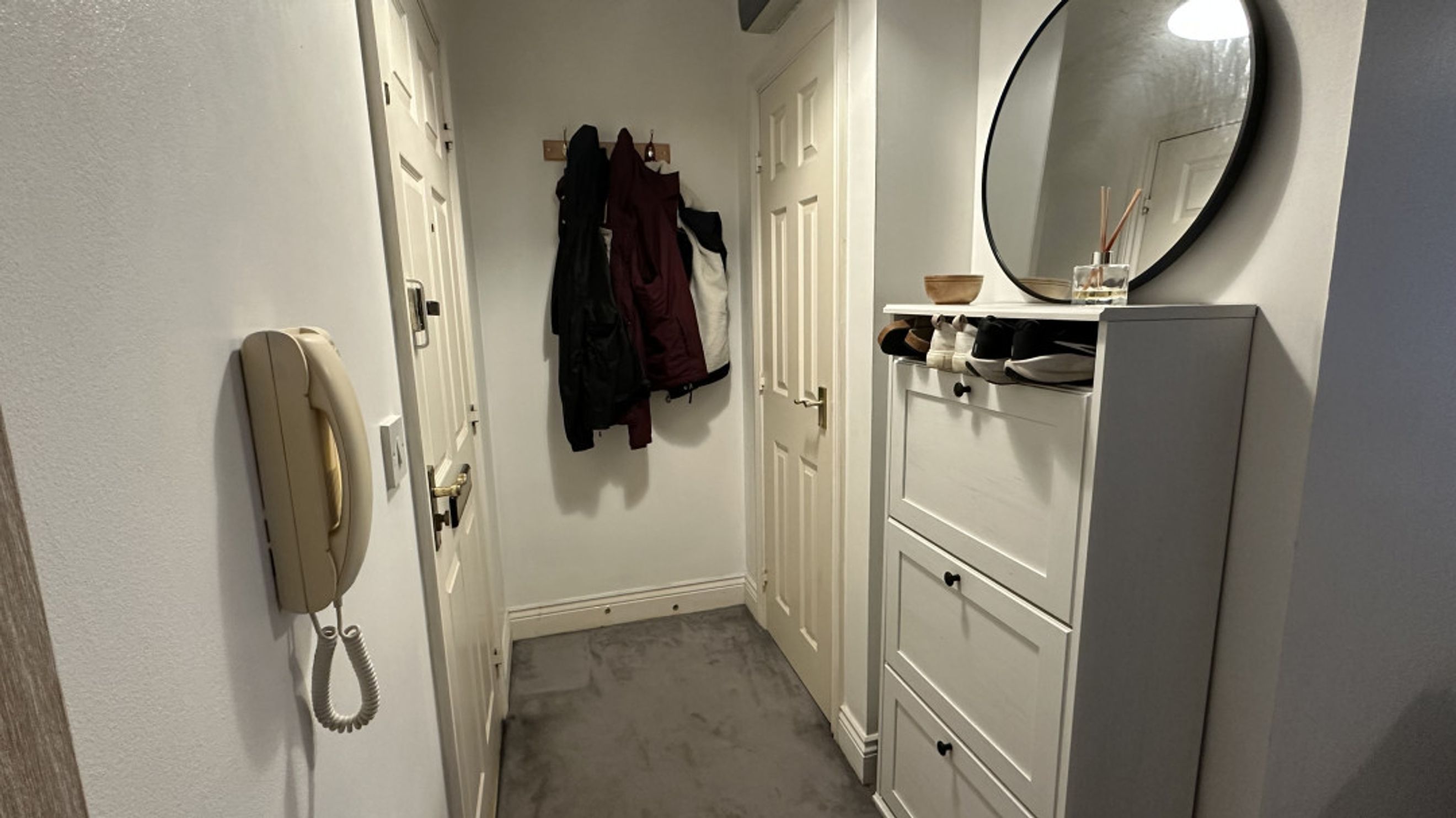 Personal front door. Airing cupboard. Storage cupboard. Radiator.