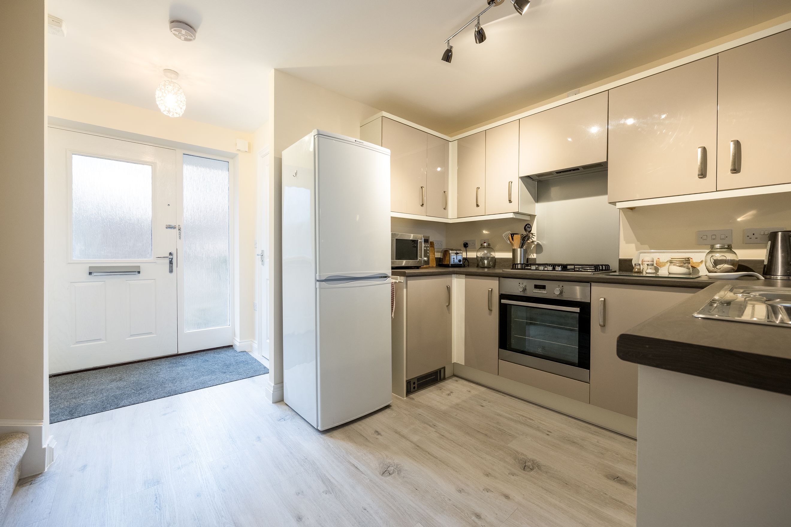 A welcoming hallway provides access to a good sized storage cupboard and a convenient cloakroom, offering excellent everyday functionality. The hallway then opens into a bright and spacious open-plan kitchen and sitting room, forming the heart of the home and providing an ideal space for both relaxing and entertaining, with a seamless flow between cooking, dining, and living areas.
