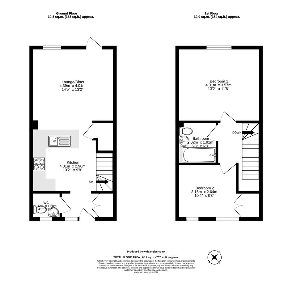 Upstairs, the property comprises two well-proportioned bedrooms. A modern family bathroom completes the first-floor accommodation. Externally, the home benefits from a private rear garden offering a pleasant outdoor retreat with space for seating and low-maintenance landscaping. The end-terrace position also provides side access and additional outdoor flexibility compared to mid-terrace homes.