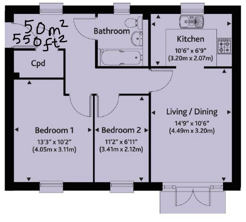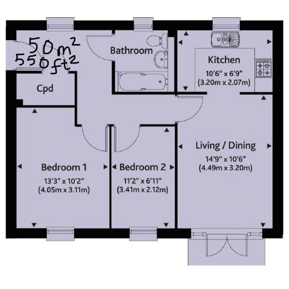 The separate kitchen is generously sized, with ample worktop space and storage. Both bedrooms are well-proportioned doubles, offering flexibility for a main bedroom and guest room, home office, or nursery.