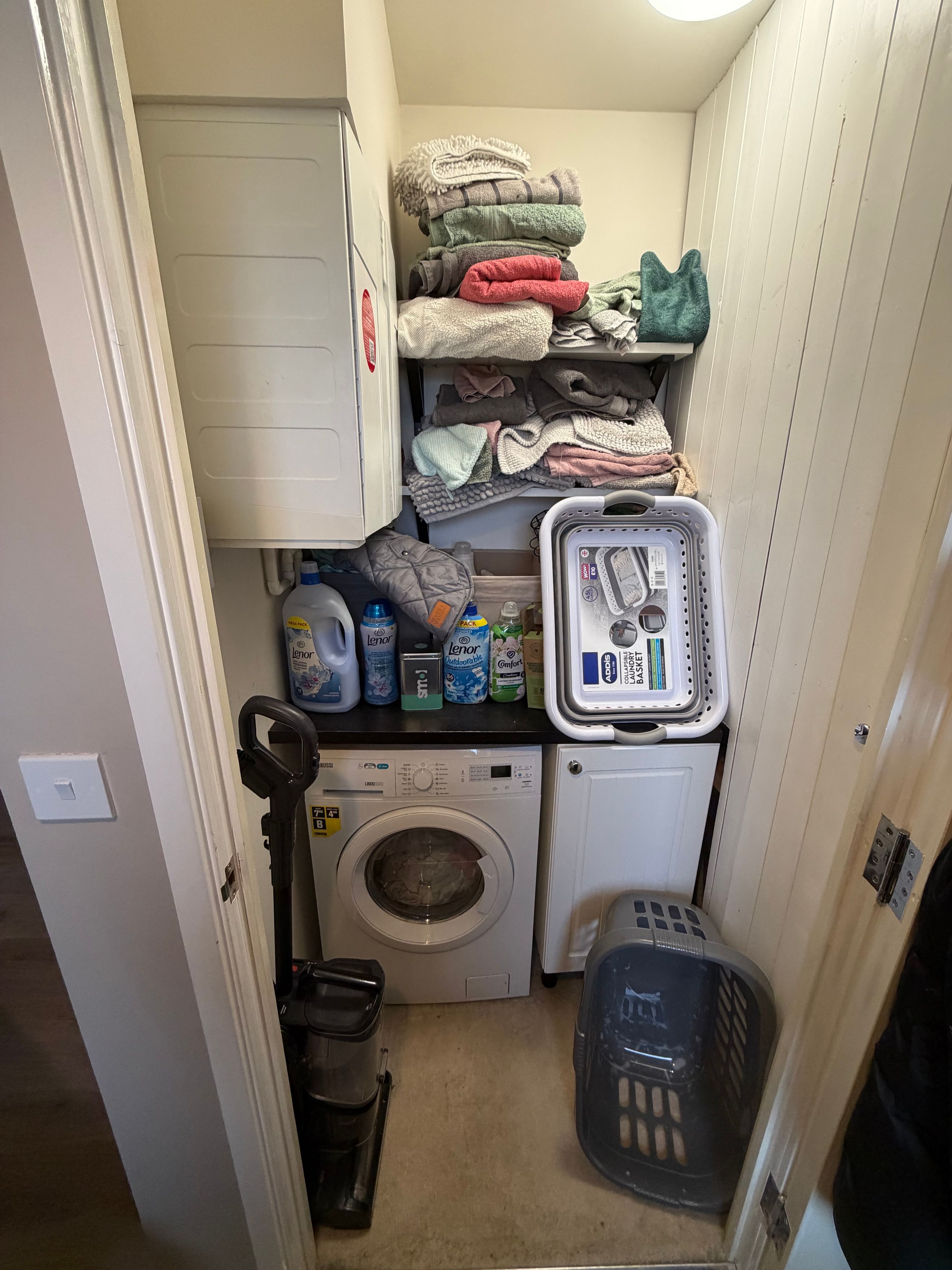 The property also benefits from a handy utility cupboard, neatly tucked away to keep household tasks out of sight. It houses a washing machine and provides additional storage space for cleaning supplies and laundry essentials, helping to keep the main living areas clutter-free and organised.