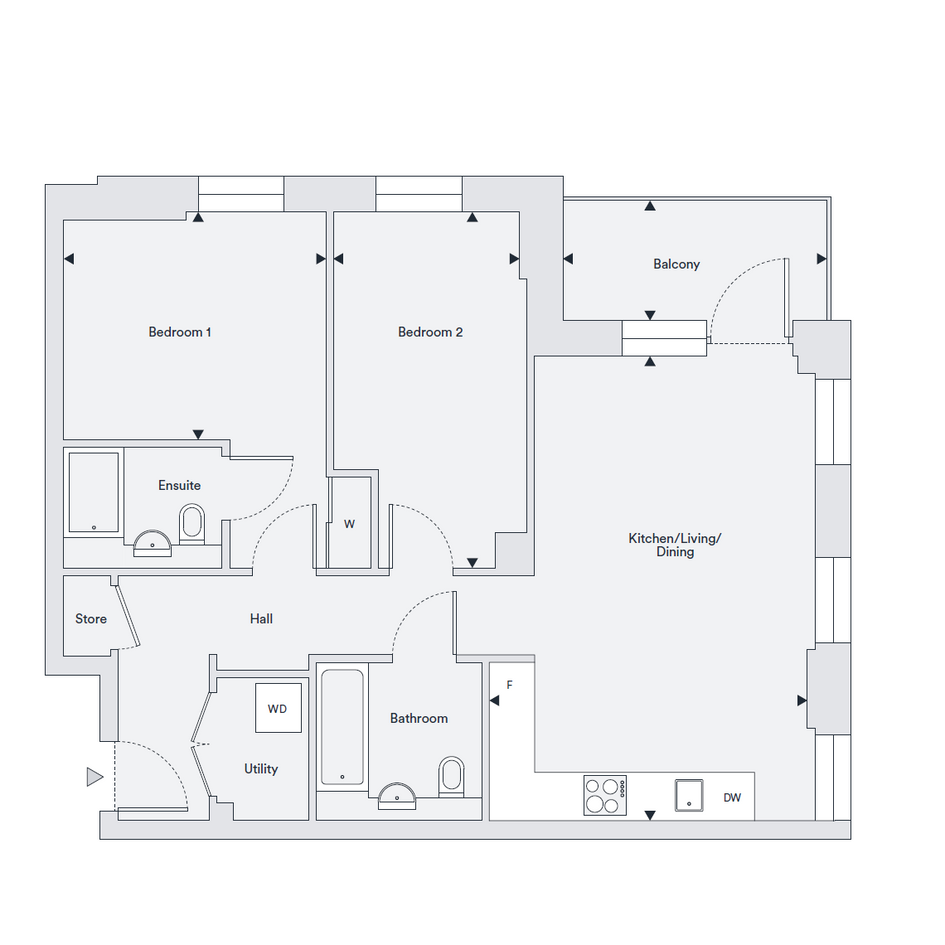 2 bedroom, 2 bathrooms, 8th floor apartment offering 71.1 sq.m of internal floor area with outdoor space. Boosting a bright and airy open-plan kitchen/living/dining area with Bosch integrated appliances.