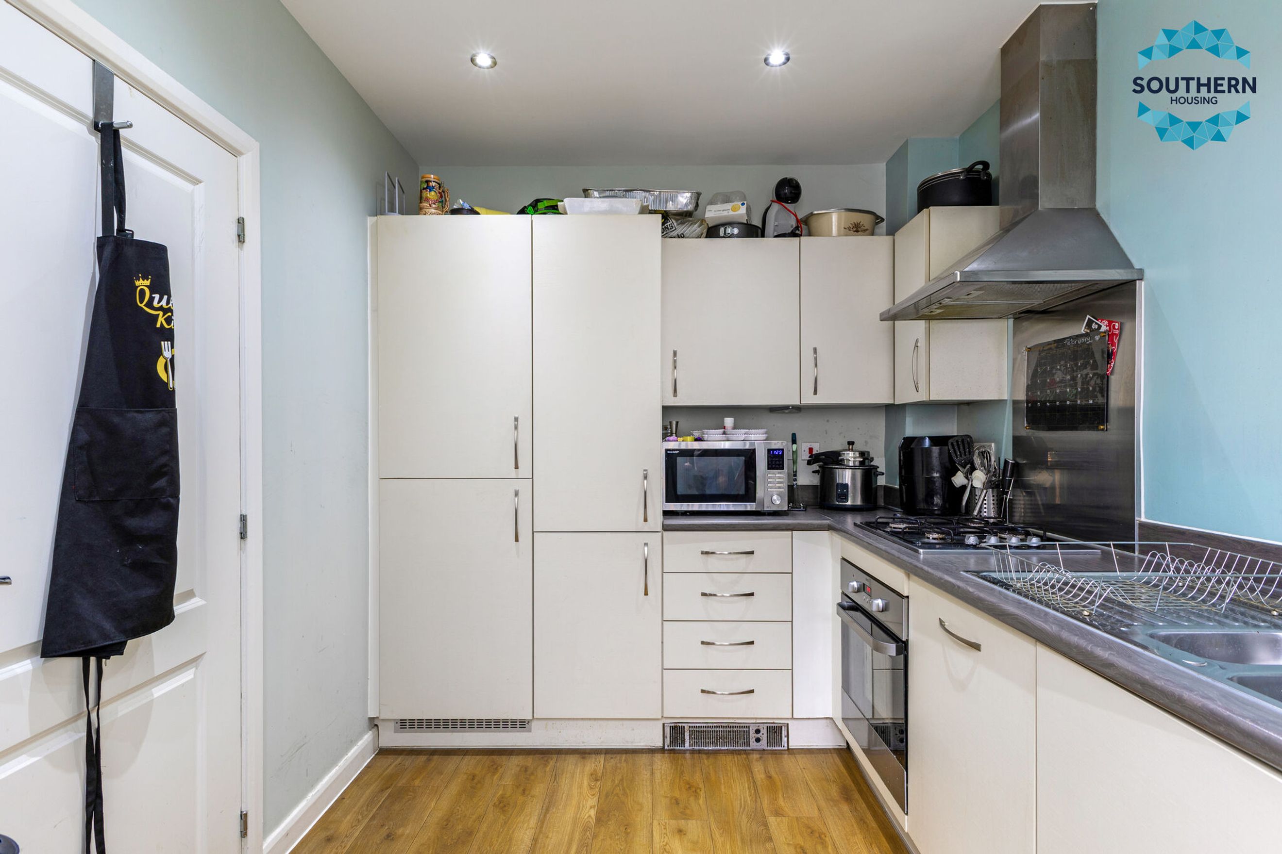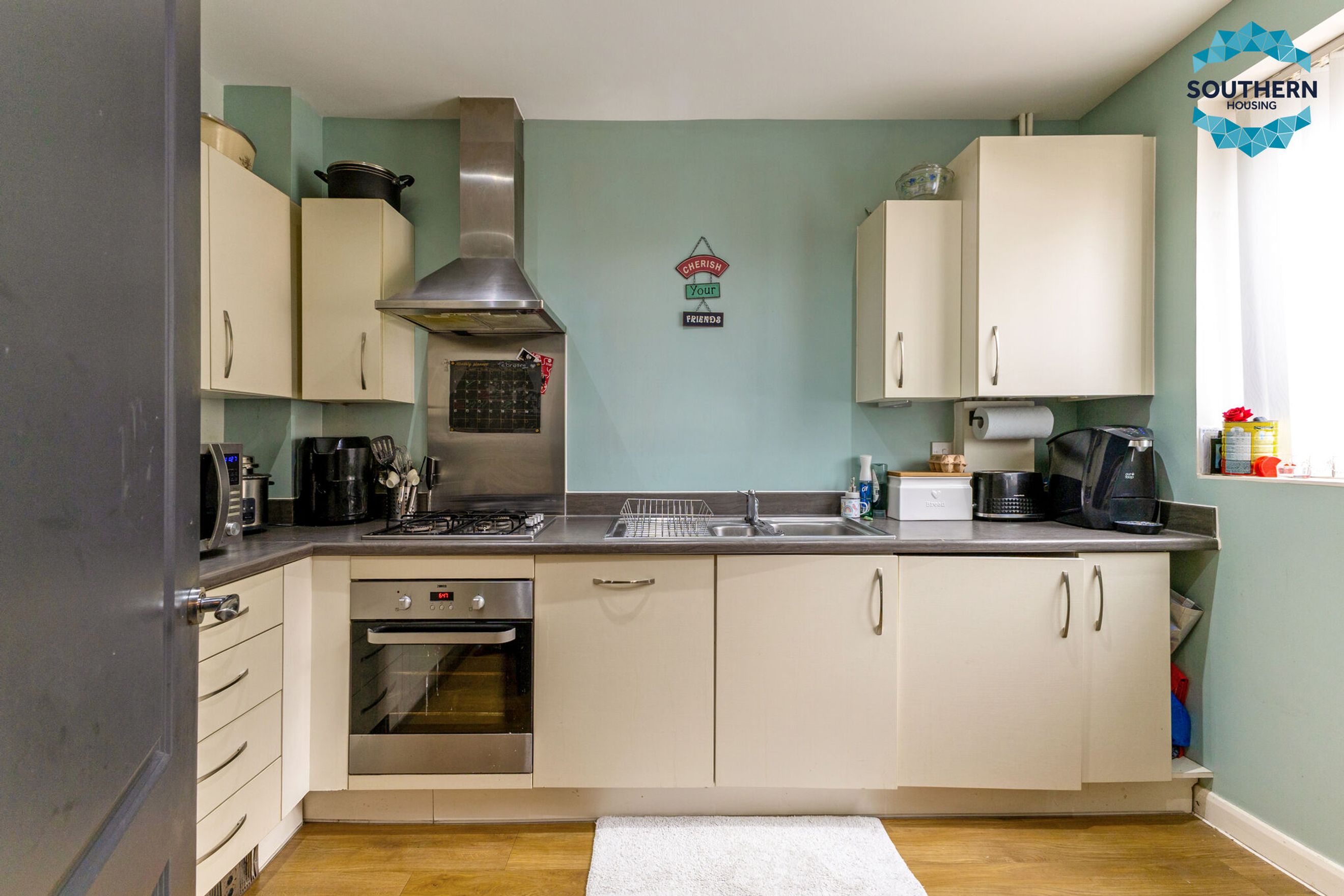 The well‑appointed kitchen offers ample worktop space and comes complete with fitted appliances, including an oven, hob, and fridge freezer, providing everything you need for convenient everyday living.