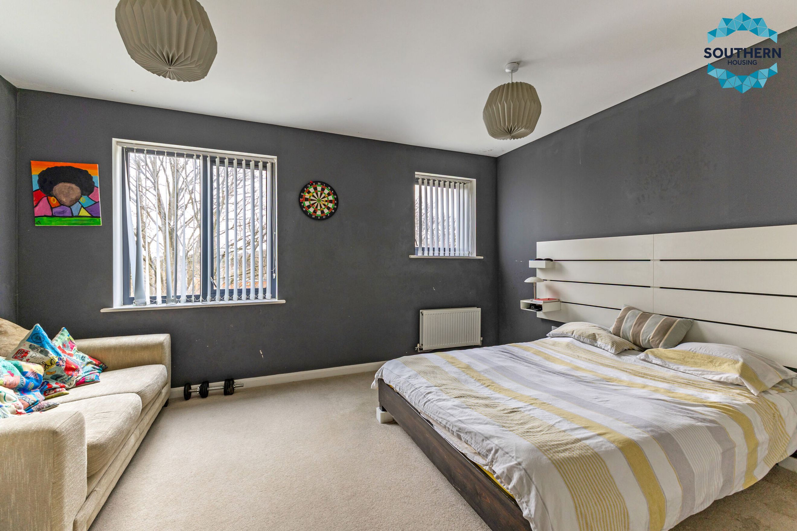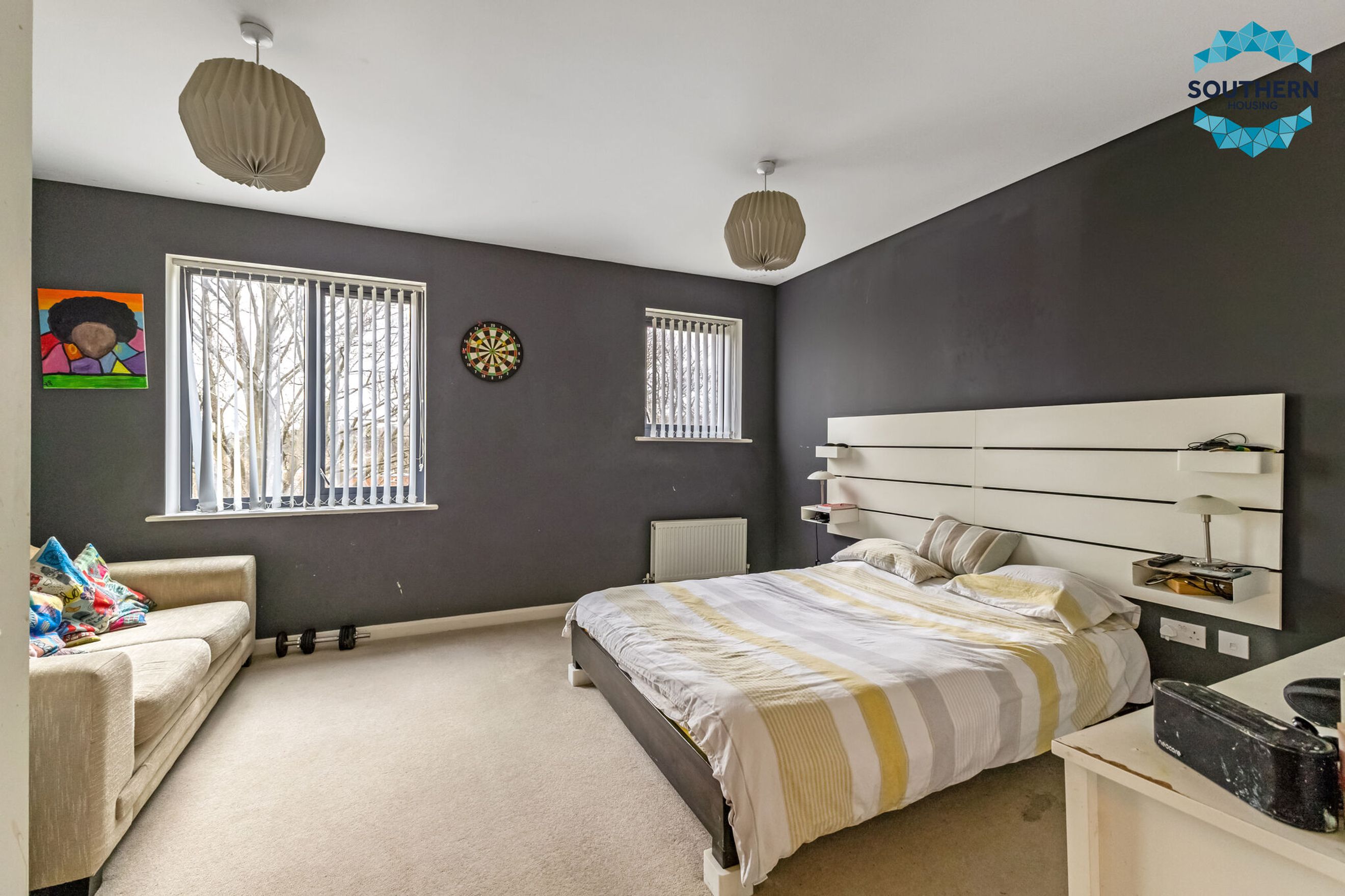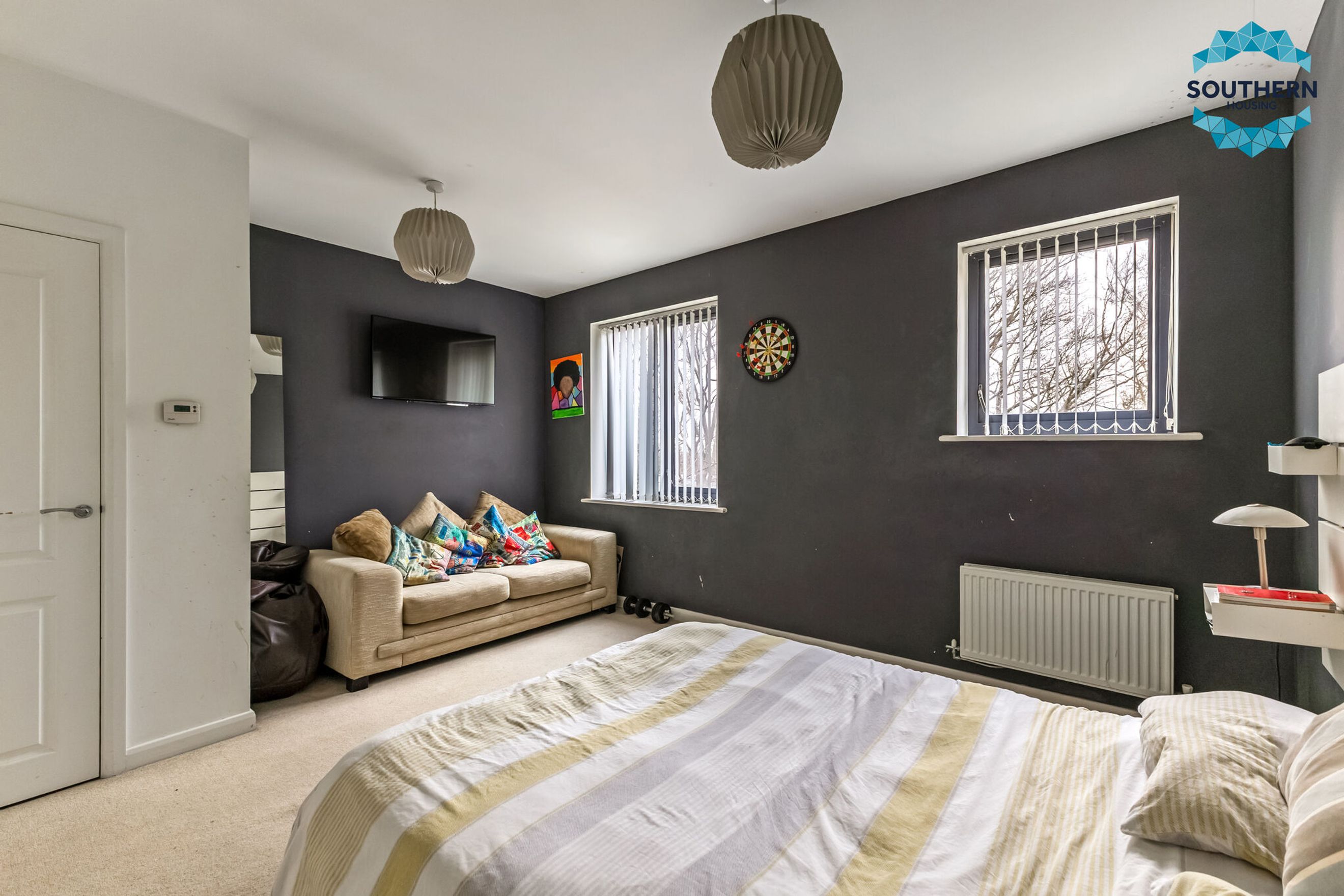The second bedroom is equally spacious, easily fitting a double bed and additional furnishings.