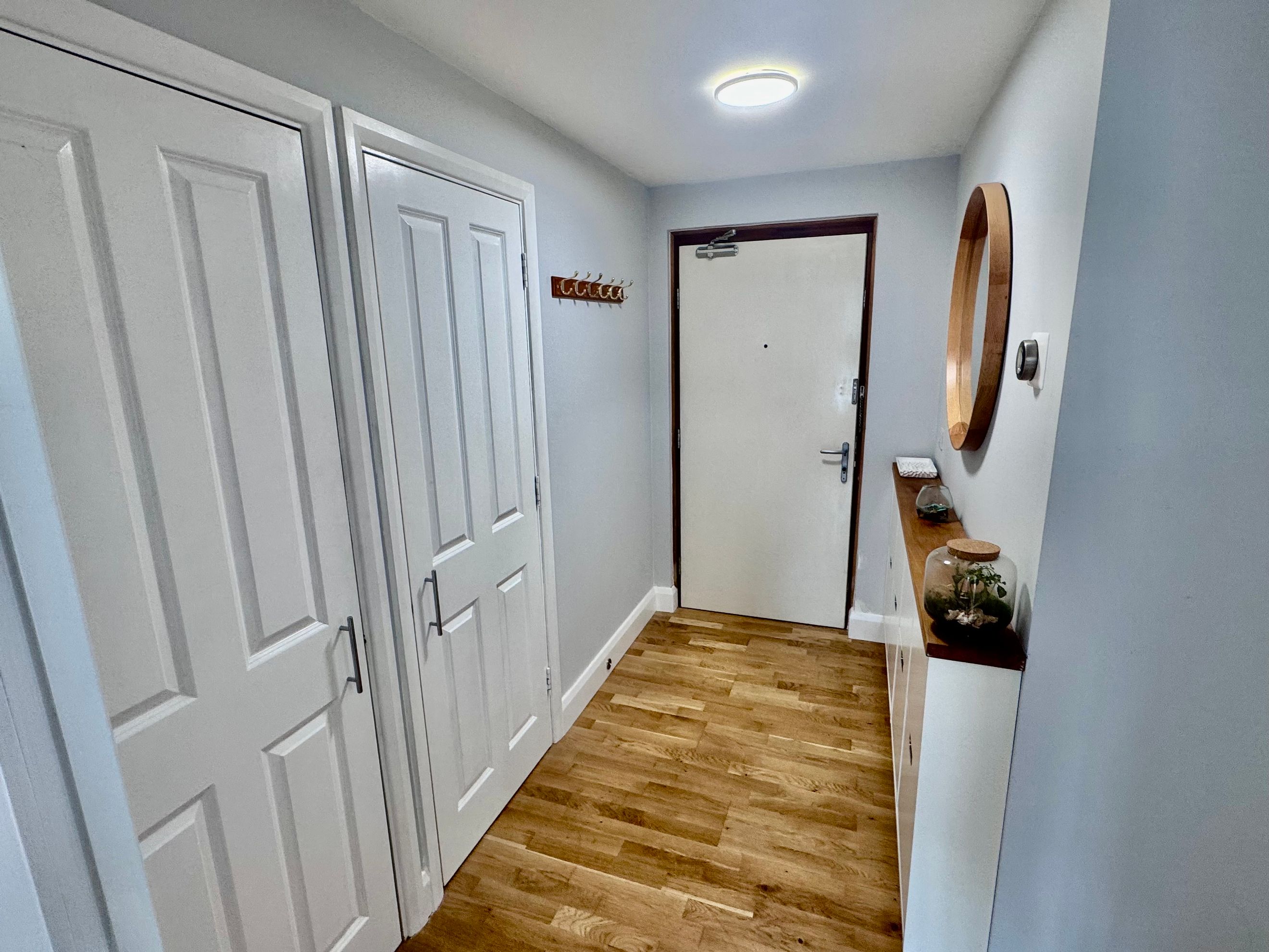 The apartment is bright and well laid out, with two good sized double bedrooms, a modern kitchen, a three piece bathroom suite, and two internal storage cupboards in the hallway.