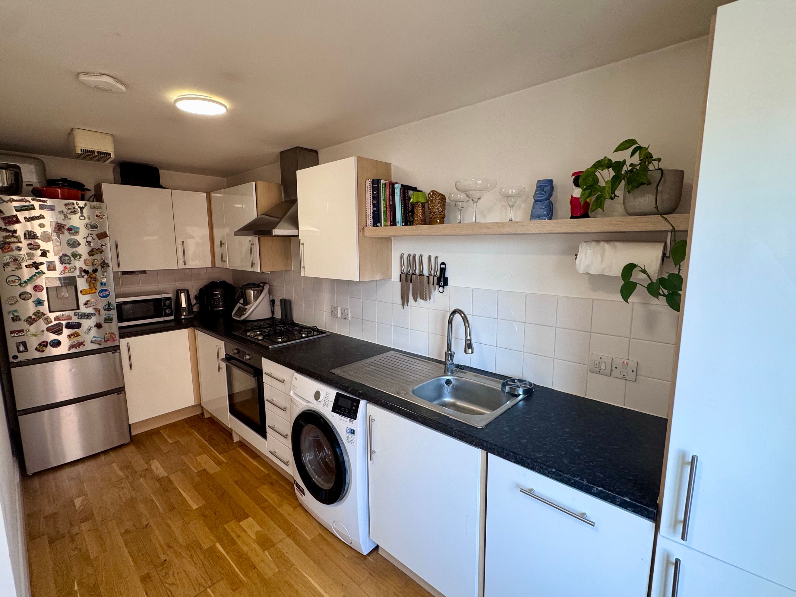 The separate living room has direct access to a south facing balcony, and both bedrooms are also south facing, bringing plenty of natural light into the flat.