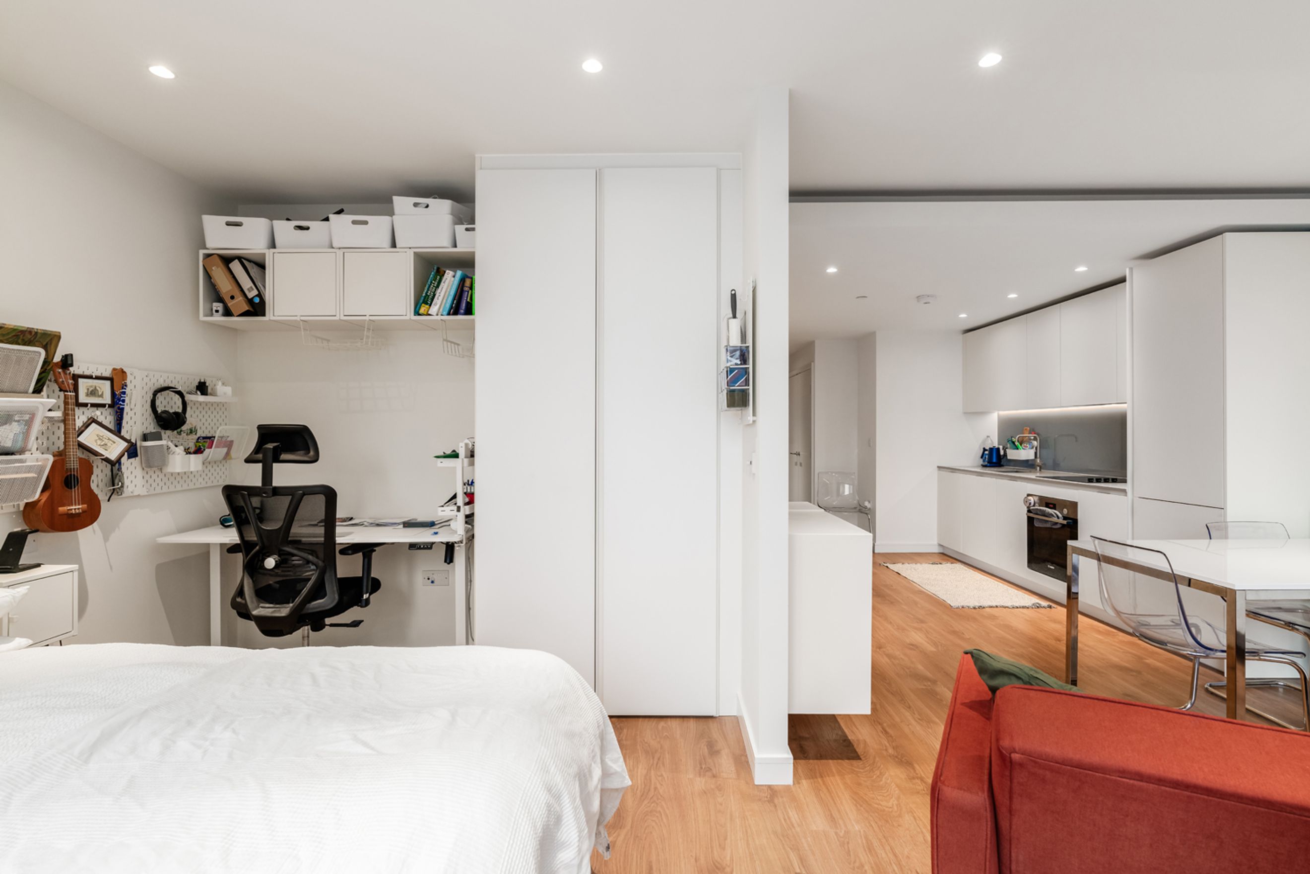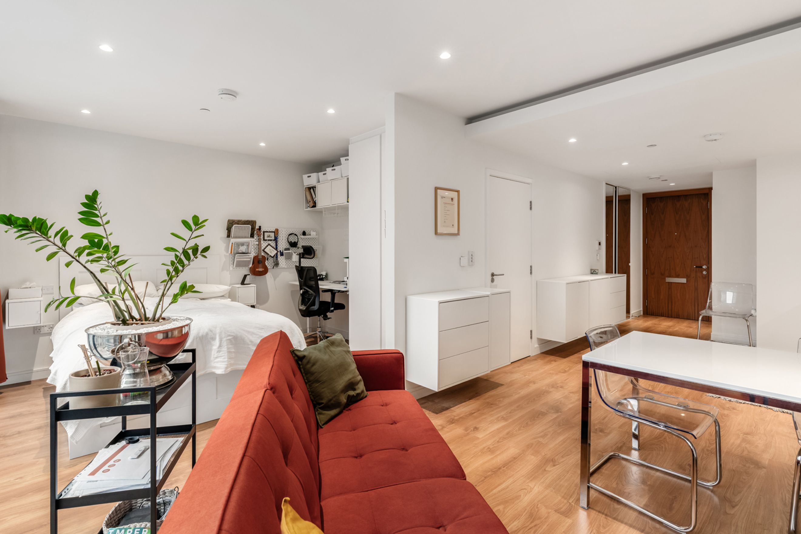 Modern studio apartment overlooking Canary Wharf | Residents' pool, gym, rooftop and private cinema | High specification finishes throughout | Excellent transport links across London