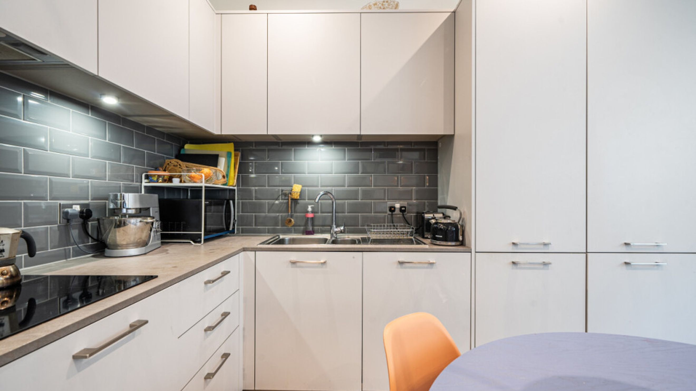 Numerous local shops include Asda within a 2 minute walk as well as excellent coffee shops and restaurants a short walk east and west. The Victoria Pub is also just around the corner.