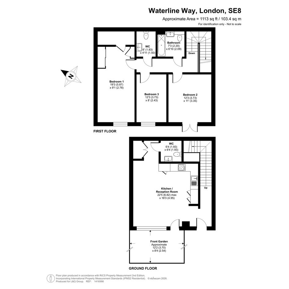 Enter this duplex via your own front door. On the ground floor find a large open plan reception area, which opens onto a private south west facing patio garden, and a guest cloakroom. The kitchen features fully integrated appliances. Stairs take you to the first floor where you will find two double bedrooms and one large single, all south-west facing. One of the doubles, currently used as a home office, opens onto a juliette balcony. The second double includes a built in wardrobe and walk-in store. This floor also features a contemporary bathroom and second cloakroom.
