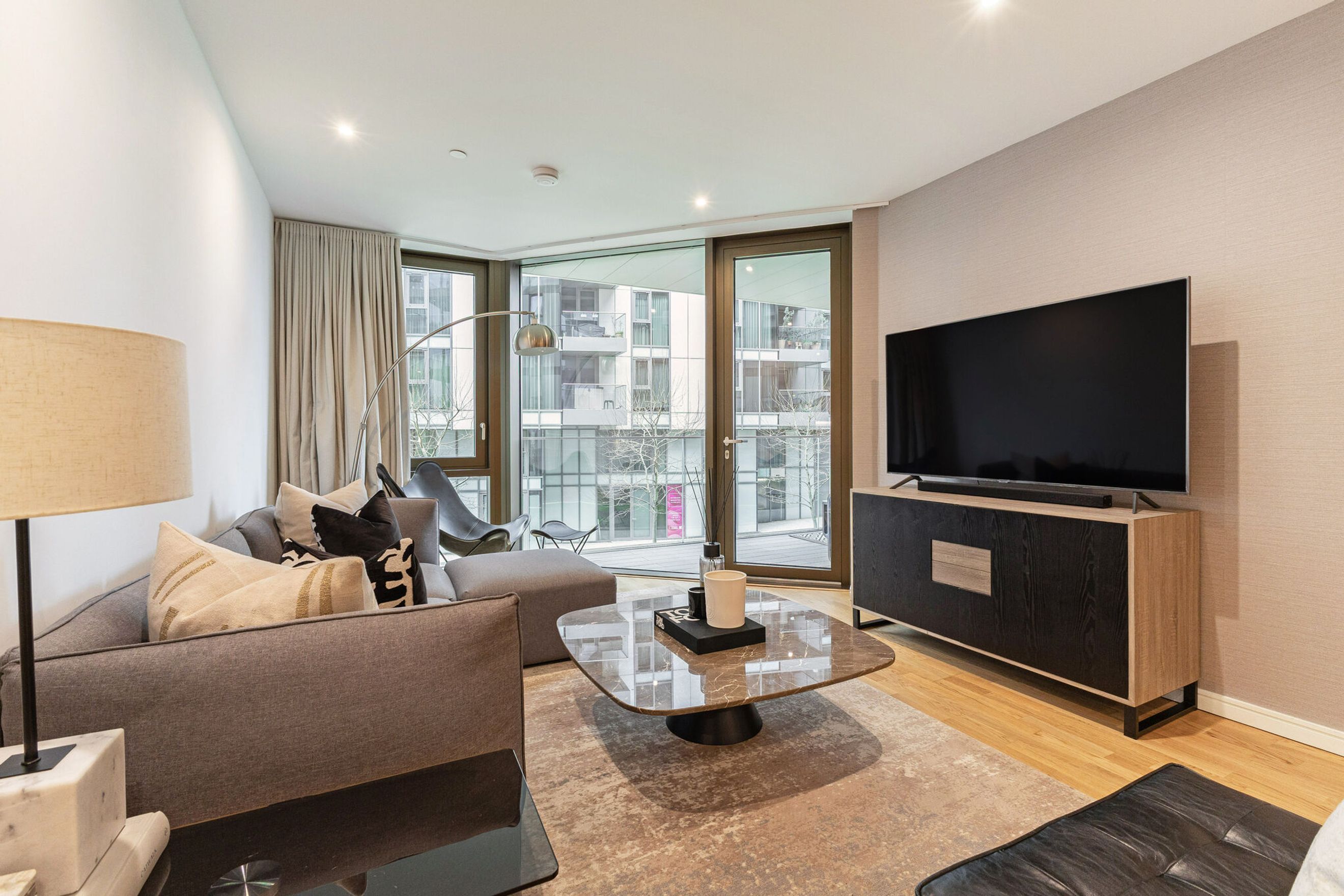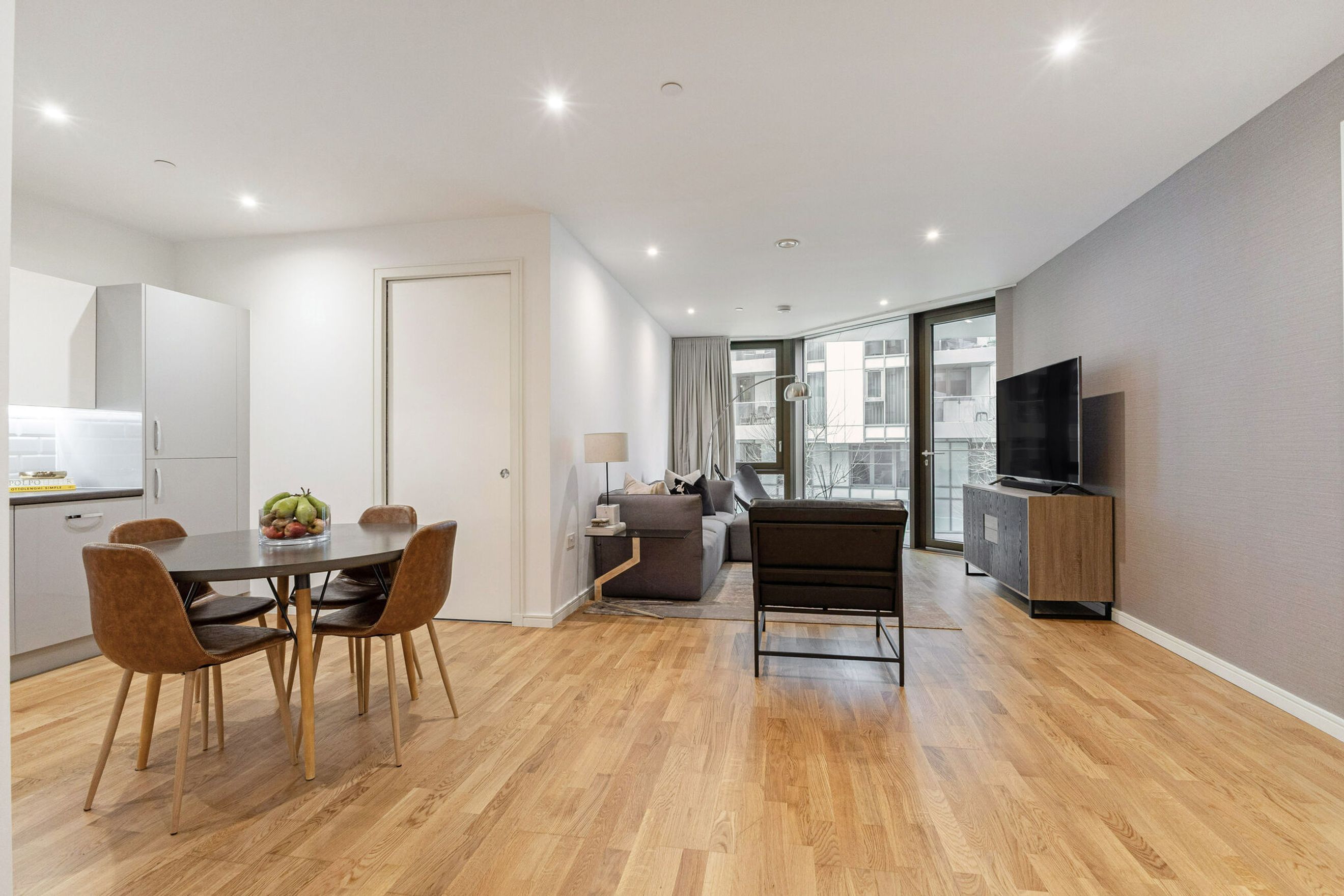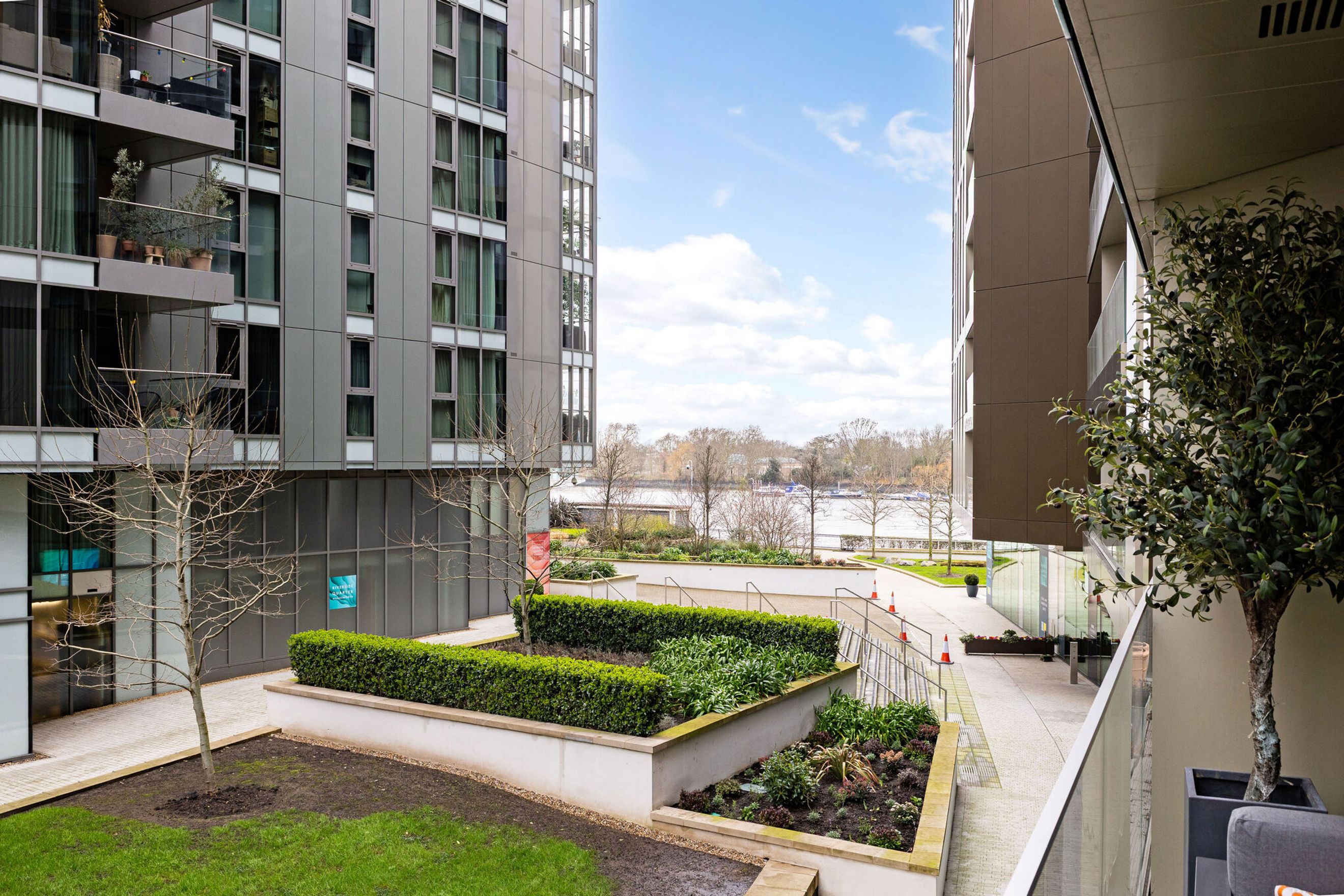 Green spaces are another highlight of living on Enterprise Way. The development sits just moments from the River Thames and the picturesque open spaces of Wandsworth Park, a popular riverside spot known for its tree-lined paths, recreation areas and peaceful views that offer a refreshing escape from the urban environment. Many residents also appreciate the nearby landscaped communal gardens found within the Riverside Quarter development, adding to the sense of greenery and calm within the neighbourhood.