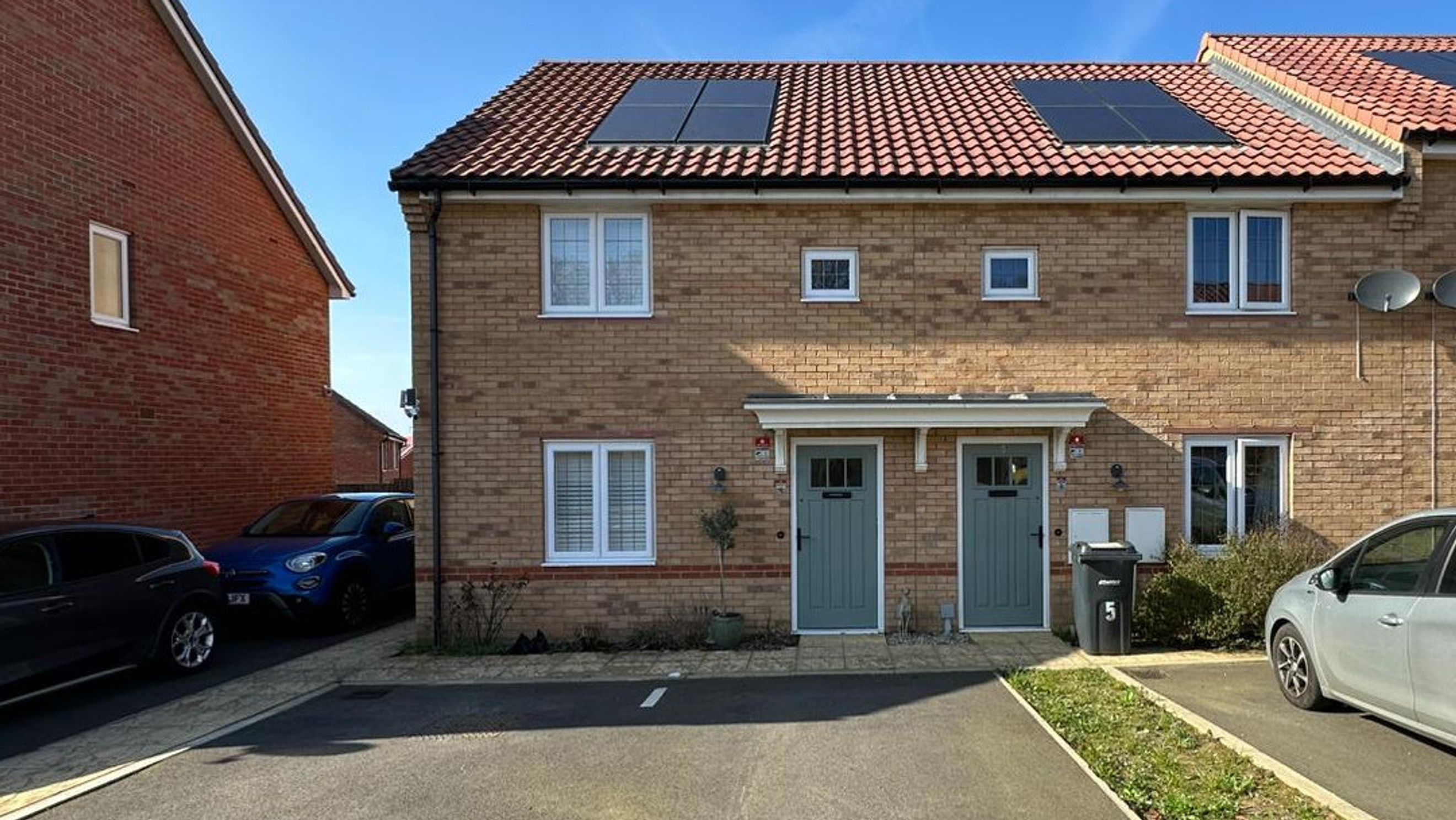 2 parking spaces at the front of the property, private rear garden including a shed, with side access.