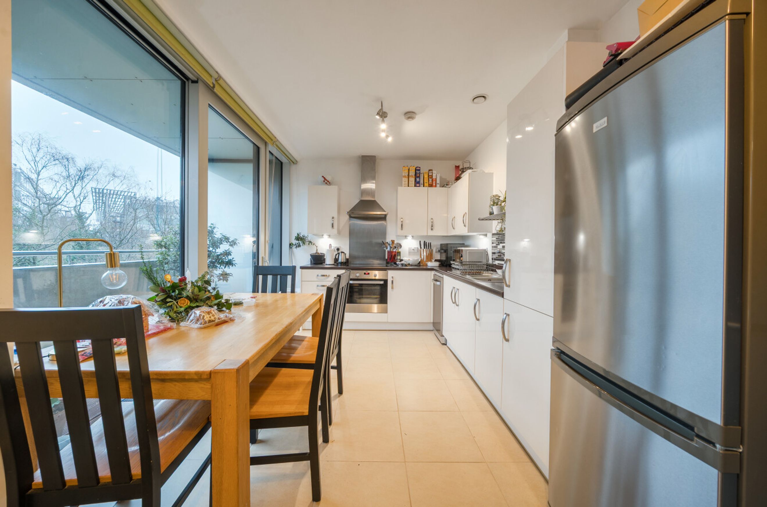 This well-presented apartment is on the second floor of a smart, modern development between Chiswick Park Station and the footbridge leading to Chiswick Business Park. The property has a twenty-eight-foot reception room with floor-to-ceiling windows along the south-west side. A sliding door leads out onto a full-width balcony which overlooks Gunnersbury Triangle Nature Reserve. The open-plan kitchen area features sleek, white units and large-format floor tiles. There is a main bedroom with built-in, mirror-fronted wardrobe plus a second, similar-sized double bedroom and a bathroom with pencil-mosaic detailing. A pair of storage/utility cupboards have been provided in the entrance hall and well insulated walls, modern double glazing and a communal heating and hot water system make for a good energy-efficiency rating. Acton Green Common, Turnham Green and the shops/amenities of Chiswick High Road are all close by. Ofsted list nine primary schools and two secondary schools within a mile radius, all rated either 'Good' or 'Outstanding'.
