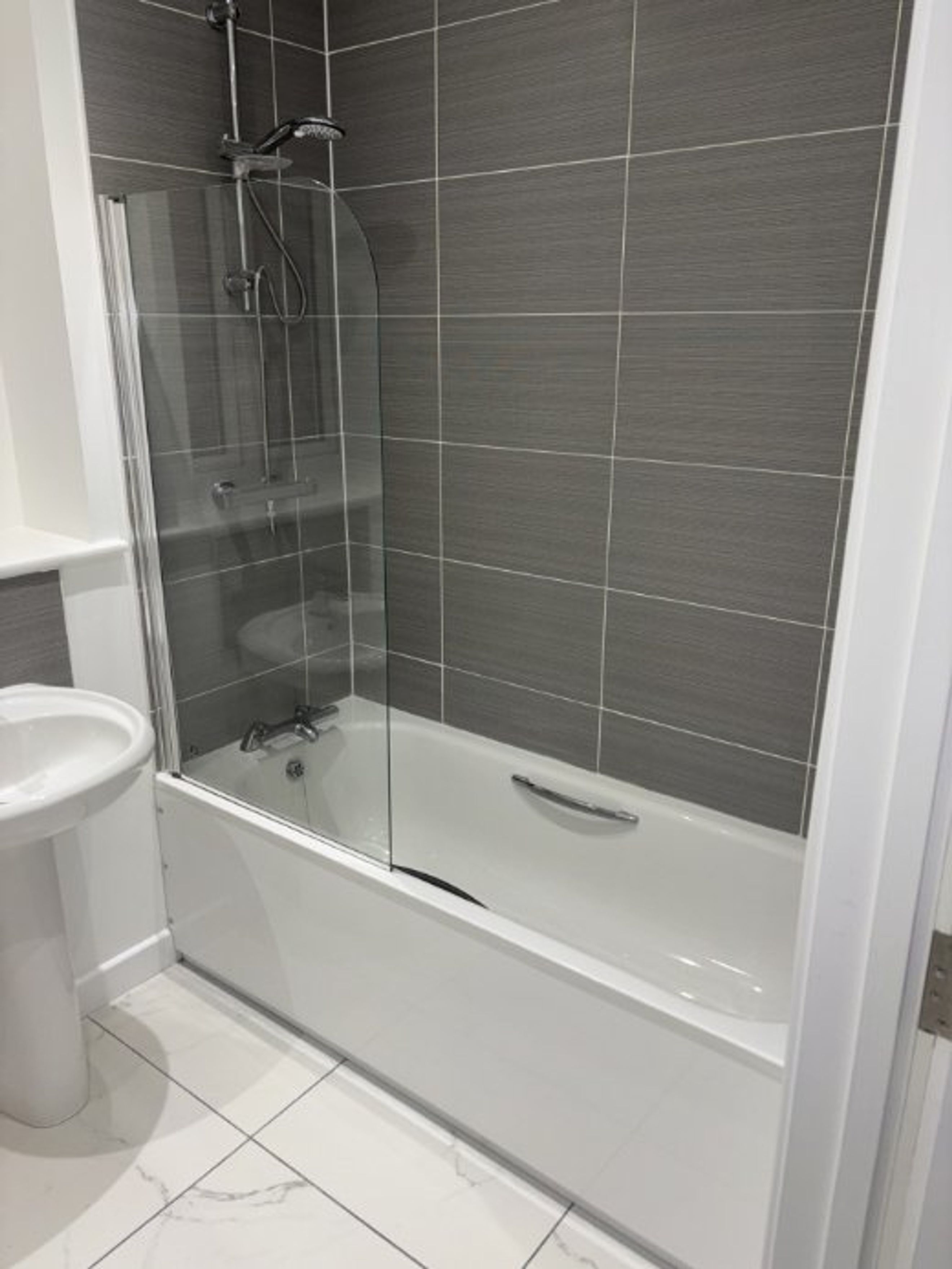 Both bedrooms are well‑sized, and the bathroom is finished with a modern suite. An allocated parking space is provided.