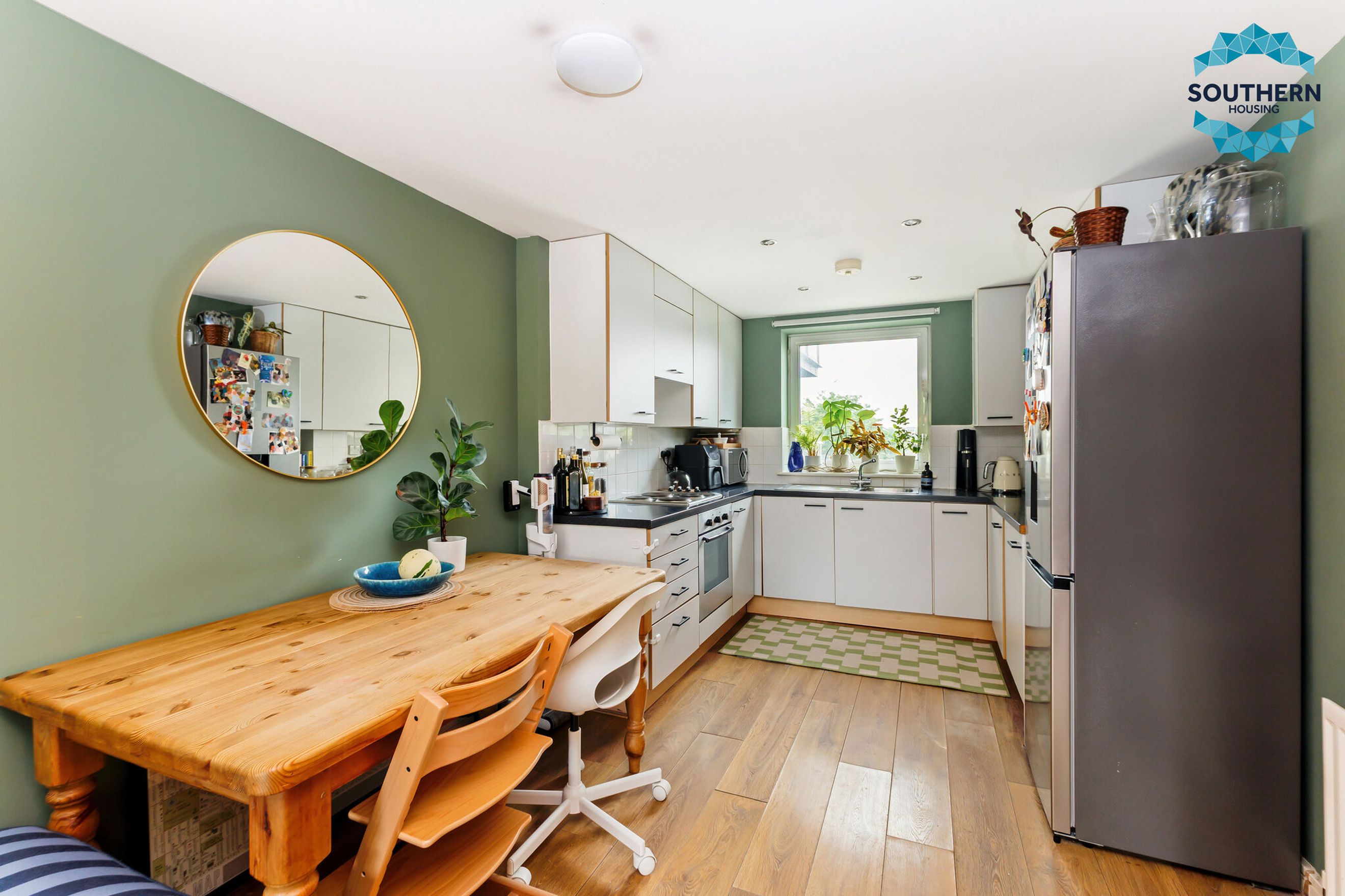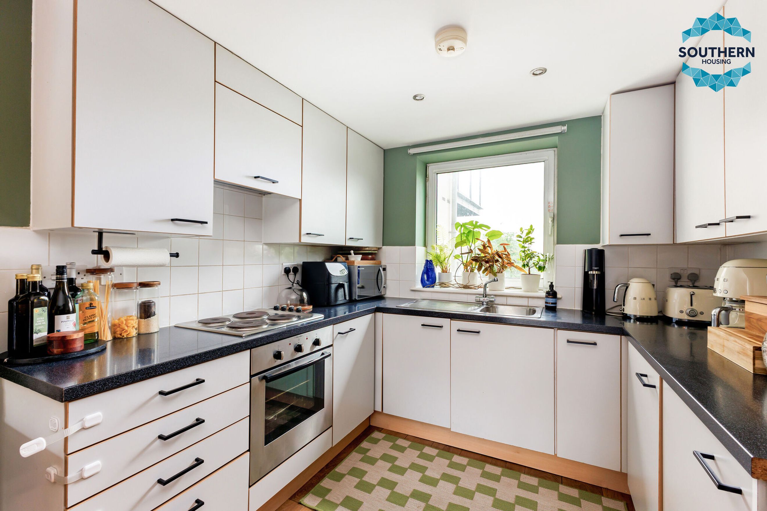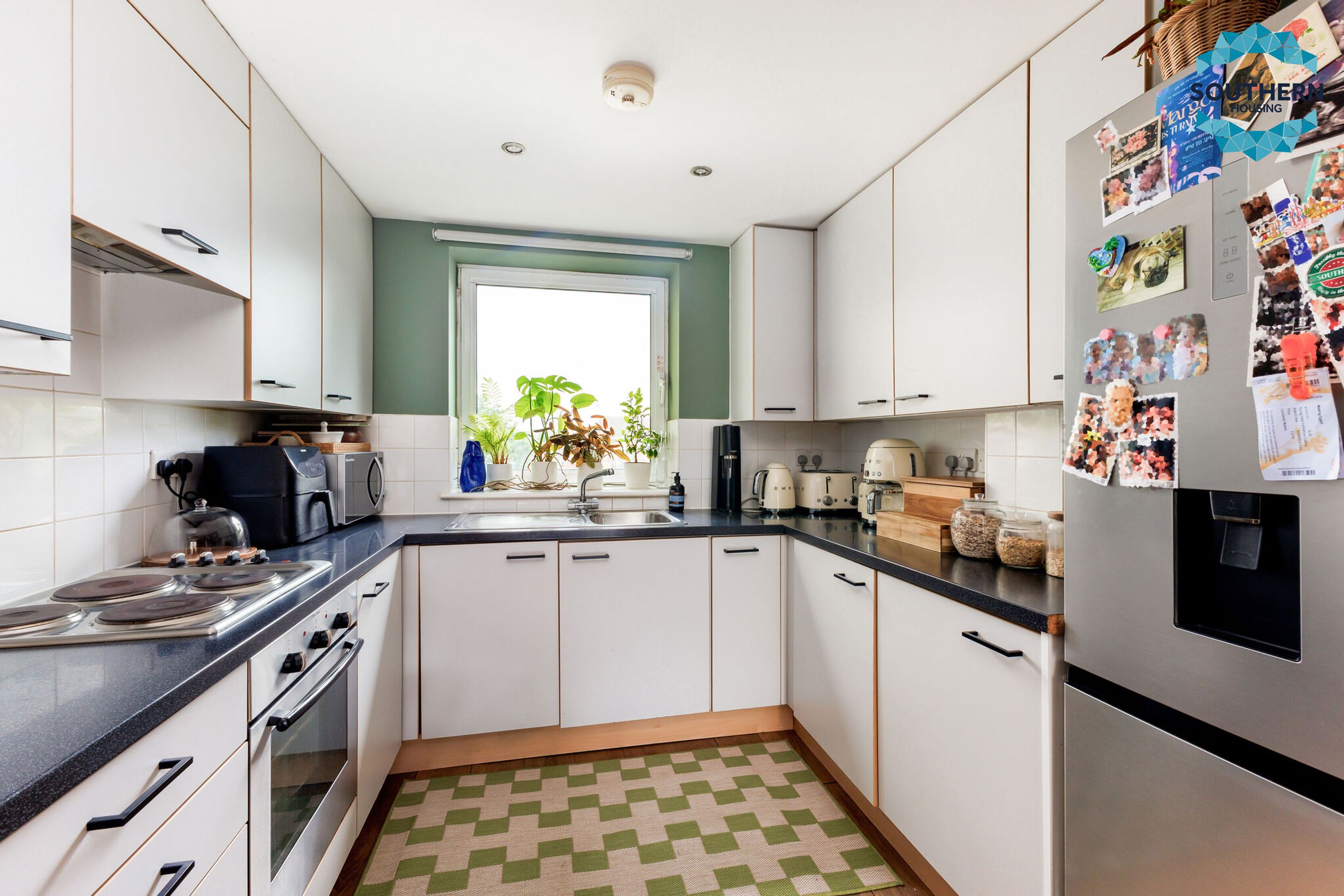 The kitchen comes well equipped with integrated appliances such as the oven, hob and extractor fan and benefits from lots of storage and plenty of countertop space. It also features a window to provide lots of light and to provide natural ventilation if needed.