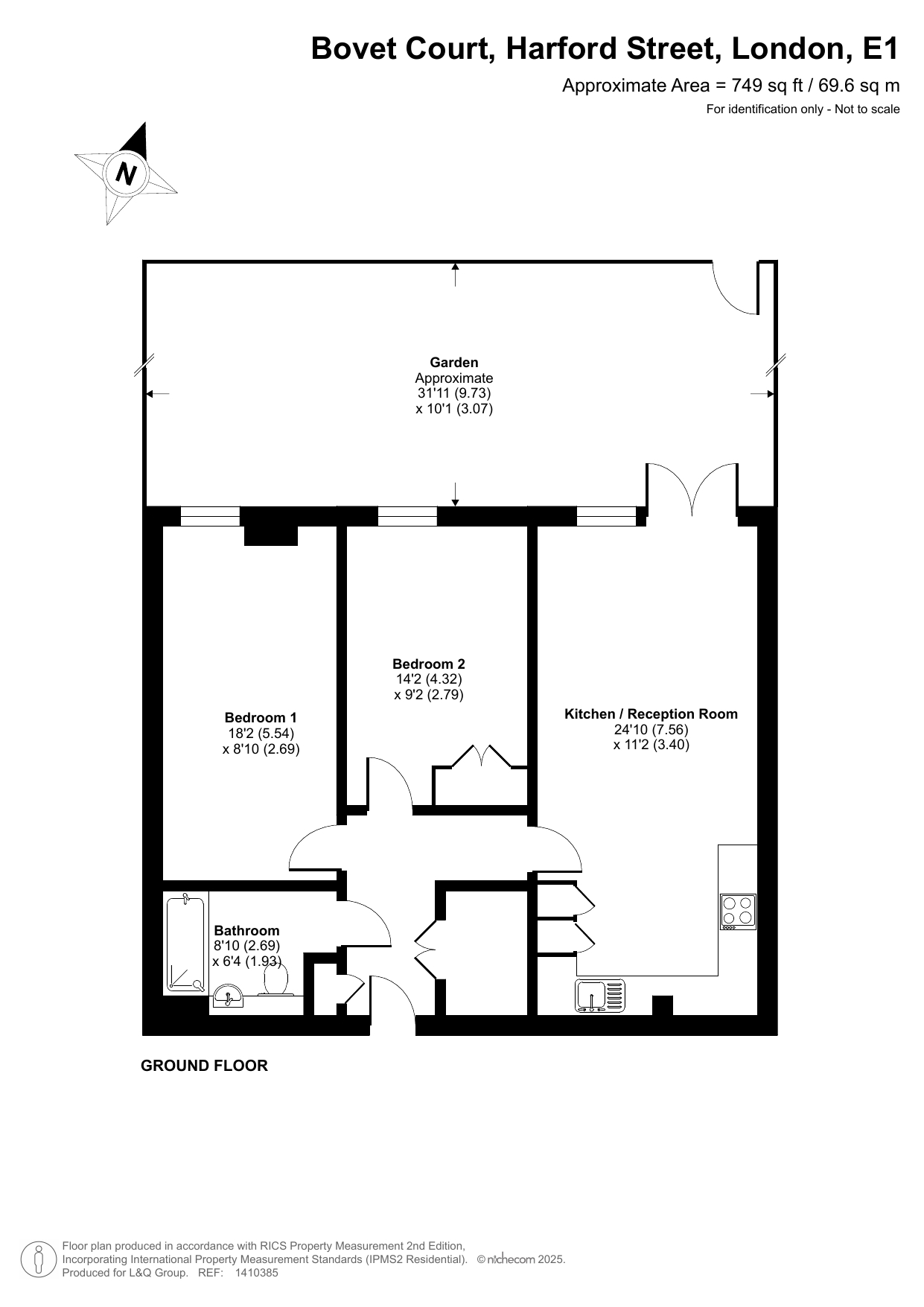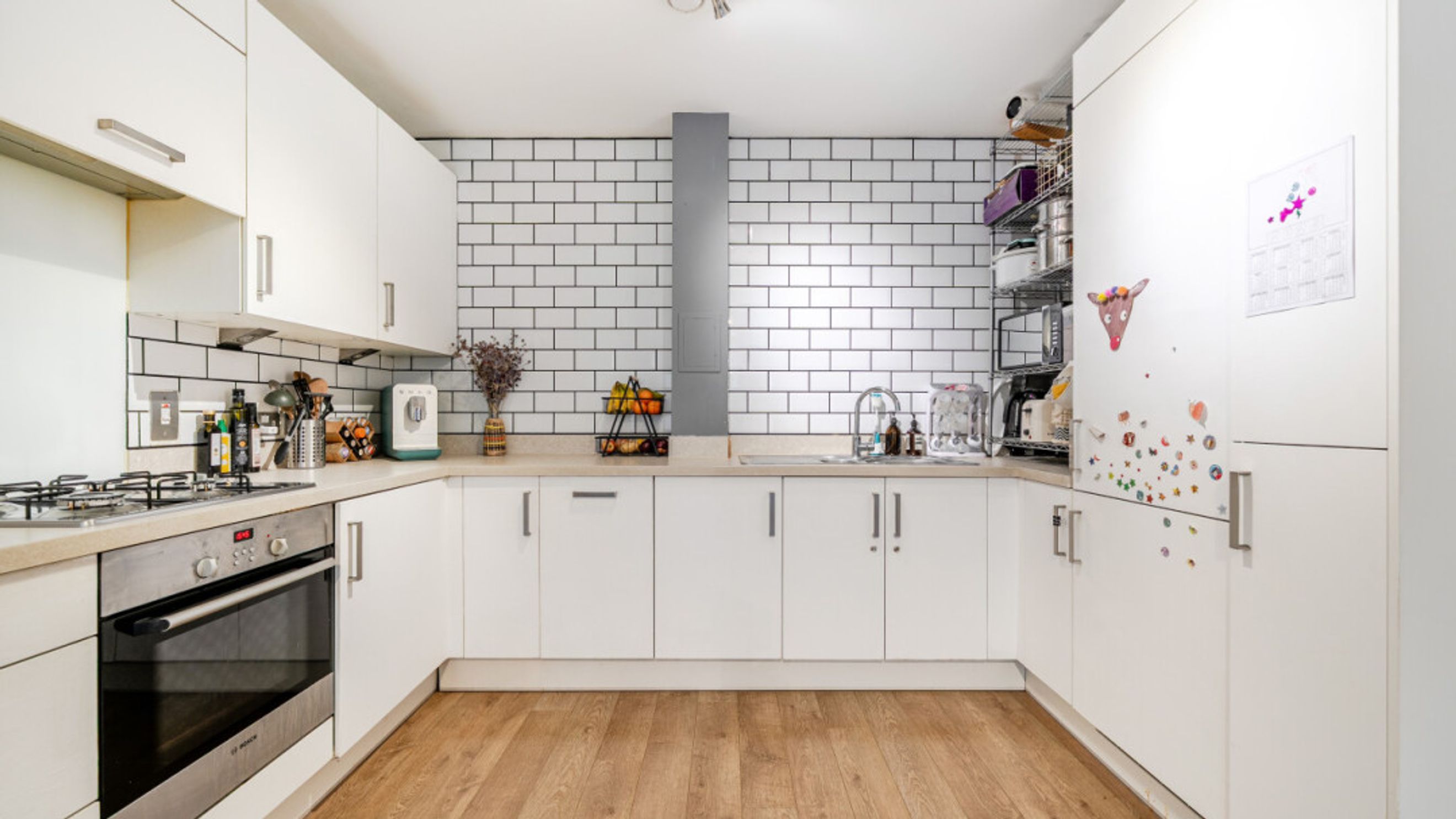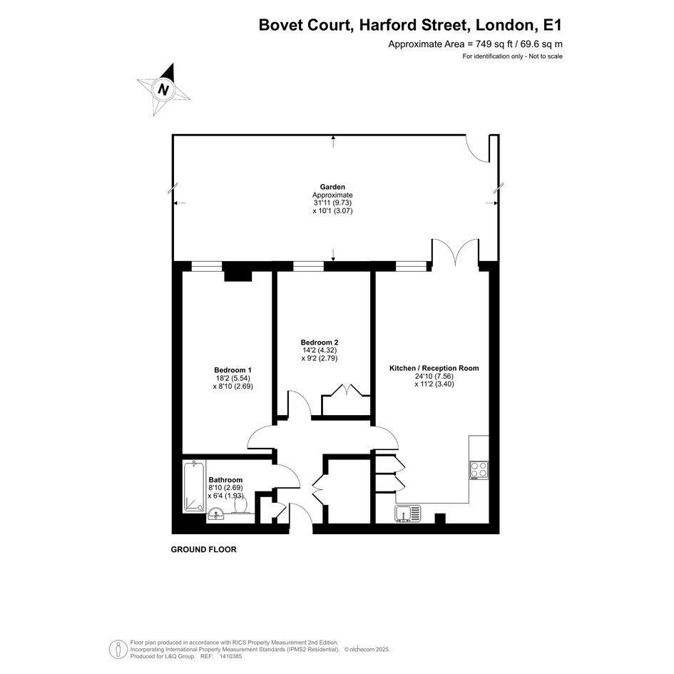 This well presented, spacious two bed apartment consists of a stylish open-plan kitchen and living area, flooded with natural light from wide floor-length windows with a door leading to a full width private terrace opening onto the communal gardens. the modern kitchen has fully integrated appliances. There are two double bedrooms, each overlooking the terrace, one having fitted storage. A contemporary family bathroom completes the accommodation.