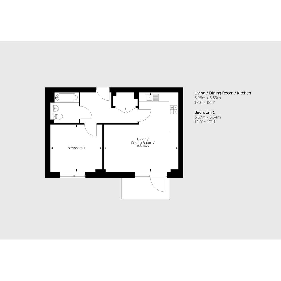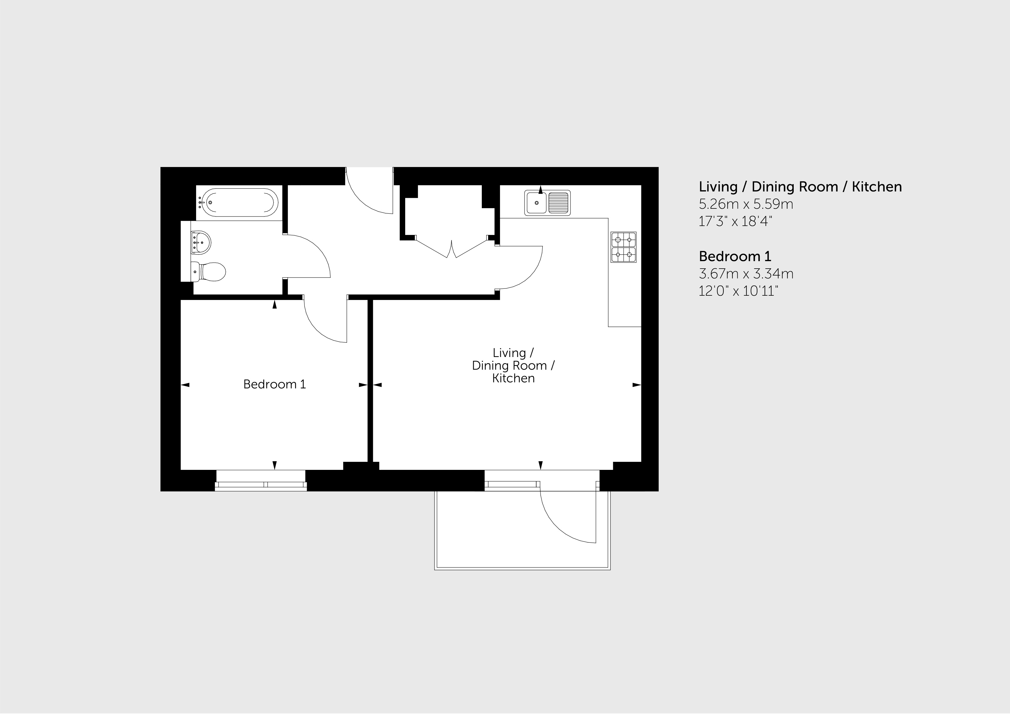 Featuring an open-plan kitchen / living / dining room with a door out to your balcony. The kitchen is fitted with an oven, hob and hood.