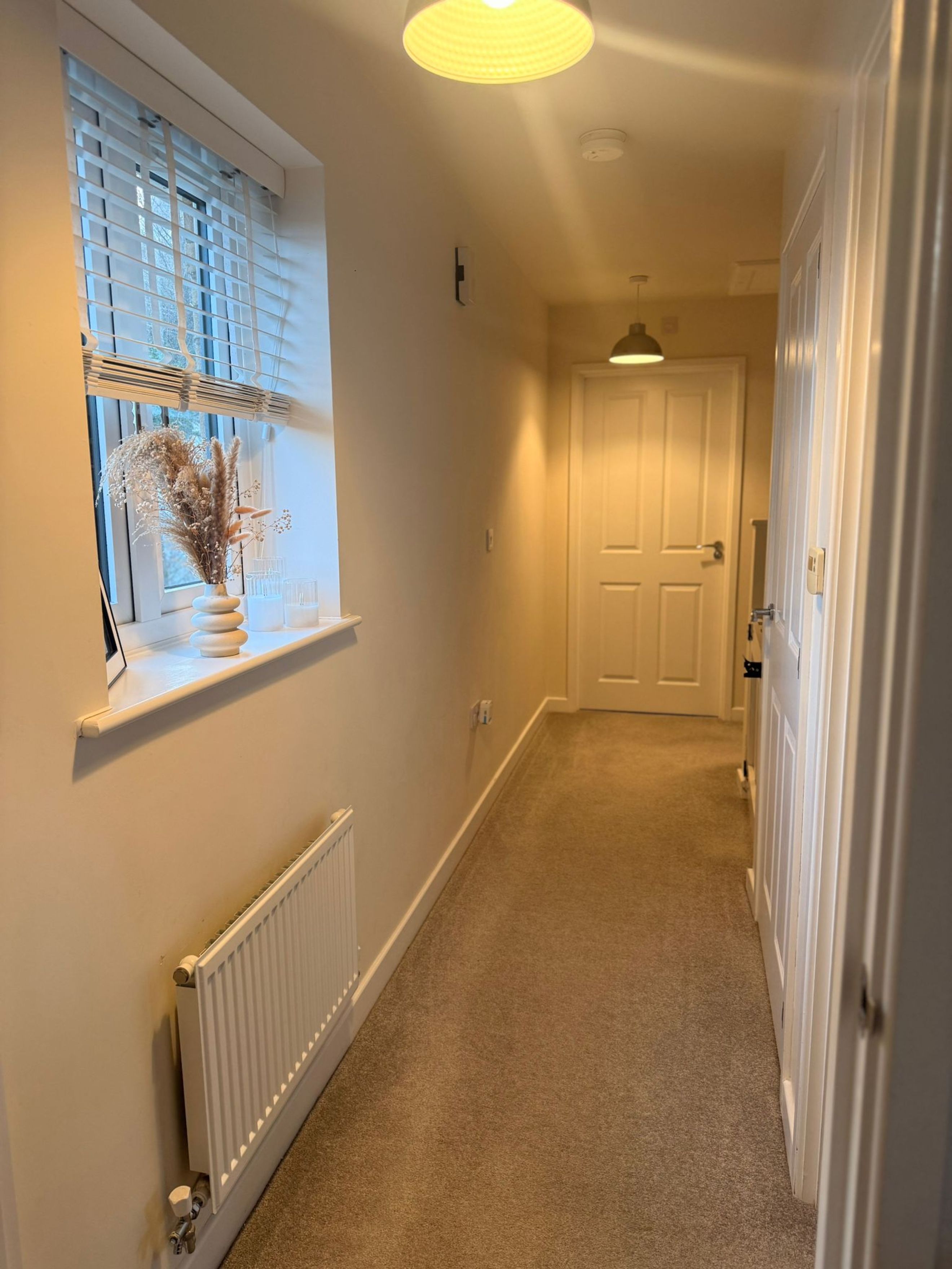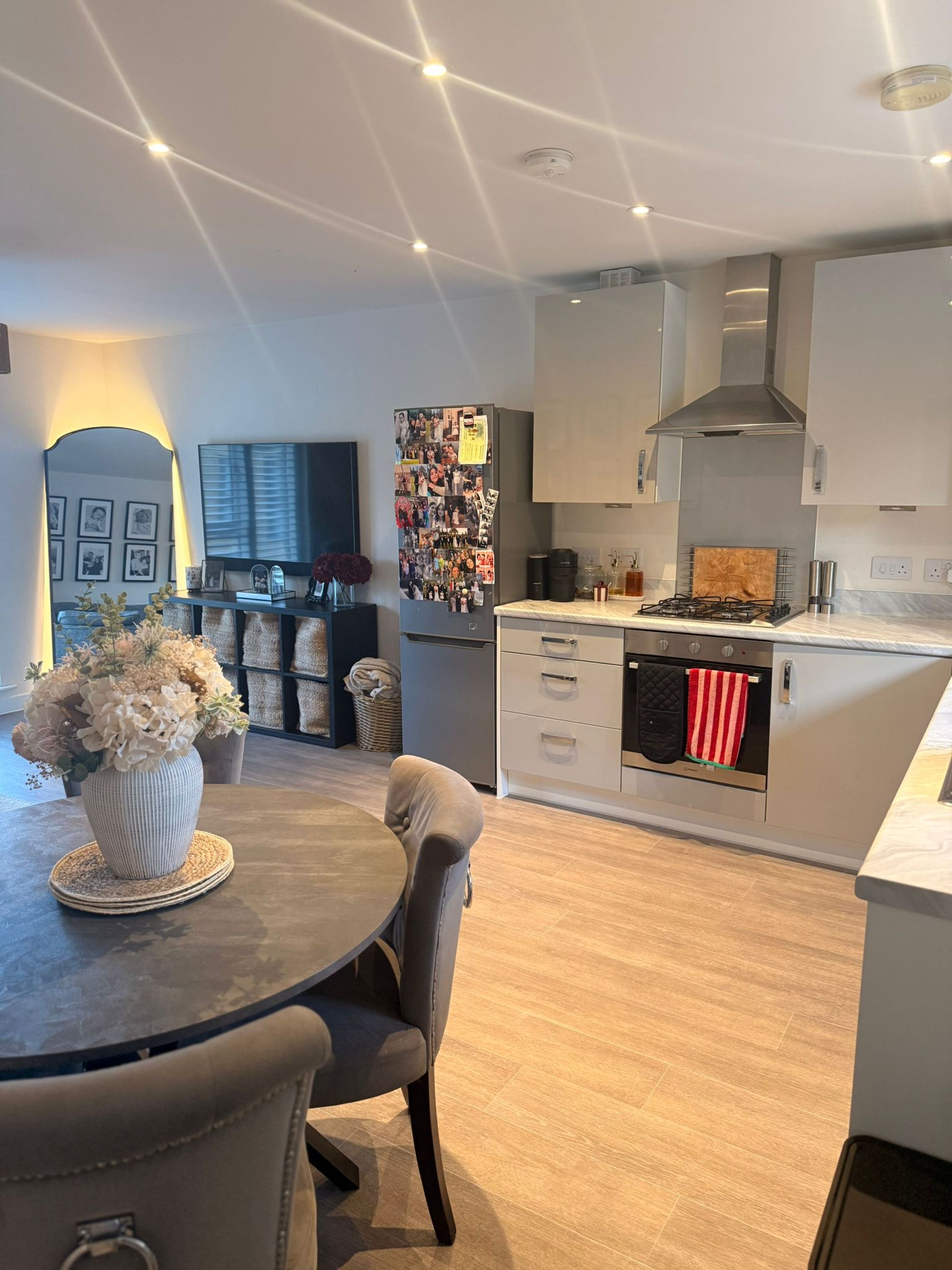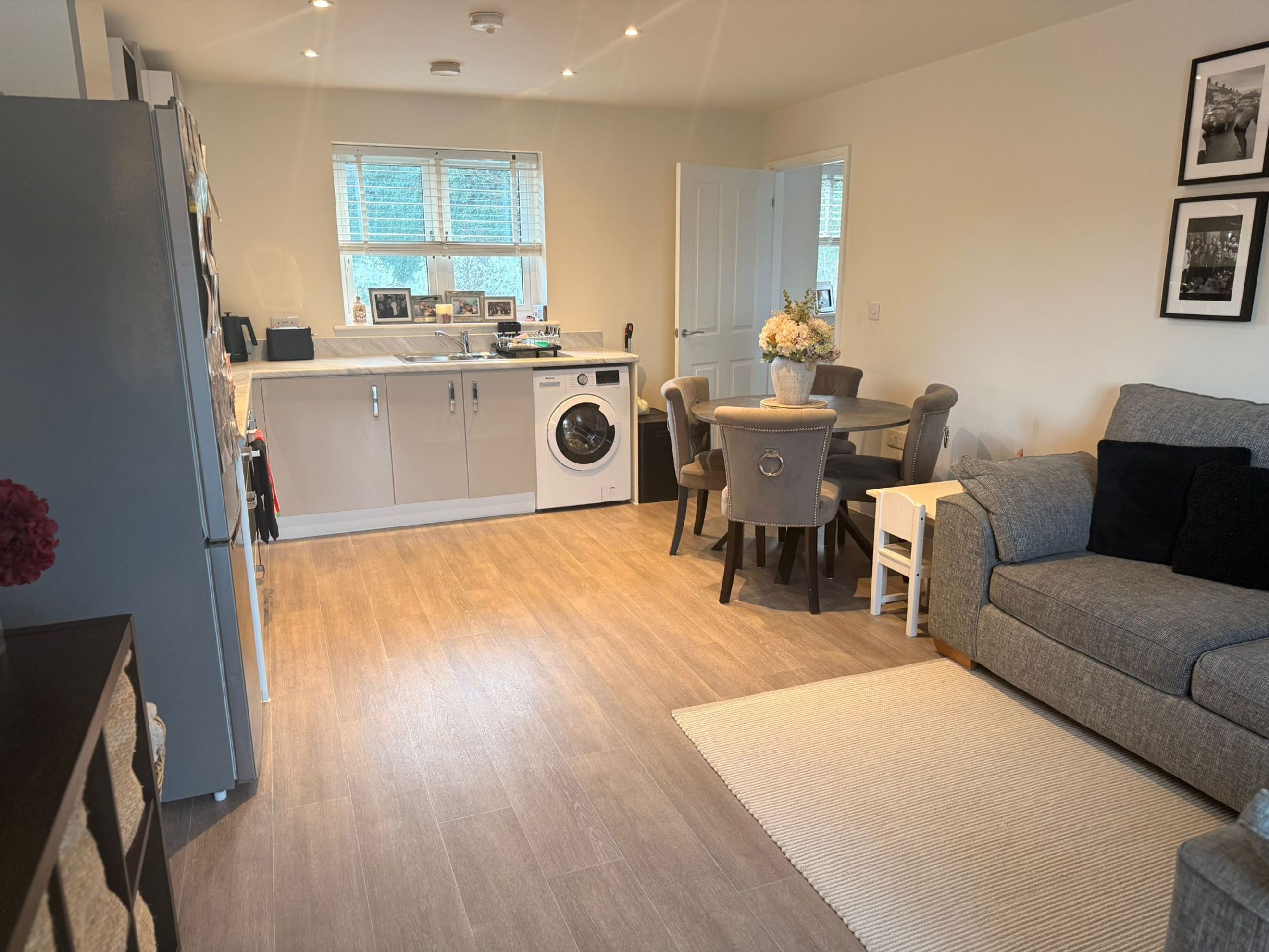 The property features a bright open-plan kitchen/dining/living area with ample space for a separate dining table and ideal for entertaining and everyday family living. A spacious hallway leads to the two good size bedrooms and family bathroom with bath and shower over.