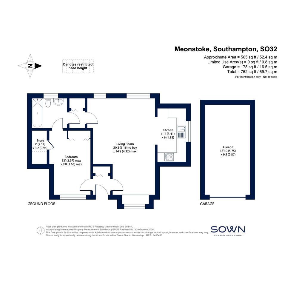 The property offers a spacious and practical layout with accommodation comprising an entrance hall, a generous lounge/diner with bay window providing plenty of natural light, and a separate kitchen fitted with a range of units and space for appliances. The double bedroom benefits from built-in storage, while the accommodation is completed by a bathroom. Externally, the property benefits from a neaby garage.