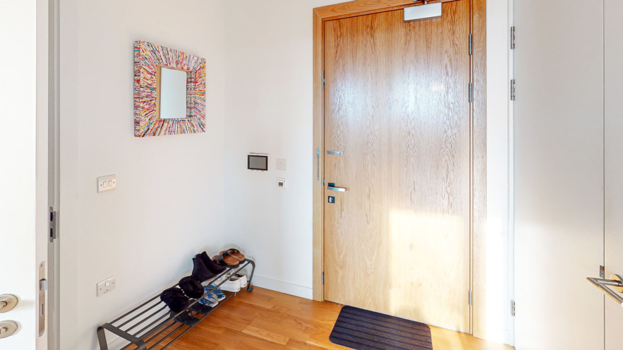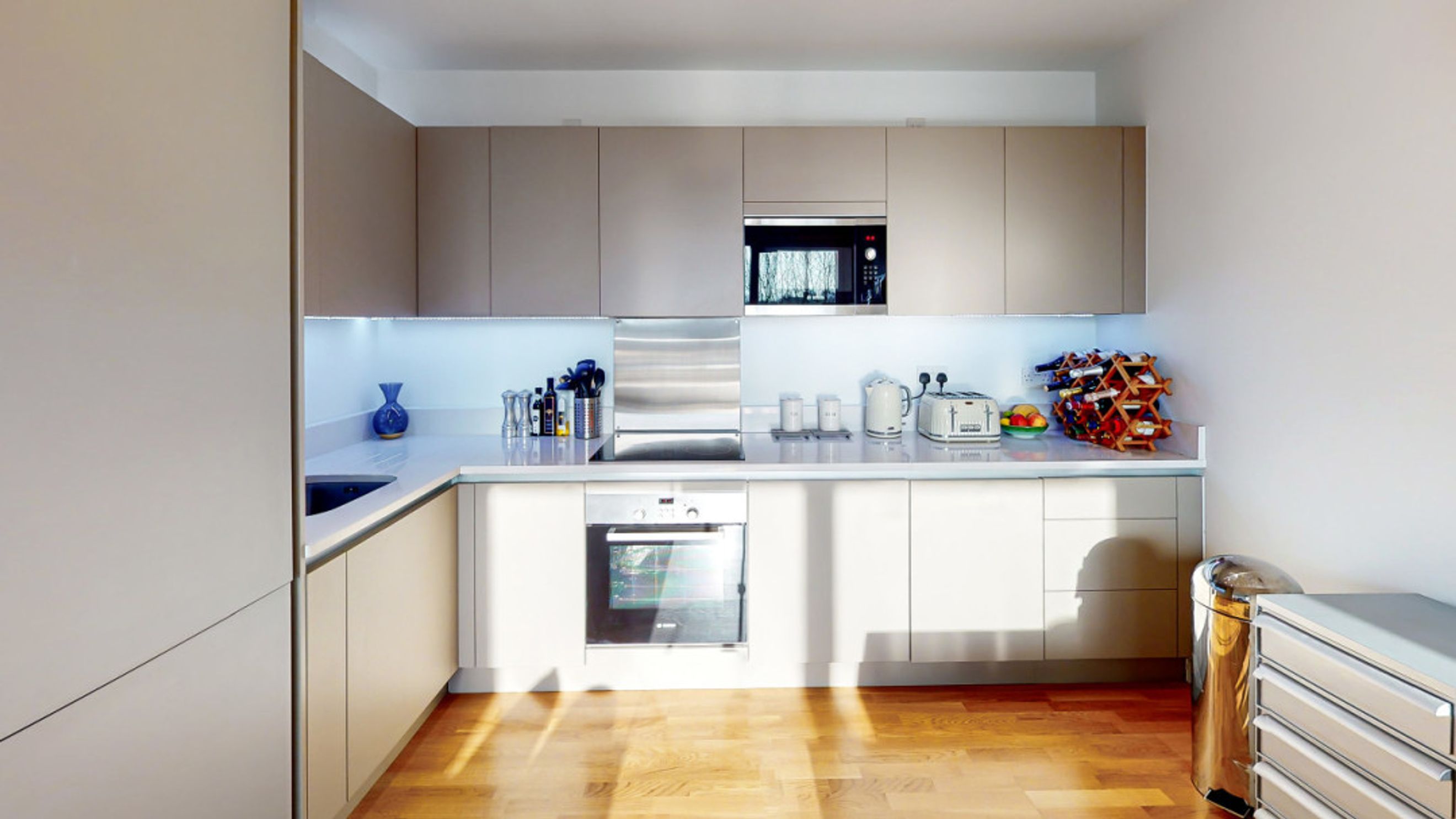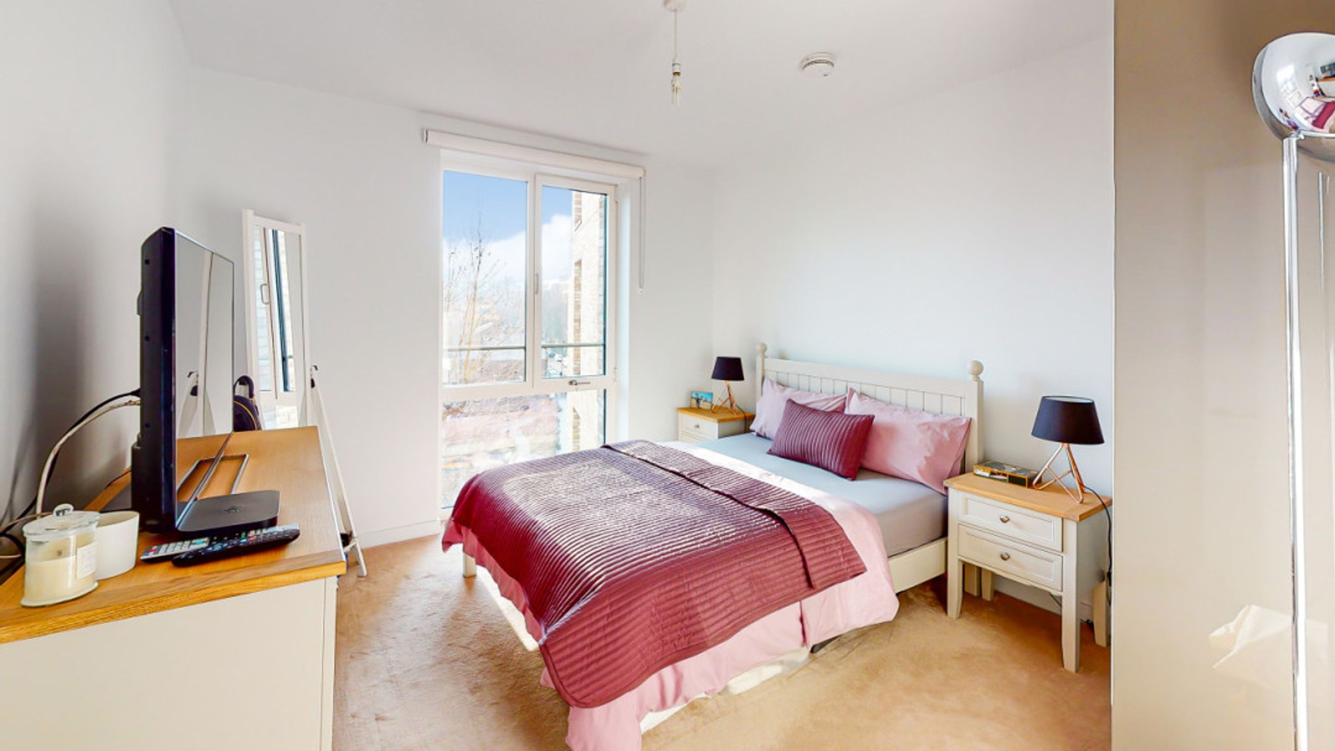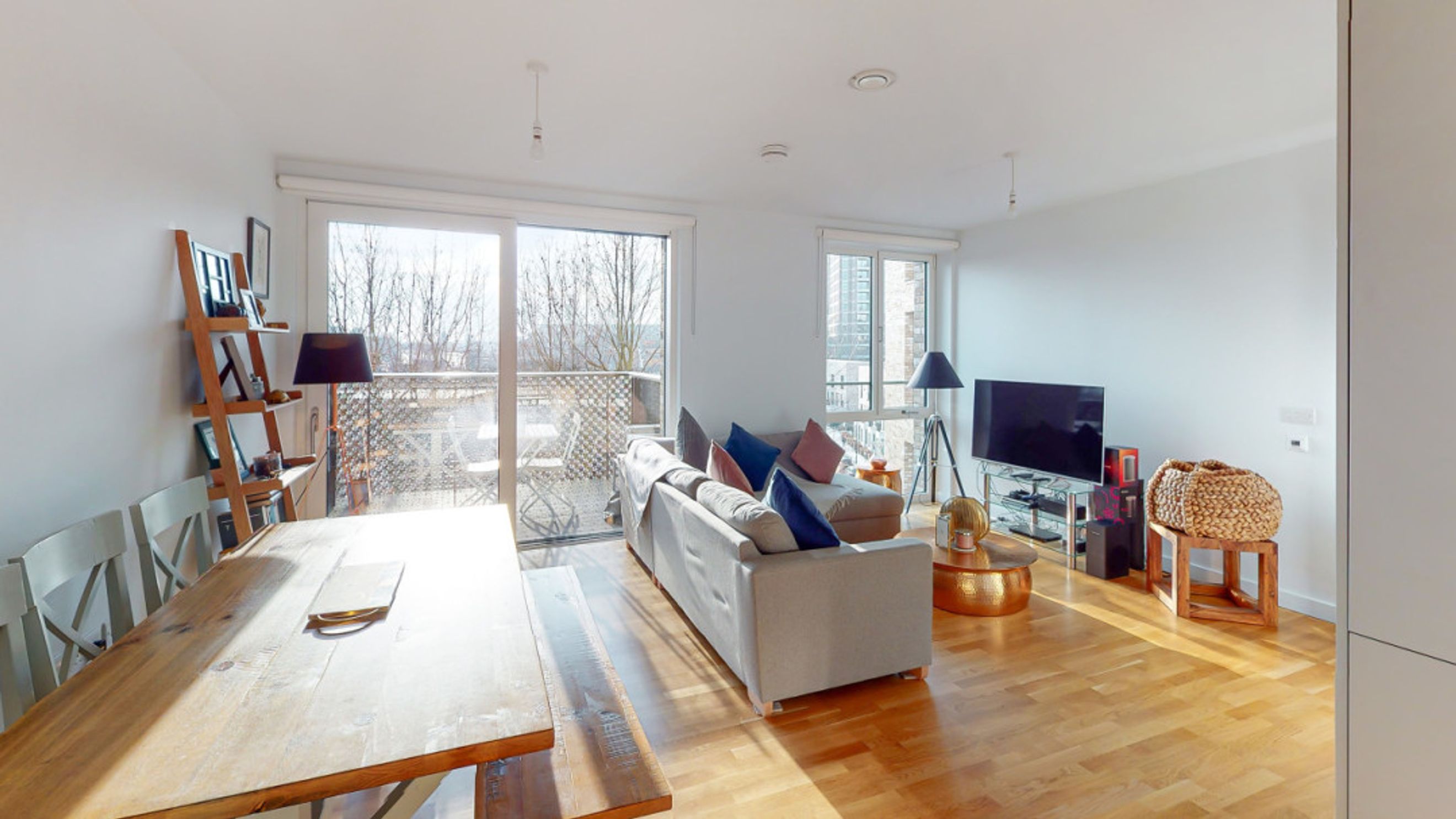 This bright and airy one bedroom apartment consists of an open-plan kitchen and living area. Spacious main double bedroom with floor to ceiling window. The bathroom comes complete with a white three-piece suite with a shower over bath. One additional storage cupboard in hallway.