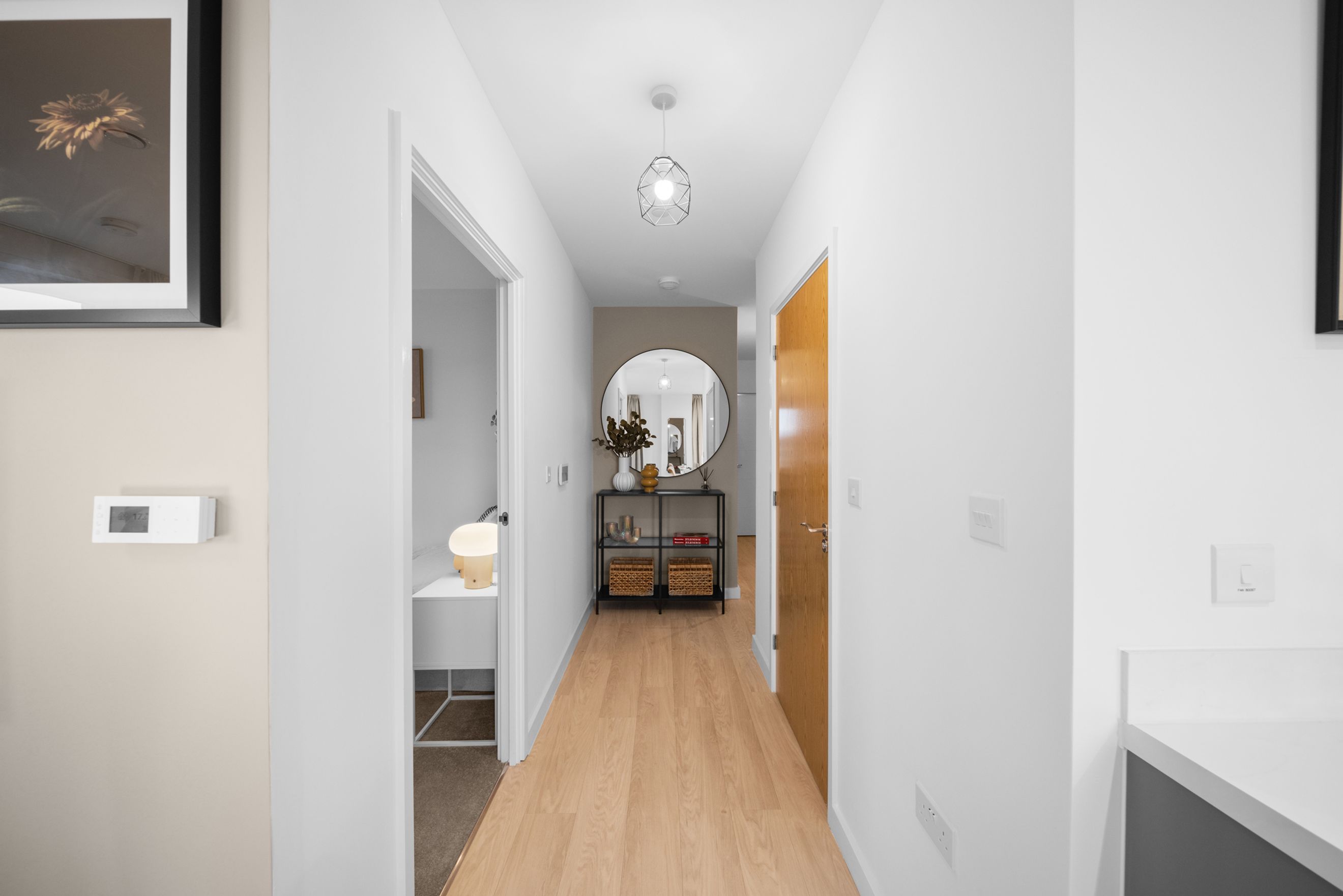 This modern home features a private balcony filling the open-plan kitchen / living / dining area with plenty of natural light and provides the perfect space for entertaining friends and family. Stylish Amtico flooring and soft carpeting in the bedroom add a touch of comfort and quality throughout.