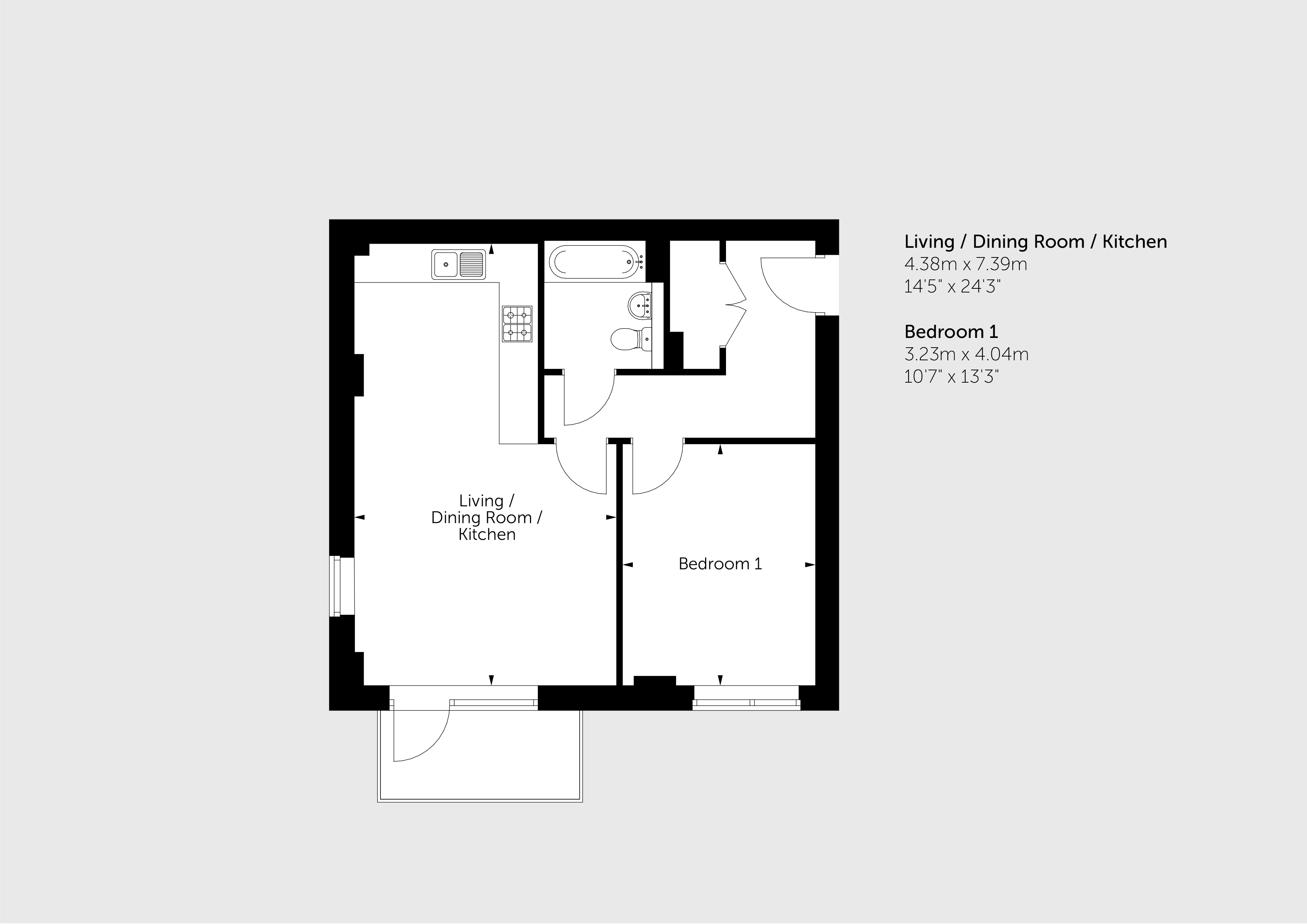 Featuring an open-plan kitchen / living / dining room with a door out to your balcony. The kitchen is fitted with an oven, hob and hood.