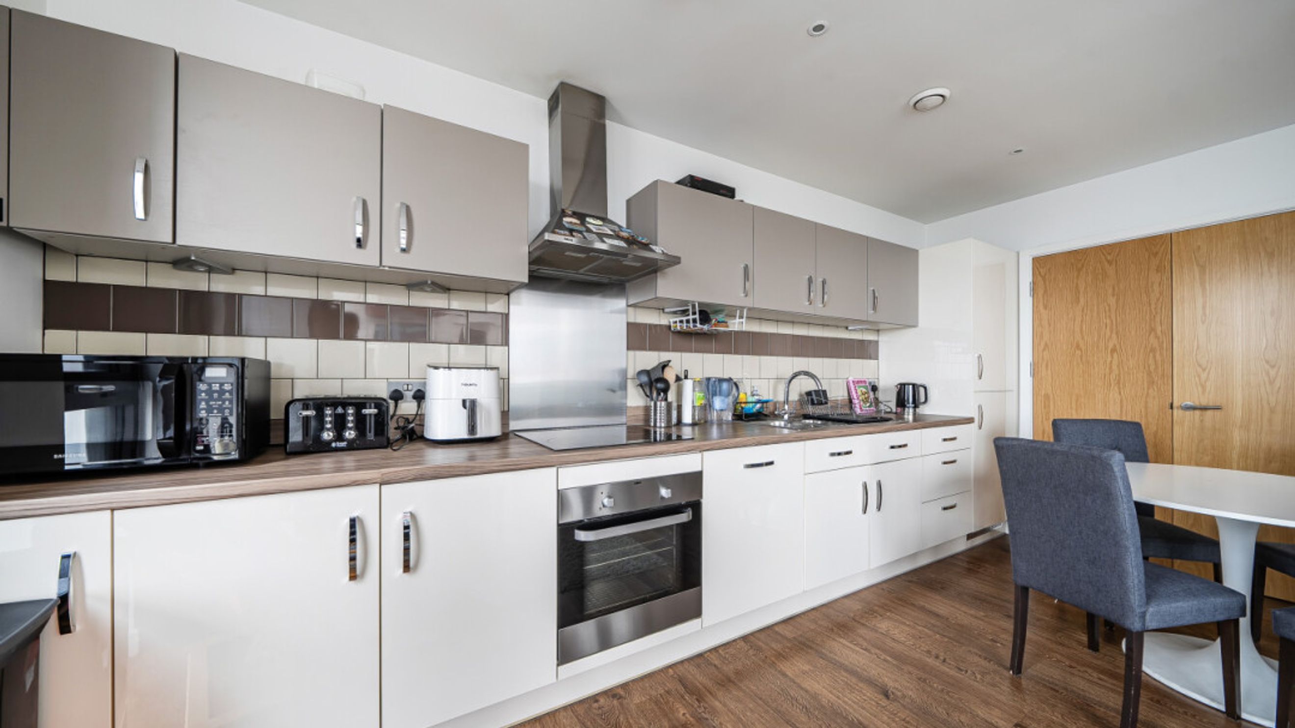 Enter this apartment apartment and walk straight through to the dual aspect open plan living area, flooded with natural light from wide floor-length windows and door to a private balcony, where you can sit and enjoy the traffic on the river. Of the two spacious double bedrooms, one benefits from built-in storage cupboards. A contemporary bathroom completes the accommodation, along with a small storage room.