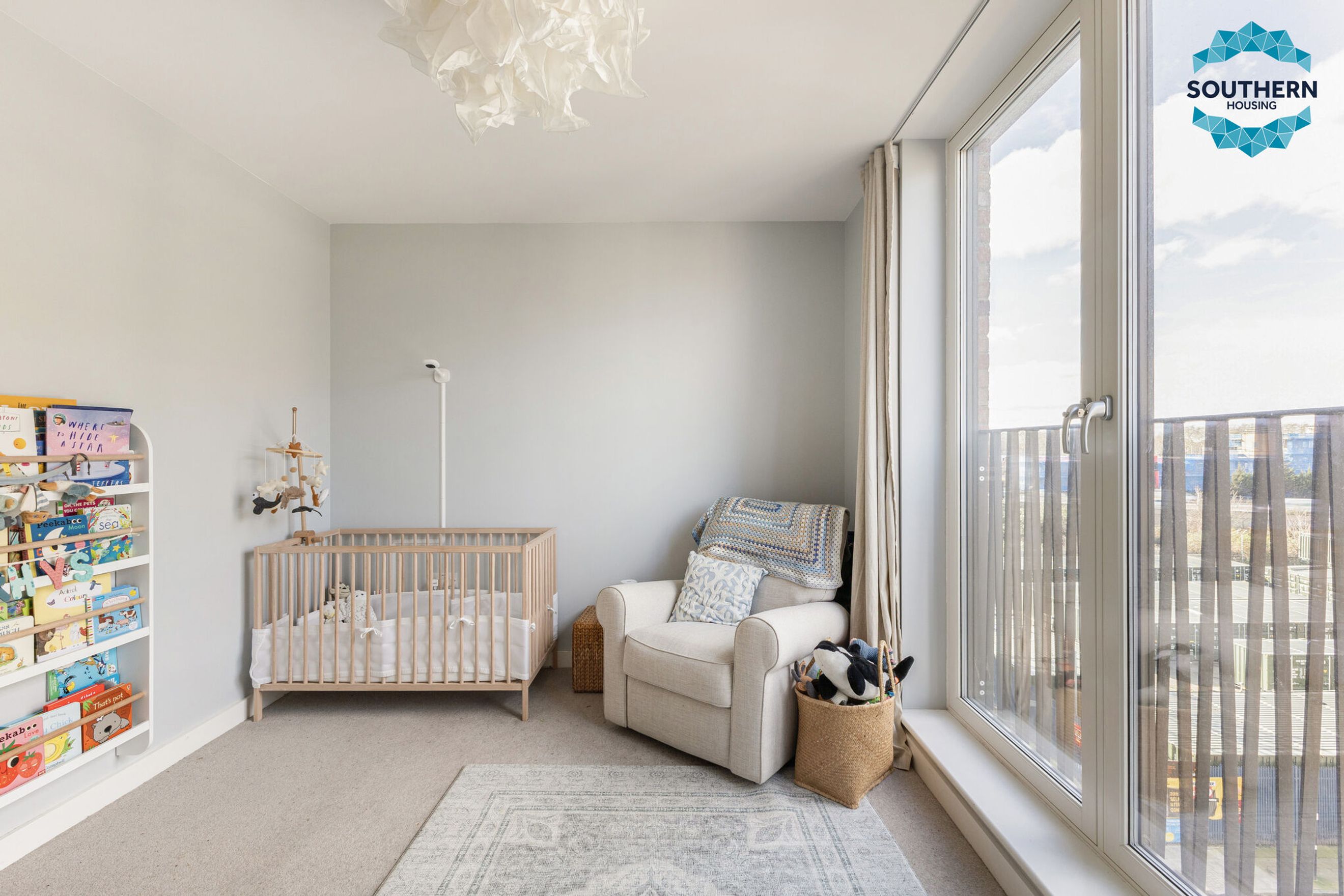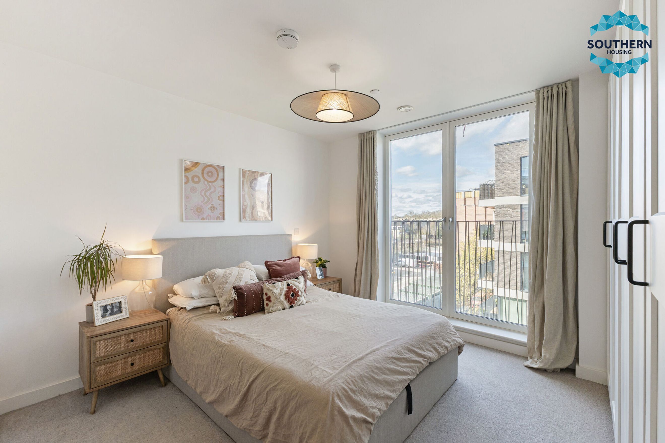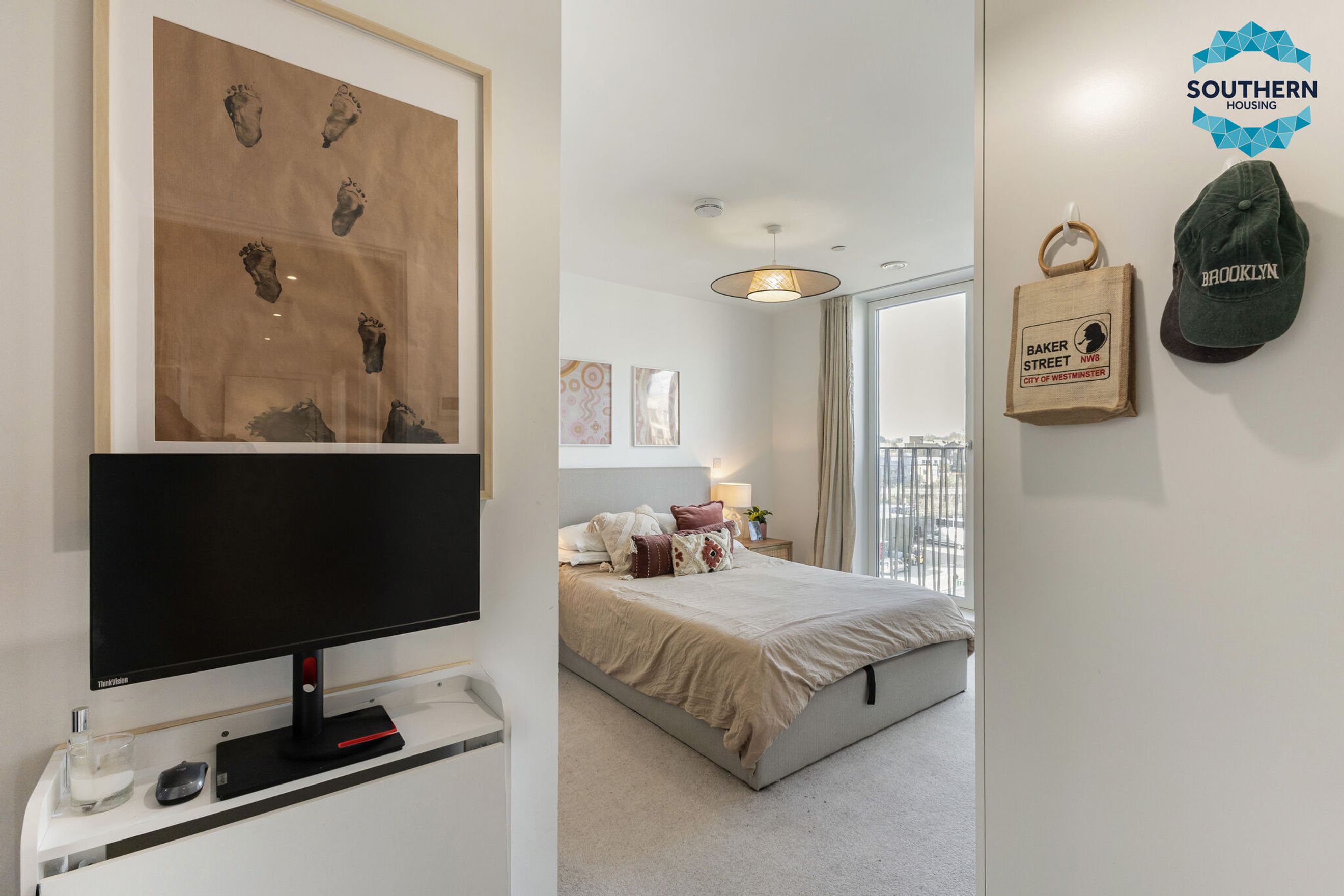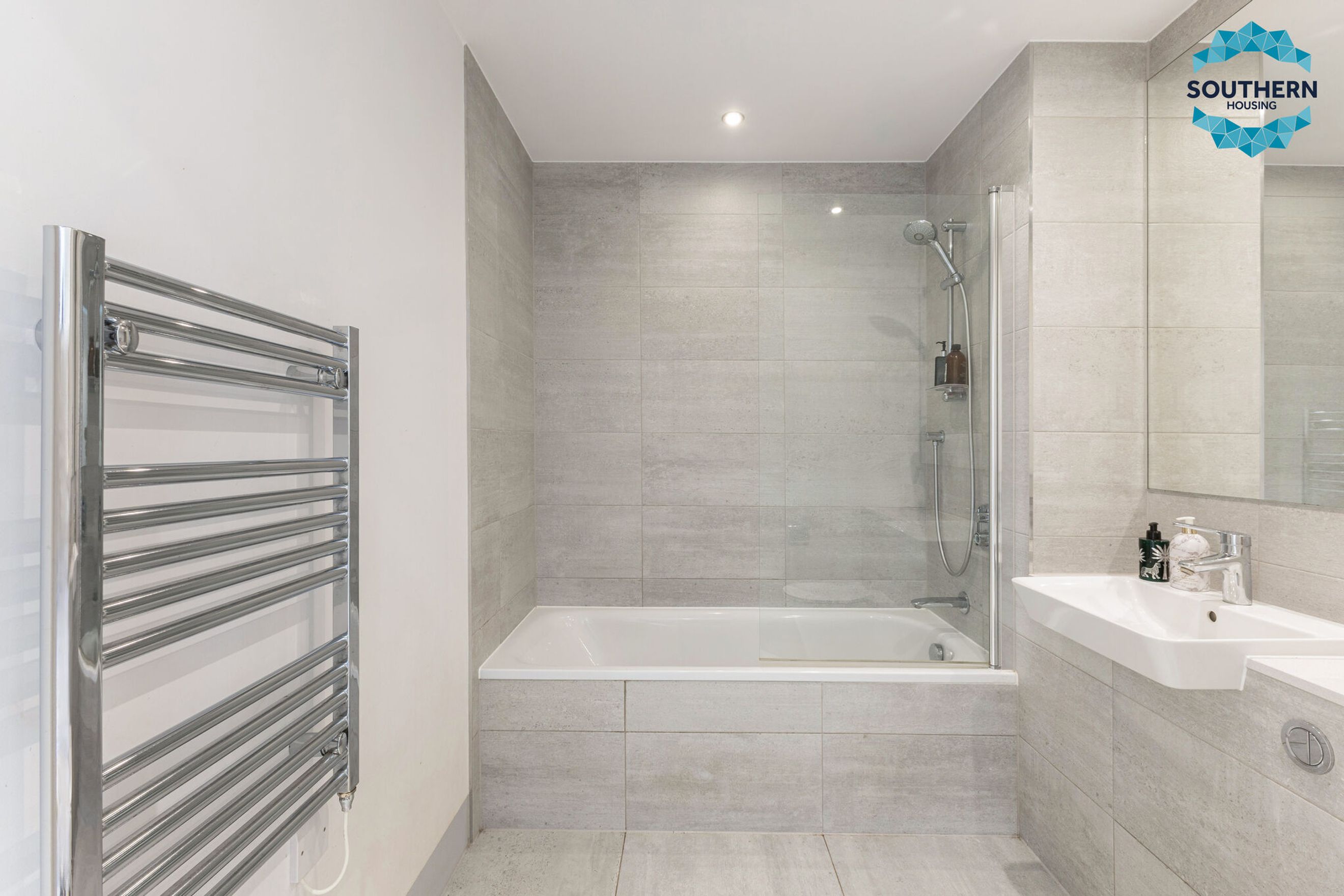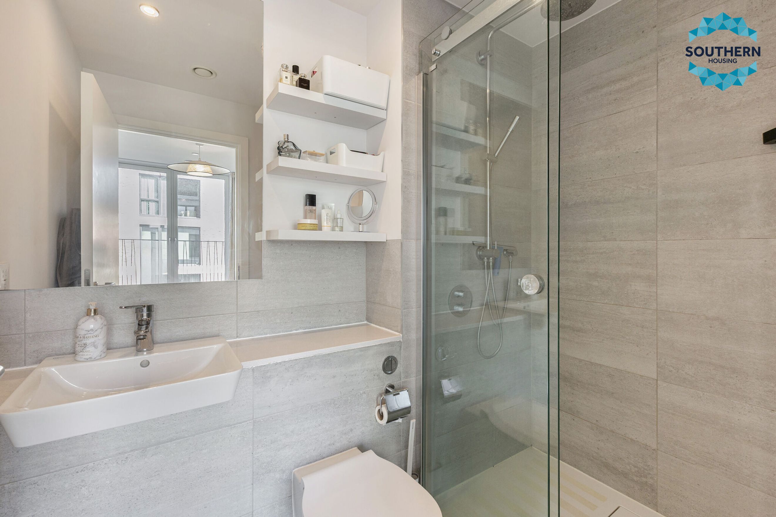The principal bedroom is well proportioned and benefits from its own en‑suite shower room. The second bedroom is also a generous double, making it perfect for guests, a home office, or additional family space. A sleek, contemporary bathroom with a bath and overhead shower completes the internal layout.