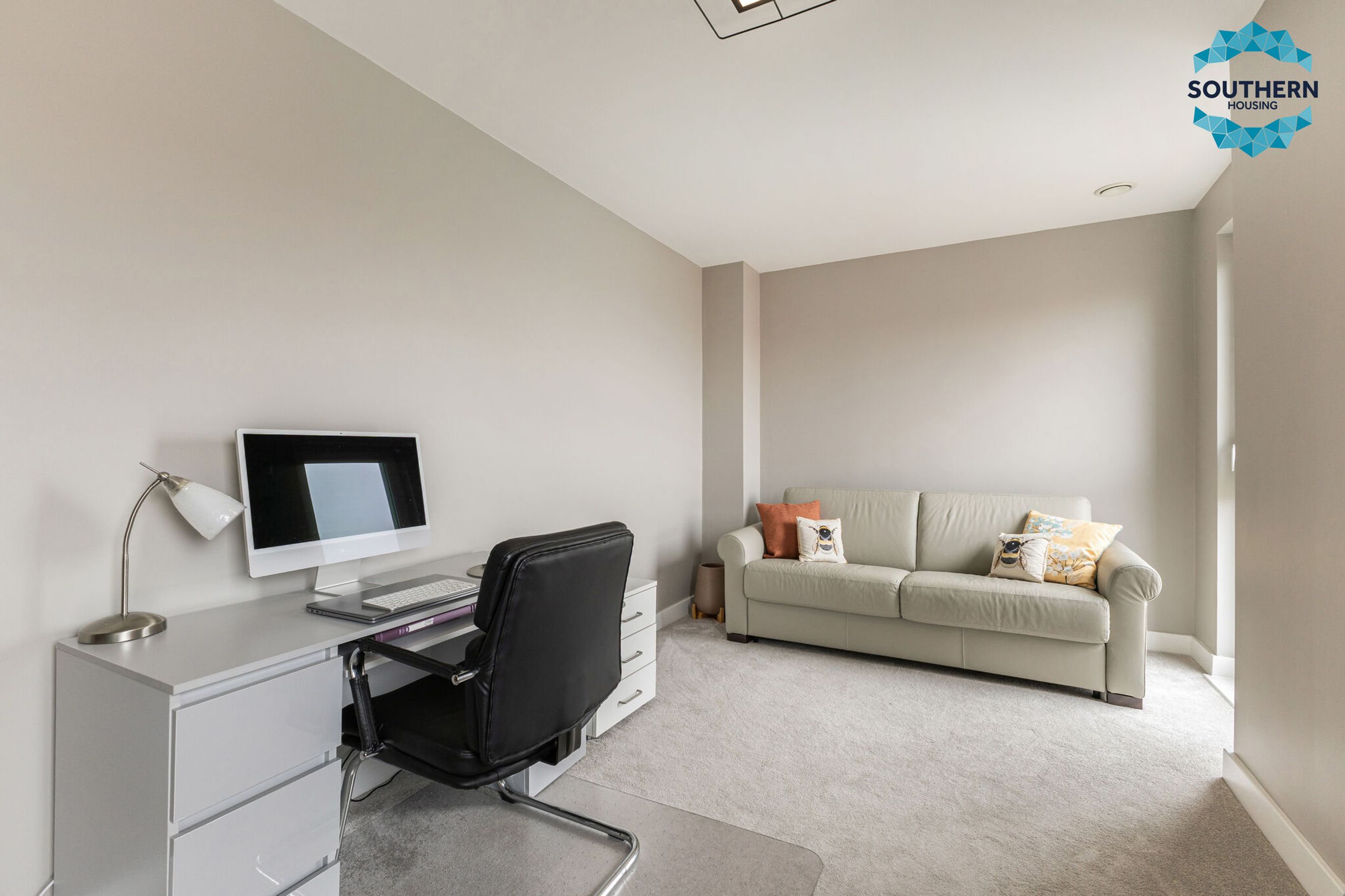 The second bedroom is a spacious double, making it perfect as a guest room, children's bedroom, or a comfortable home office. This room also includes wall-to wall fitted wardrobes for excellent storage.