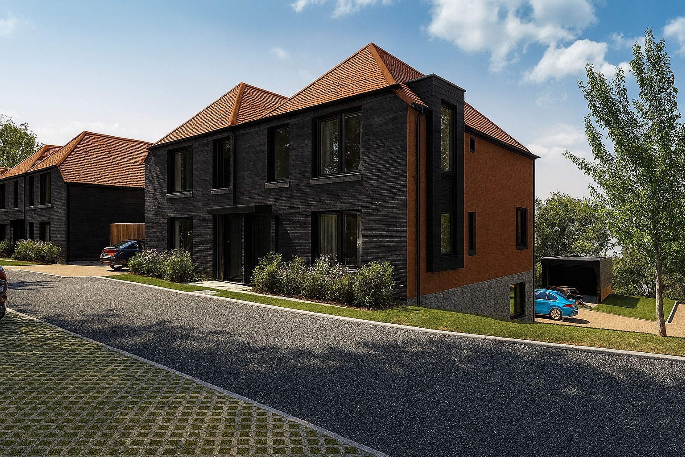 Plot 1 at Castelmer Farm presents a rare opportunity to own a beautifully crafted two‑bedroom duplex apartment in one of Sussex’s most desirable village settings. Set within an exclusive collection of just ten individually designed homes, this residence blends the timeless charm of traditional Sussex architecture with the refinement and innovation expected of modern luxury living. Flint and brick detailing paired with rich timber cladding allow the building to settle elegantly into its surroundings, while landscaped gardens, allocated parking and an EV charging point complete a development thoughtfully designed for both beauty and longevity.