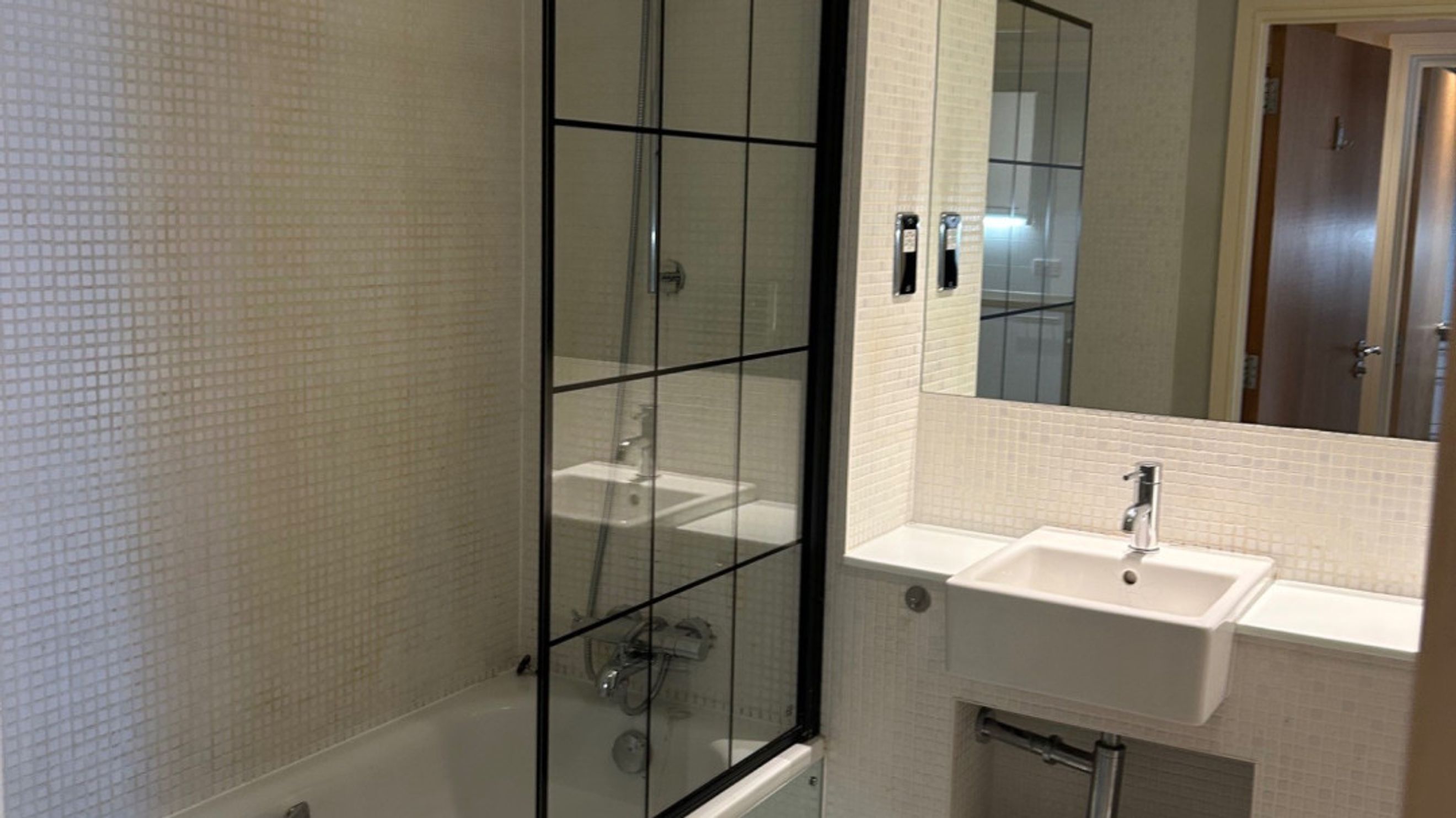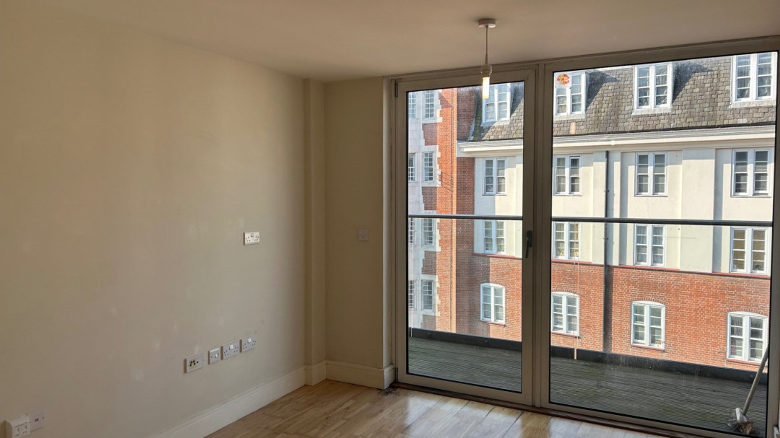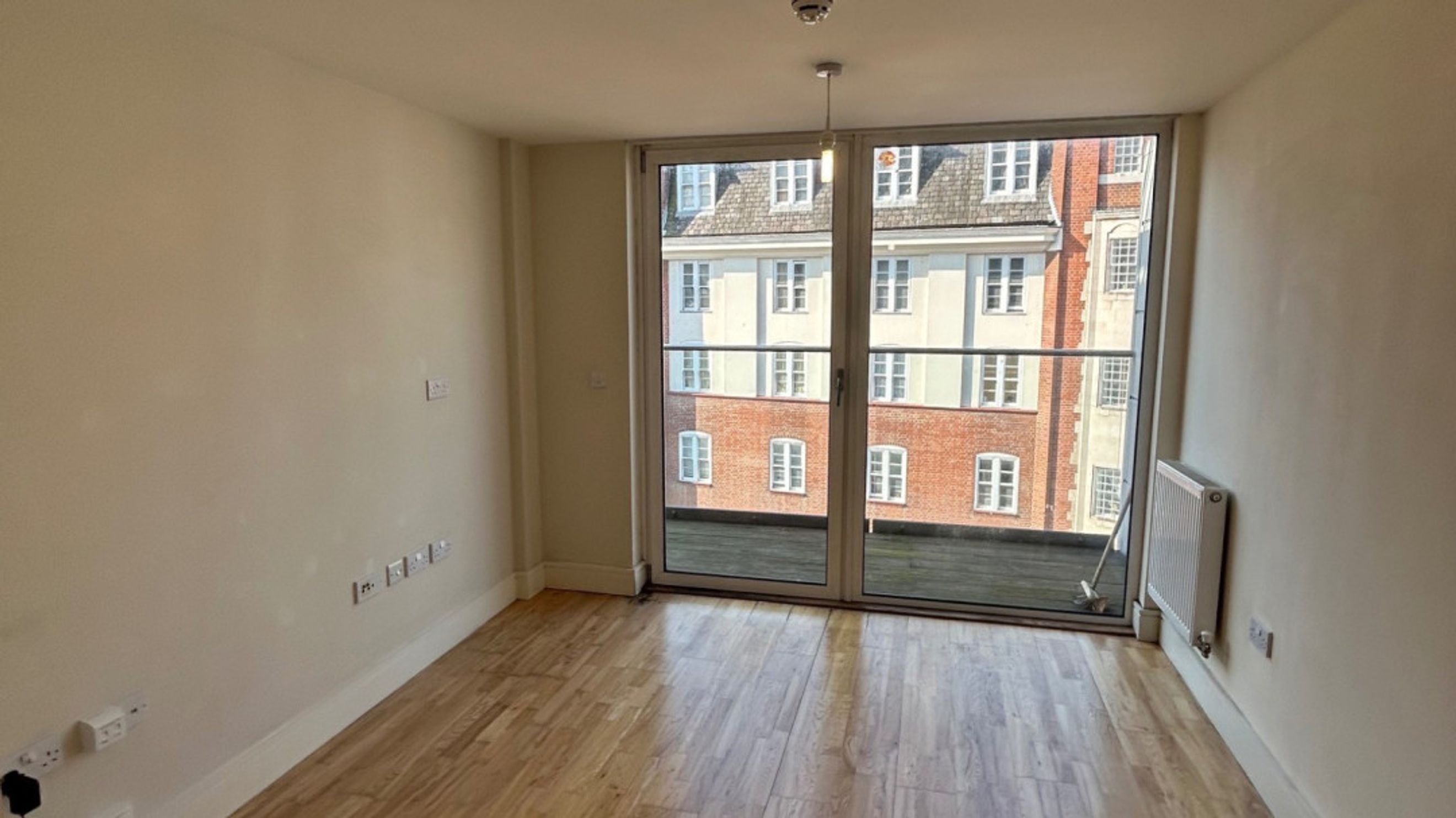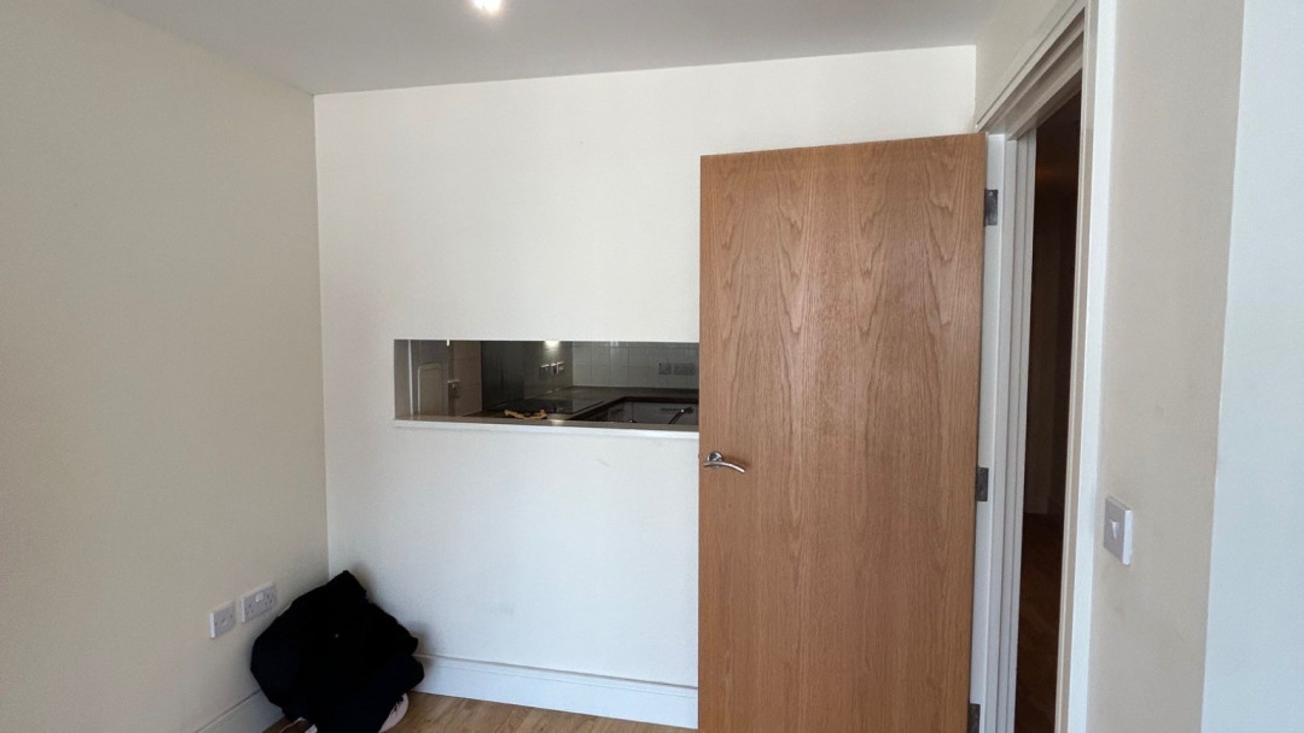 The apartment features a spacious living and dining area, flooded with natural light from large windows. A separate kitchen, complete with a practical hatch into the living space, includes brand new white goods such as a fridge and washing machine. The interior is finished with a large stylish bathroom and built in storage to maintain a clutter free environment.