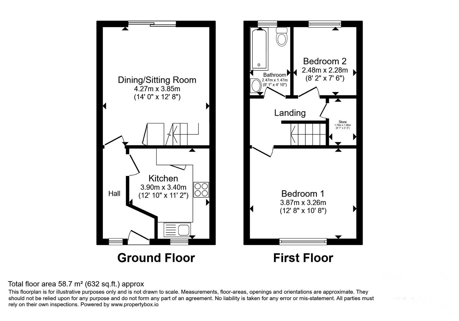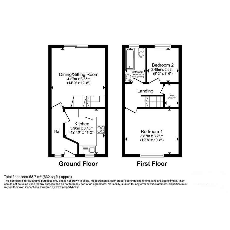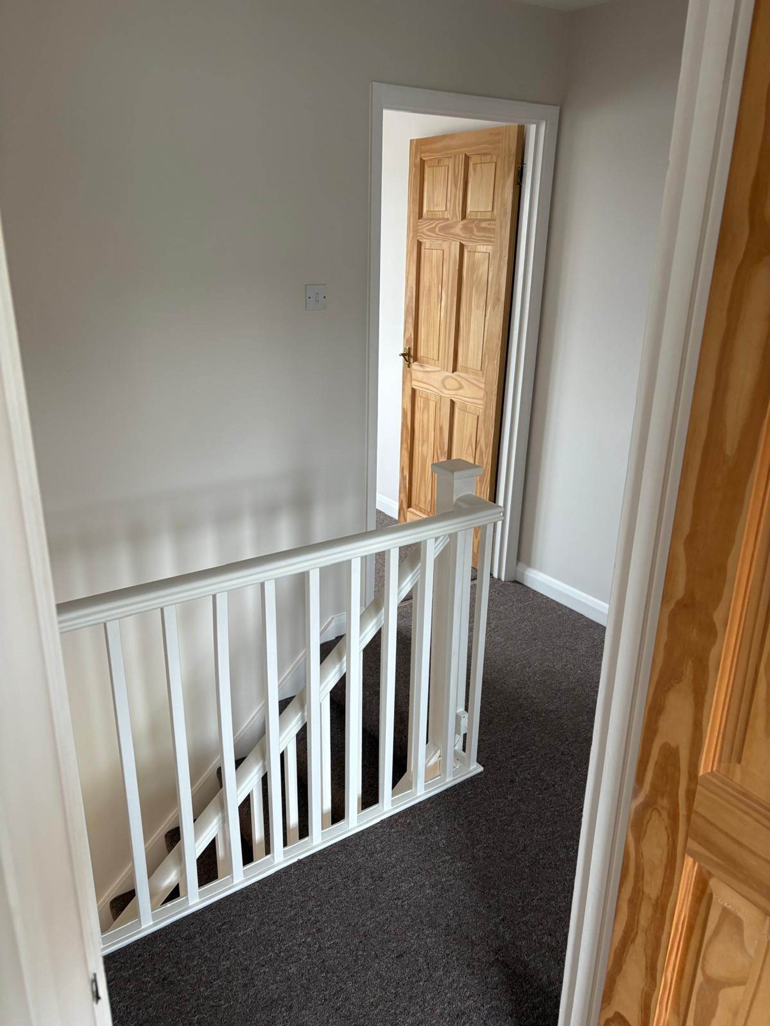 Upstairs, a spacious landing provides access to a generous storage cupboard. There are two bedrooms: a well‑proportioned double and a comfortable single. The family bathroom includes a three‑piece suite with a shower over the bath.