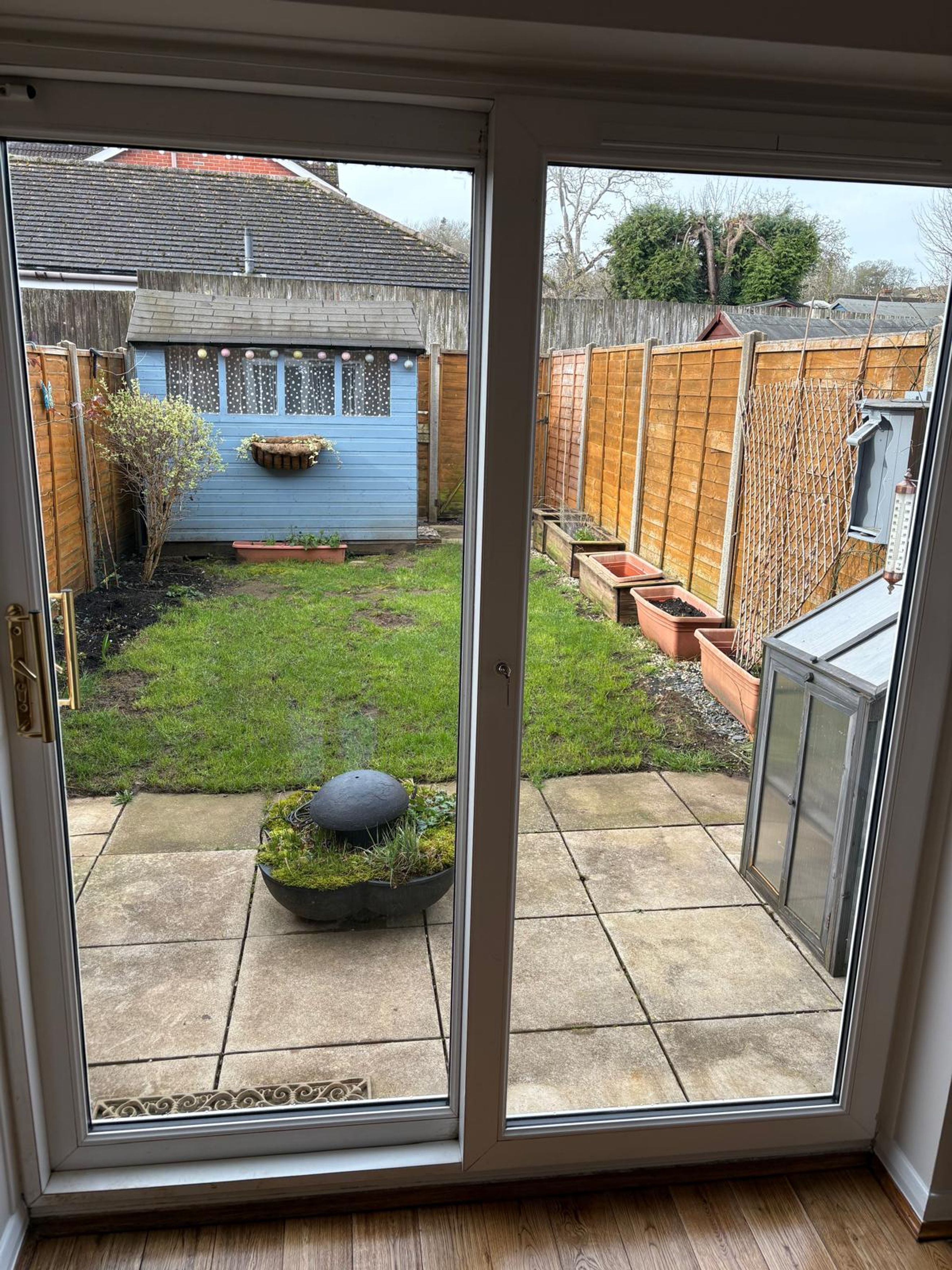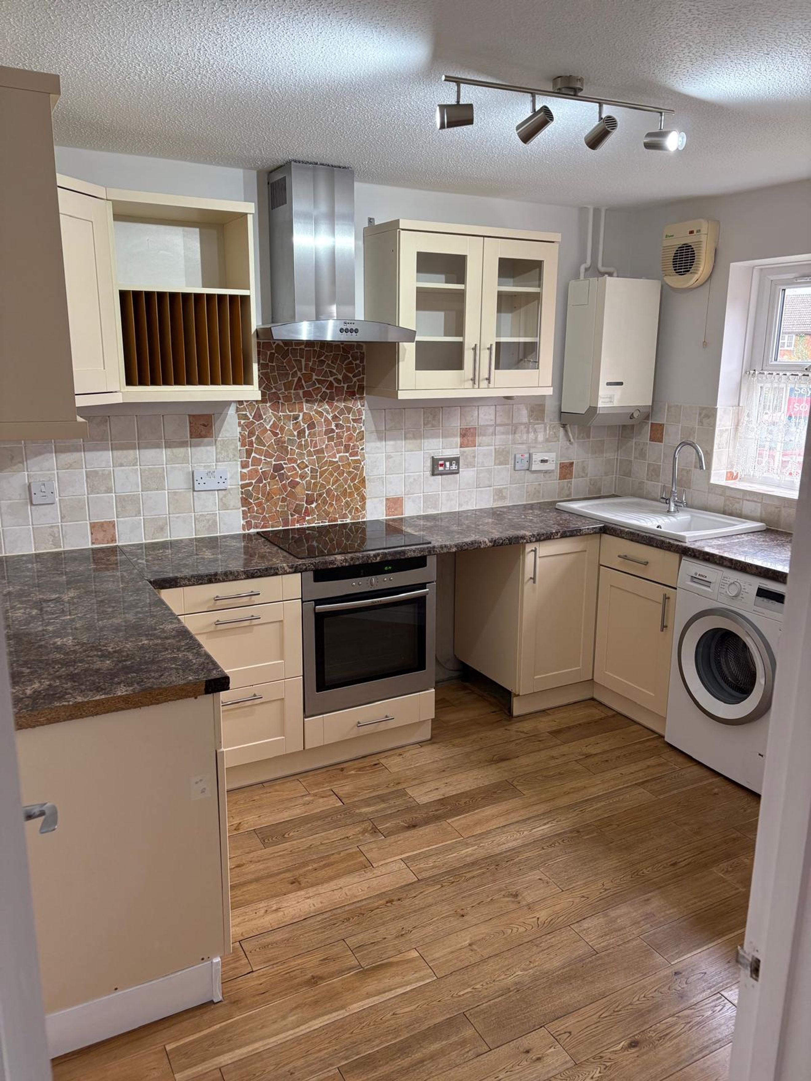 Step through the entrance hall into a well‑equipped kitchen featuring ample cupboard space, an oven with hob and extractor, a washing machine, and room for your own fridge‑freezer. Beyond the kitchen, the home opens into a separate living and dining room—an inviting space ideal for relaxing or entertaining. Patio doors lead directly out to the private rear garden, complete with gated access, an outside tap, and a useful storage shed.