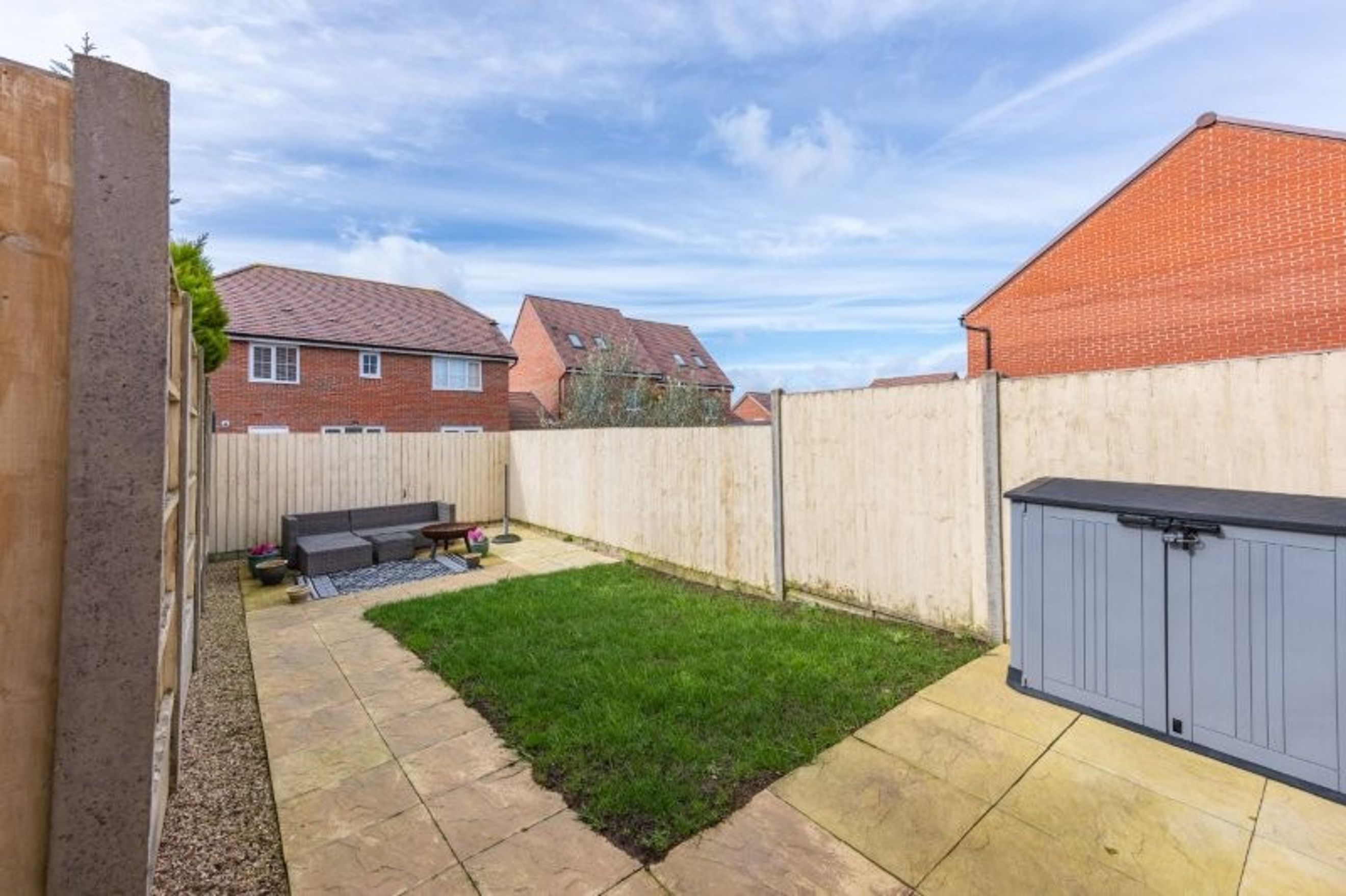 - Fully enclosed rear garden with a level lawn. Side access to garden through gate.