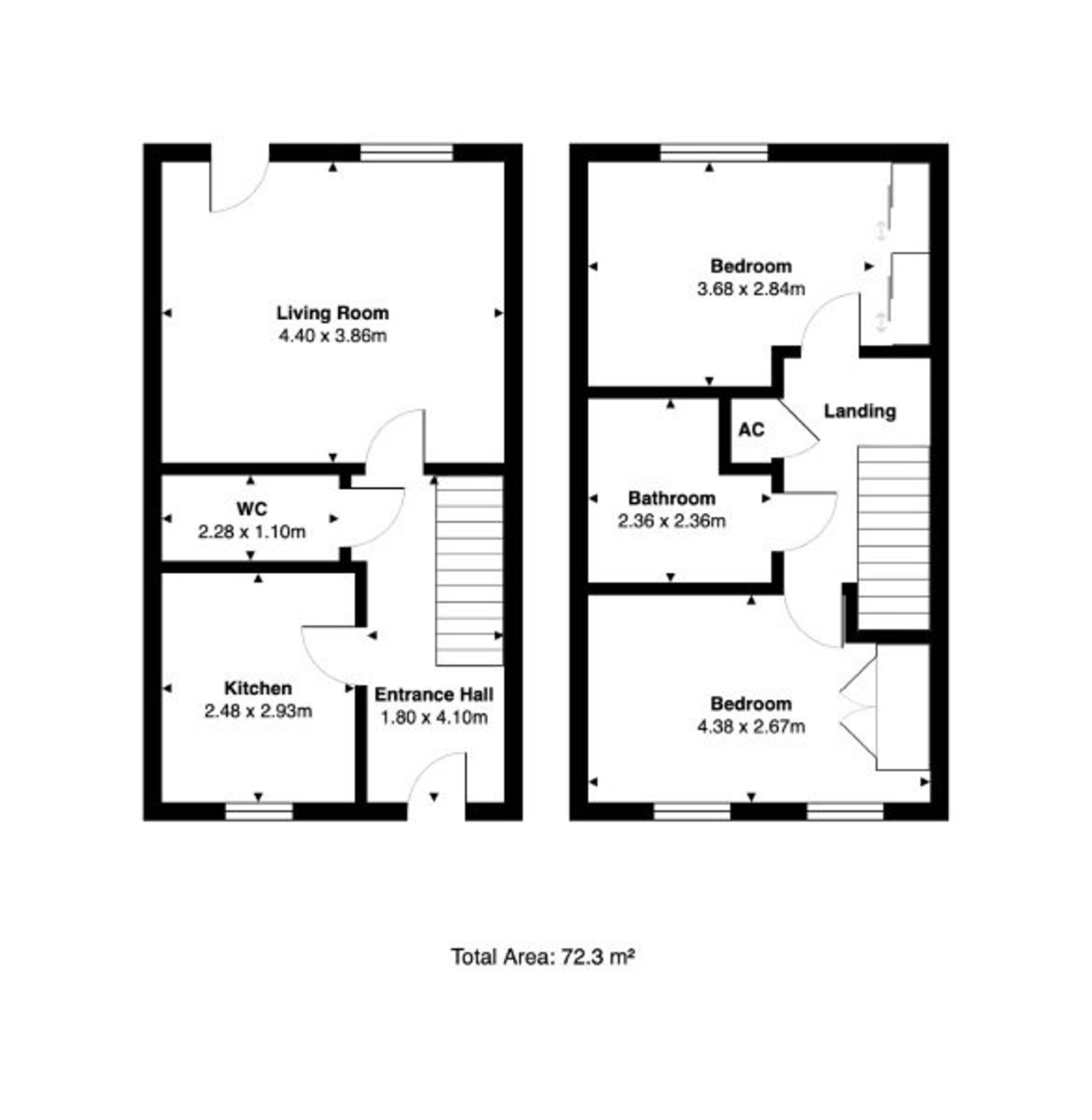 The two bedrooms span the full width of the property, offering a spacious retreat. Built in wardrobes complete both of these bedrooms. Both rooms are served by a generous modern size family bathroom. A built-in storage cupboard completes the layout on the landing.