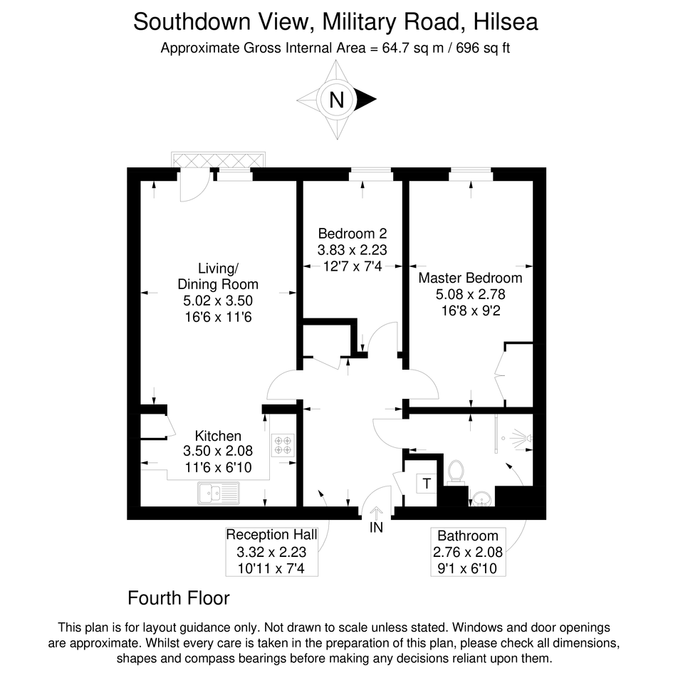 This two‑bedroom, fourth‑floor apartment in Hilsea, Portsmouth offers practical living with the convenience of a communal lift.