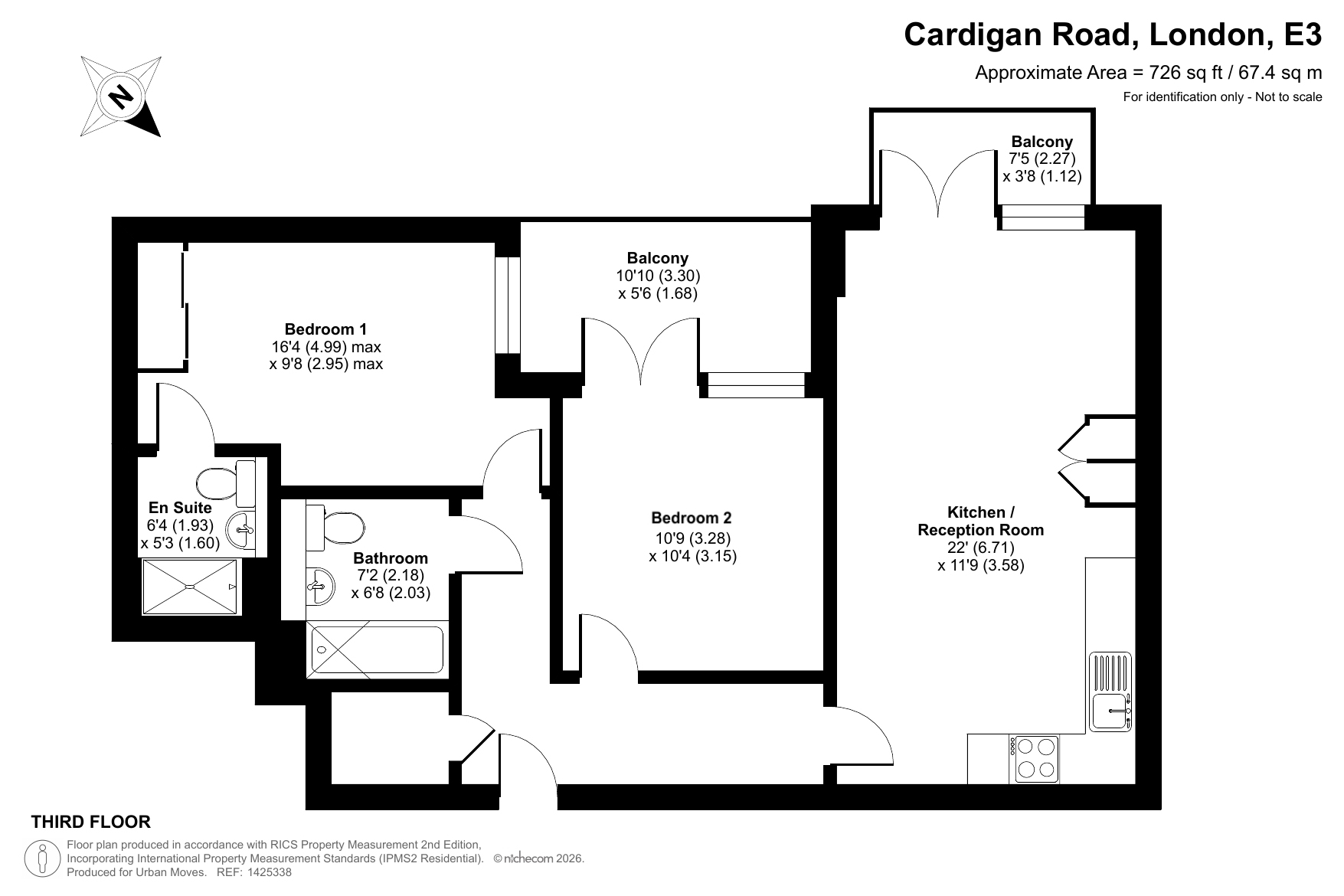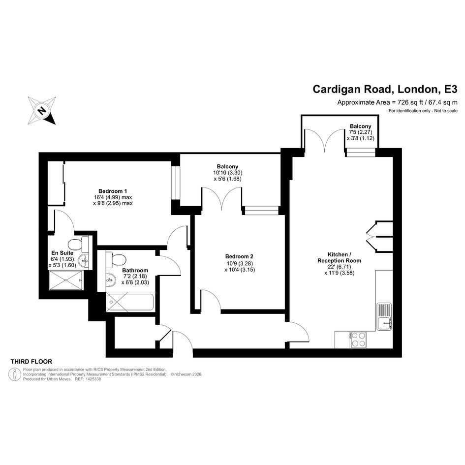 This smartly-presented property is on the third floor and has a twenty-two-foot reception room with open-plan kitchen area and double doors leading out onto a courtyard (south-west) facing balcony. There is a main bedroom with fitted, mirror-fronted wardrobe and en-suite shower room plus a second double bedroom that opens onto an additional, recessed, balcony. The hallway provides useful built-in storage as well as access to the bathroom. Well insulated walls, modern double glazing and a communal heating/hot water system make for a good energy-efficiency rating. Bow Road, Bow Church and Mile End Stations (for District/Hammersmith & City Lines, DLR and Central Line respectively) are all within easy reach and the local buses and cycle superhighway routes offer other options. An Anytime Fitness gym and a Tesco Express occupy the ground-floor retail units of the development and there many other shops/amenities close by. Old Ford Primary School, which just a short walk away, is Ofsted-rated 'Outstanding'.