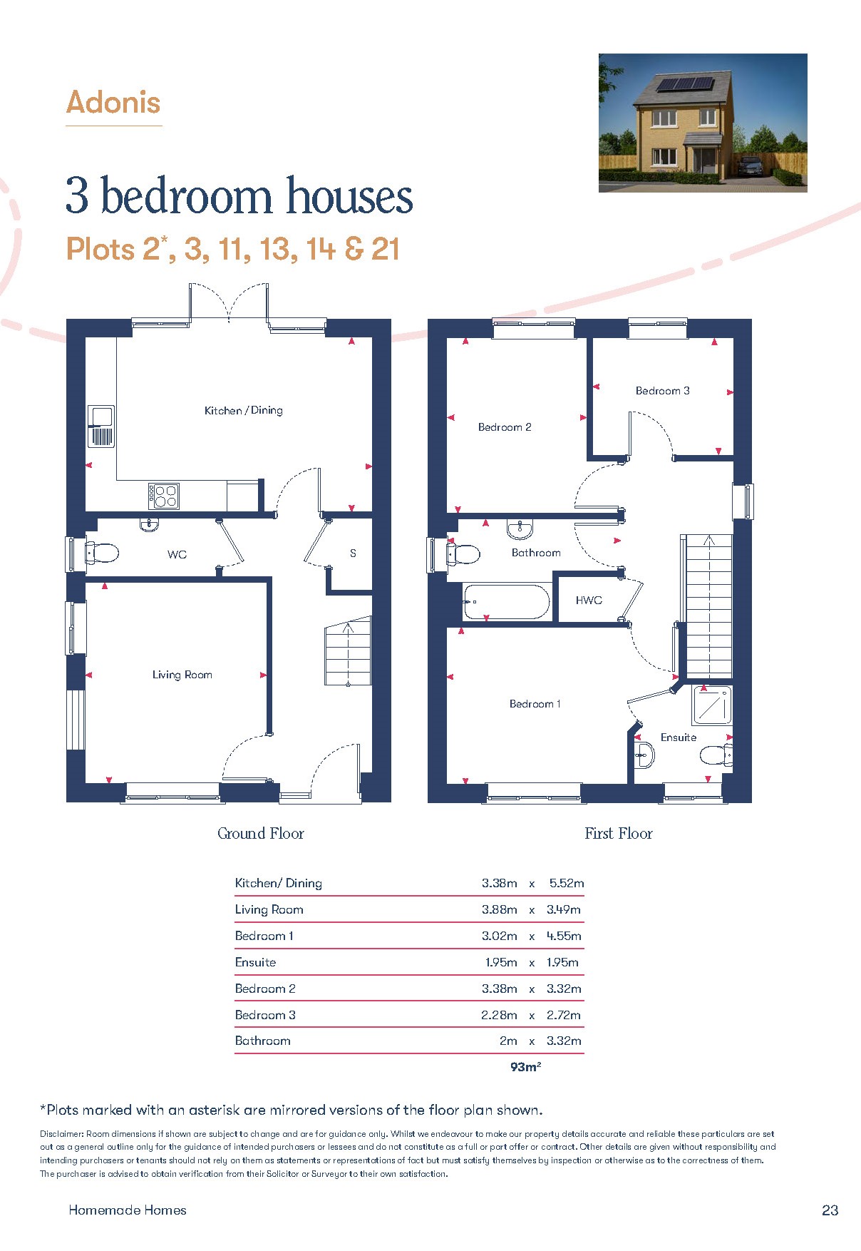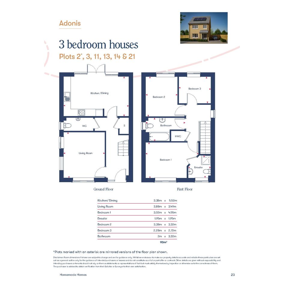 Plot 2 at Litlington Edge (The Adonis), a well-proportioned 3 bedroom semi-detached home offered through Shared Ownership. You can buy a share between 25% and 75% to suit your budget, then pay rent on the remaining share. This plot is a mirrored version of the floor plan shown.