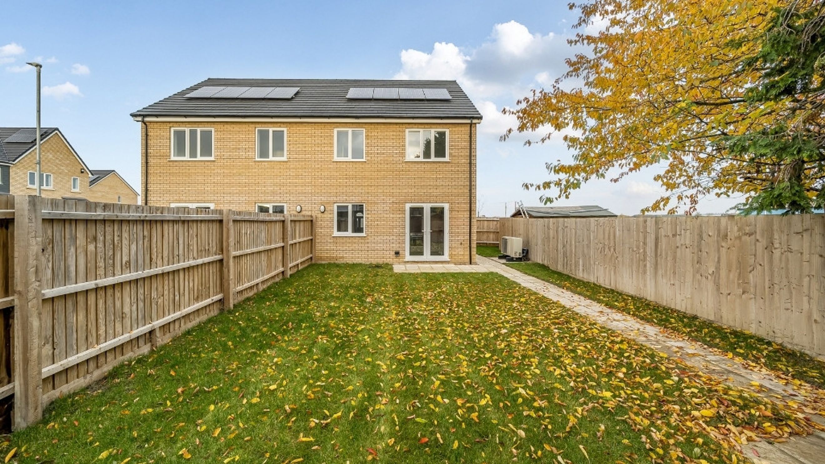 Upstairs, Bedroom 1 includes an en suite, with 2 further bedrooms served by a family bathroom. A dedicated cupboard for home services adds practical storage where you need it most.
