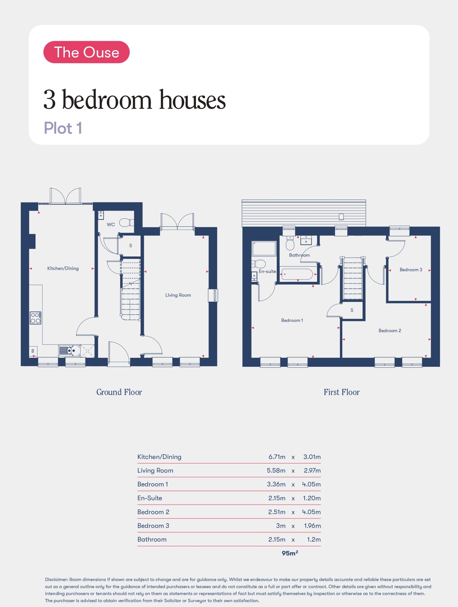 On the ground floor, the kitchen/dining room is generous (6.71m x 3.01m), with a separate living room (5.58m x 2.97m) for quieter evenings. Upstairs you'll find 3 bedrooms, including a main bedroom with en-suite, plus a family bathroom. Approx internal area: 95 m² (about 1,023 sq ft).
