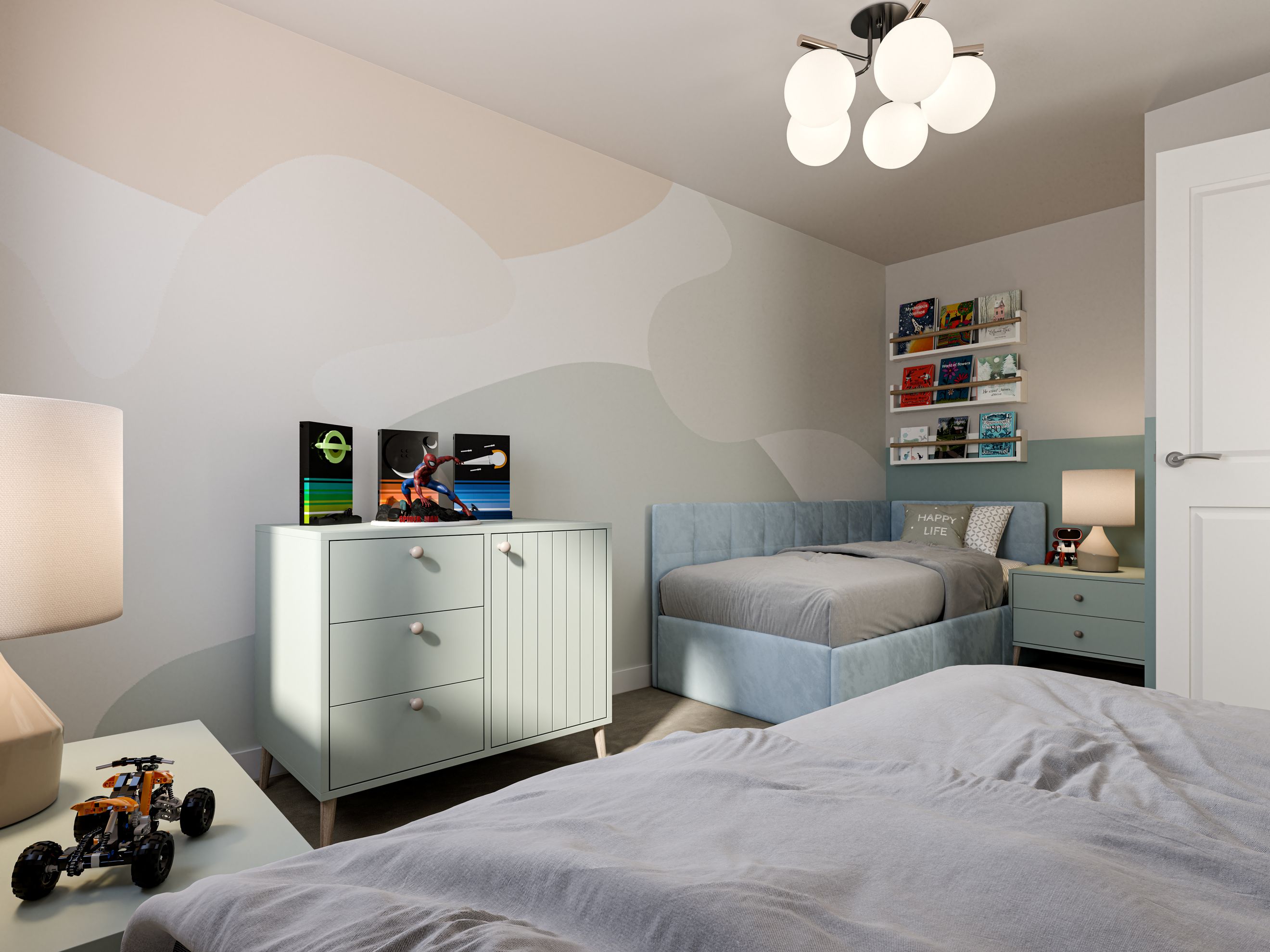 Outside, the front of the property is landscaped and includes parking with an EV charging point while the private rear garden comes ready turfed.