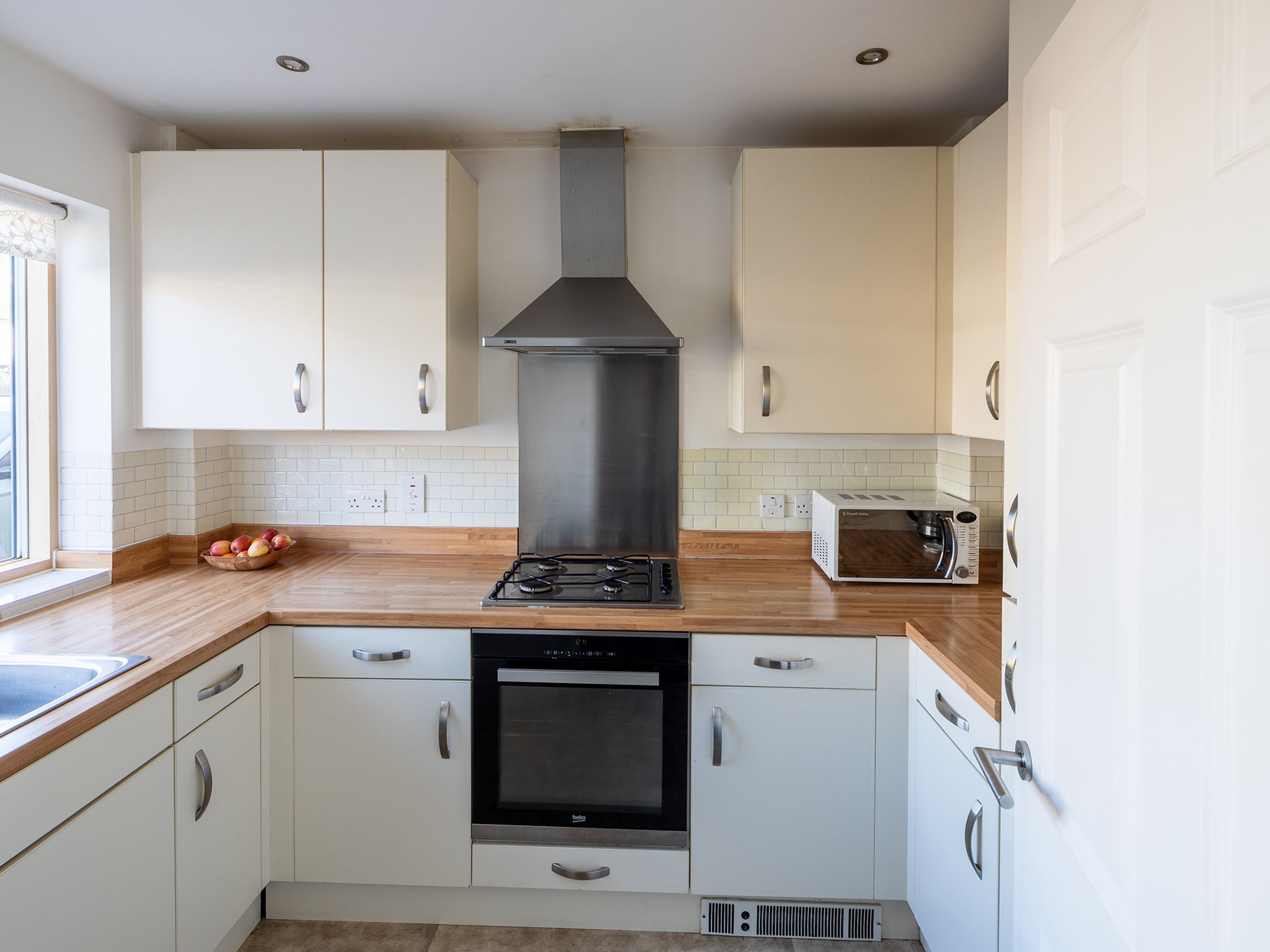 As you enter the property there is a spacious hallway, with an understairs storage cupboard and a large downstairs toilet. From the hallway there is a kitchen with ample cupboard space including a larder style cupboard. There is a built in fridge freezer, gas hob and electric oven with space for a washing machine.