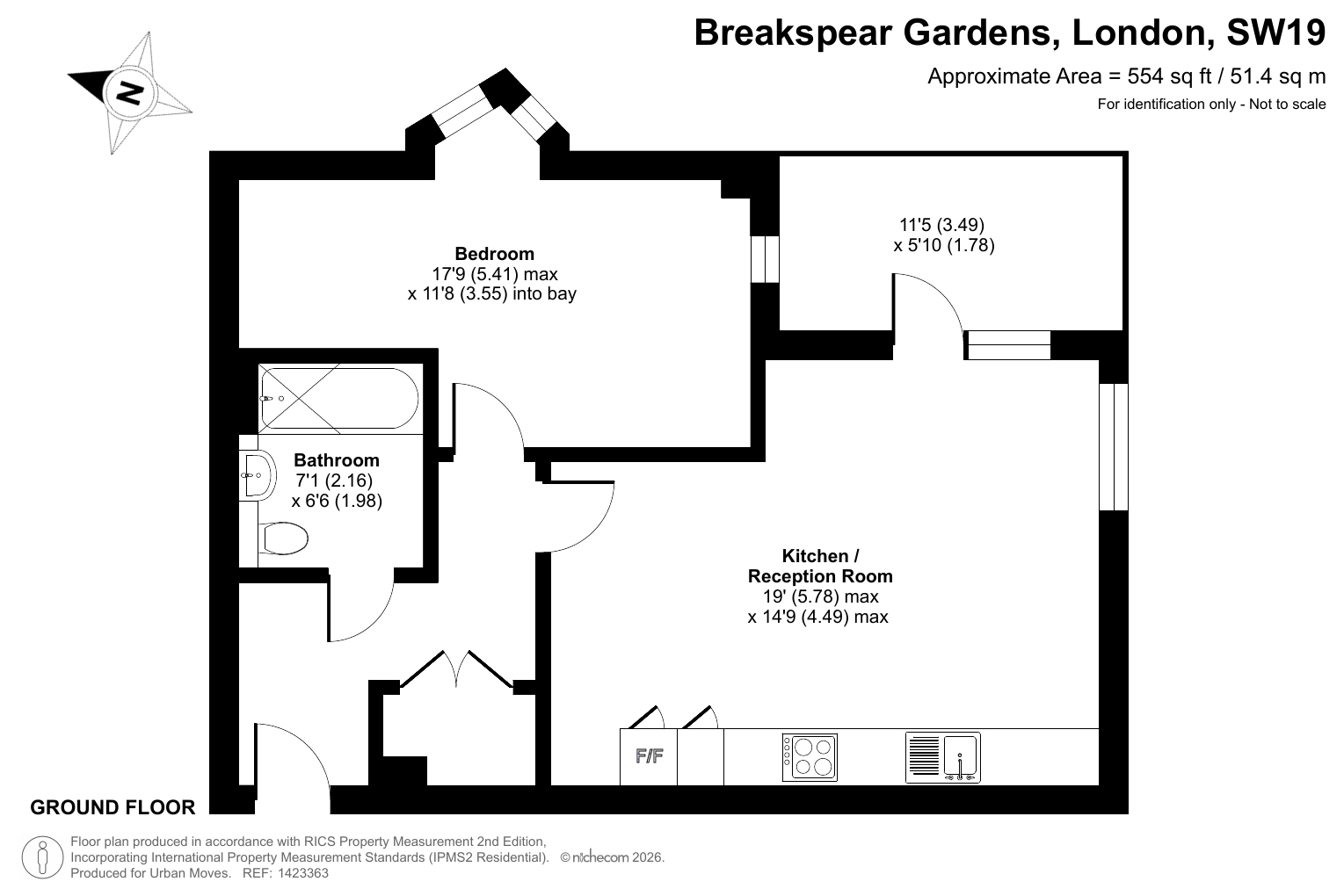 This well-presented apartment is at entrance level but could be considered first floor due to the height difference across the site. The property has a dual-aspect reception room with a door leading out onto a corner balcony which also faces both east and south. The open-plan kitchen features white gloss units and integrated appliances. There is a spacious bedroom, with triangular bay window, and a sleek, fully-tiled bathroom. A storage/utility cupboard has been provided in the entrance hallway and demanding insulation standards, high performance glazing and a modern gas central heating system all contribute towards a very good energy-efficiency rating. Disraeli House is part of a gated development that borders a small nature reserve just off Fortescue Road. Colliers Wood Station, for access to the Northern Line, is just a short walk away. There are shops nearby and Wandle Park offers green, open space to enjoy.
