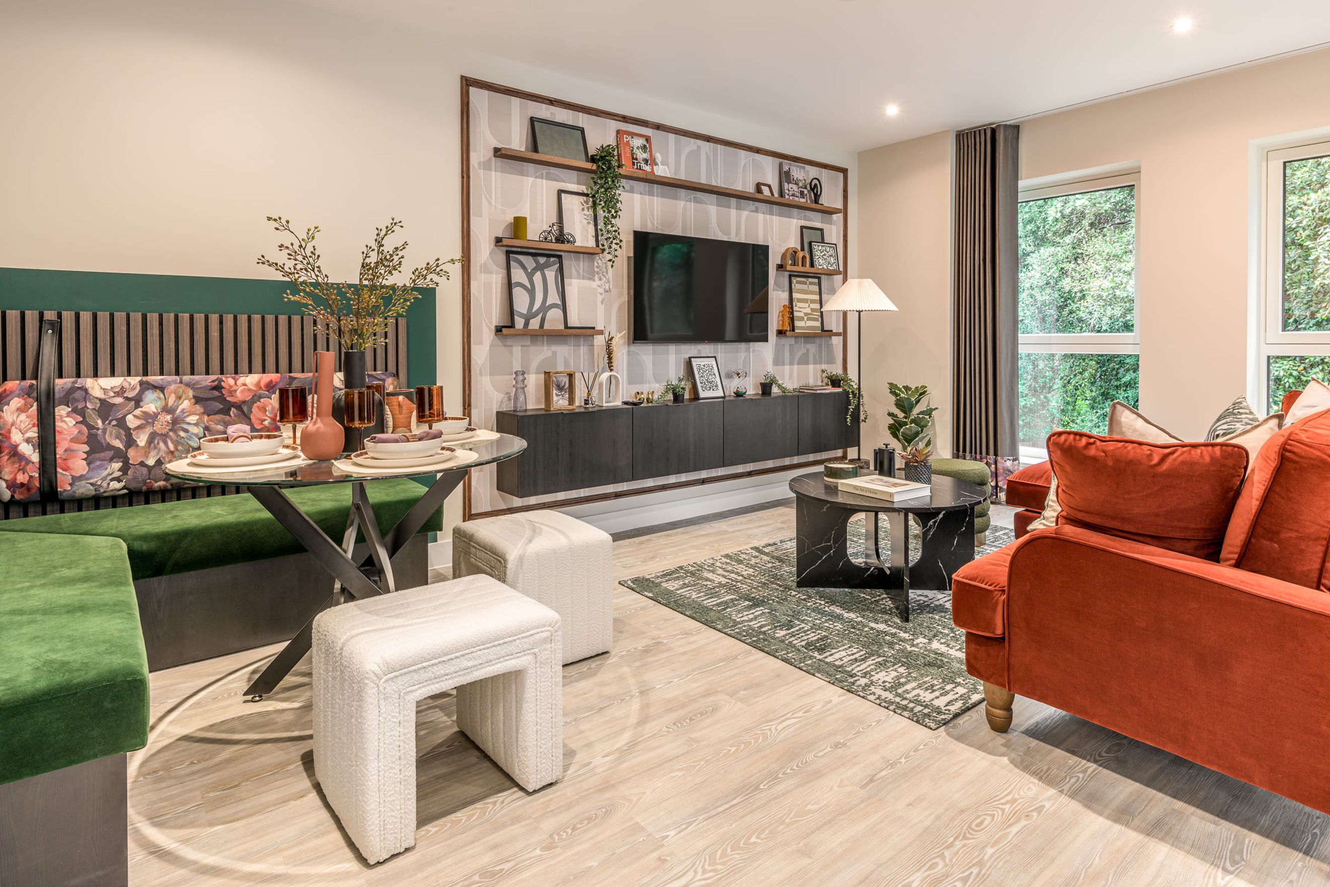 - Sustainably designed homes including solar panels and air source heat pumps