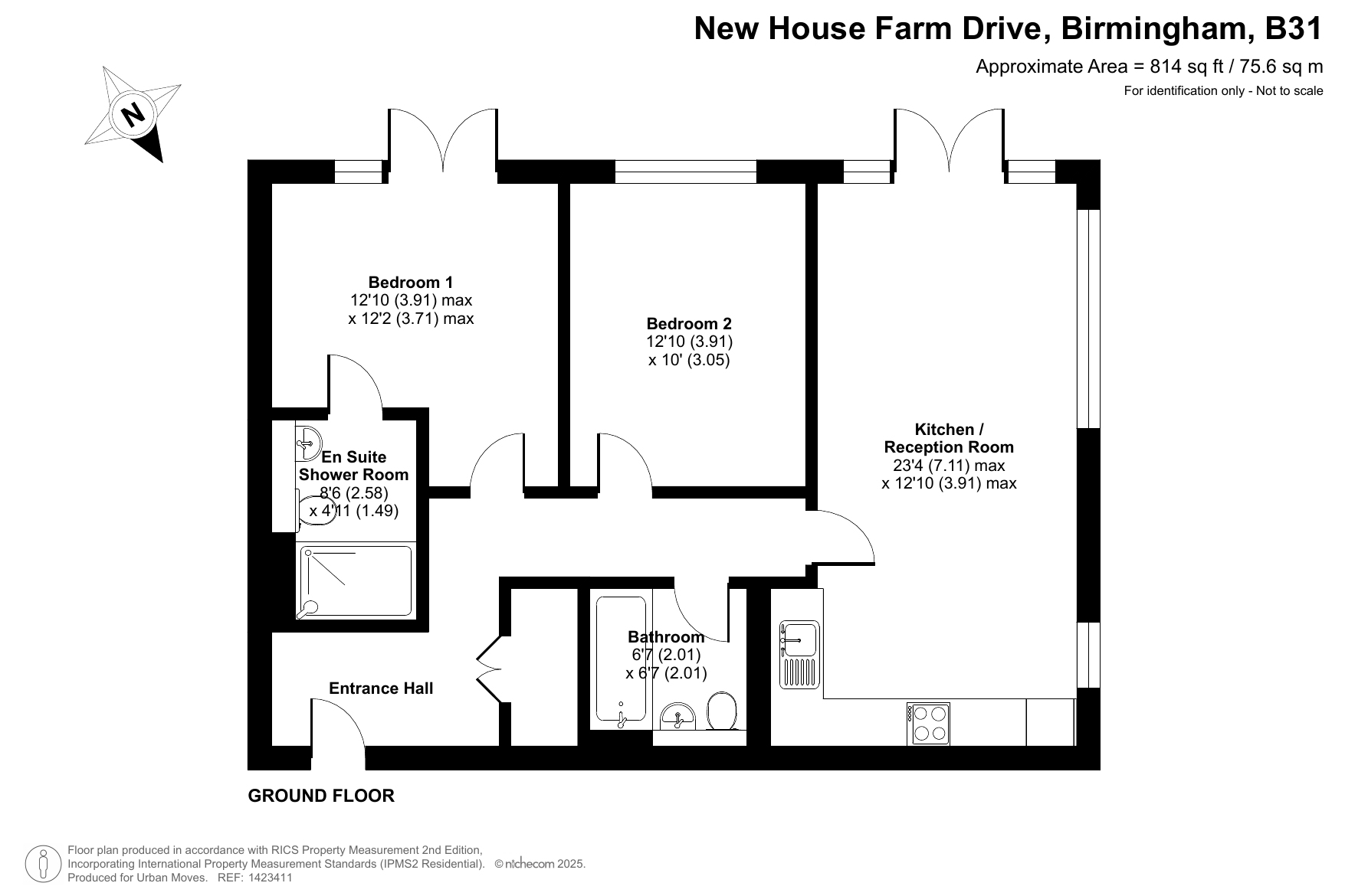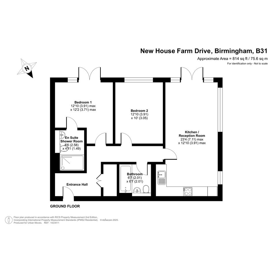 This recently-built and smartly-presented flat is on the ground floor and has a twenty-three-foot, dual-aspect reception room with open-plan kitchen area featuring integrated appliances. Both bedrooms are generously-sized doubles, one has an en-suite shower room and the other is just across the hallway from the spacious and stylish bathroom. A large storage/utility cupboard has been provided in the entrance hall and modern insulation standards combined with high performance glazing make for a good energy efficiency rating. Patio doors in the reception and main bedroom offer direct access to the communal grounds. Woodbrooke House sits in pleasant, leafy surroundings with a parking area that includes two spaces allocated to this flat. The A38 provides a direct route into Birmingham city centre or, alternatively, the shopping centres and railway stations at Northfield and Selly Oak can also be easily reached by bus or bike.
