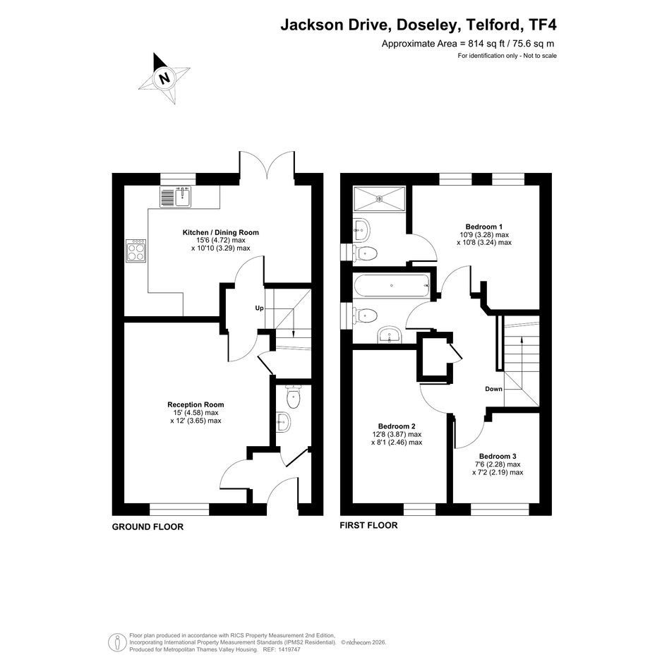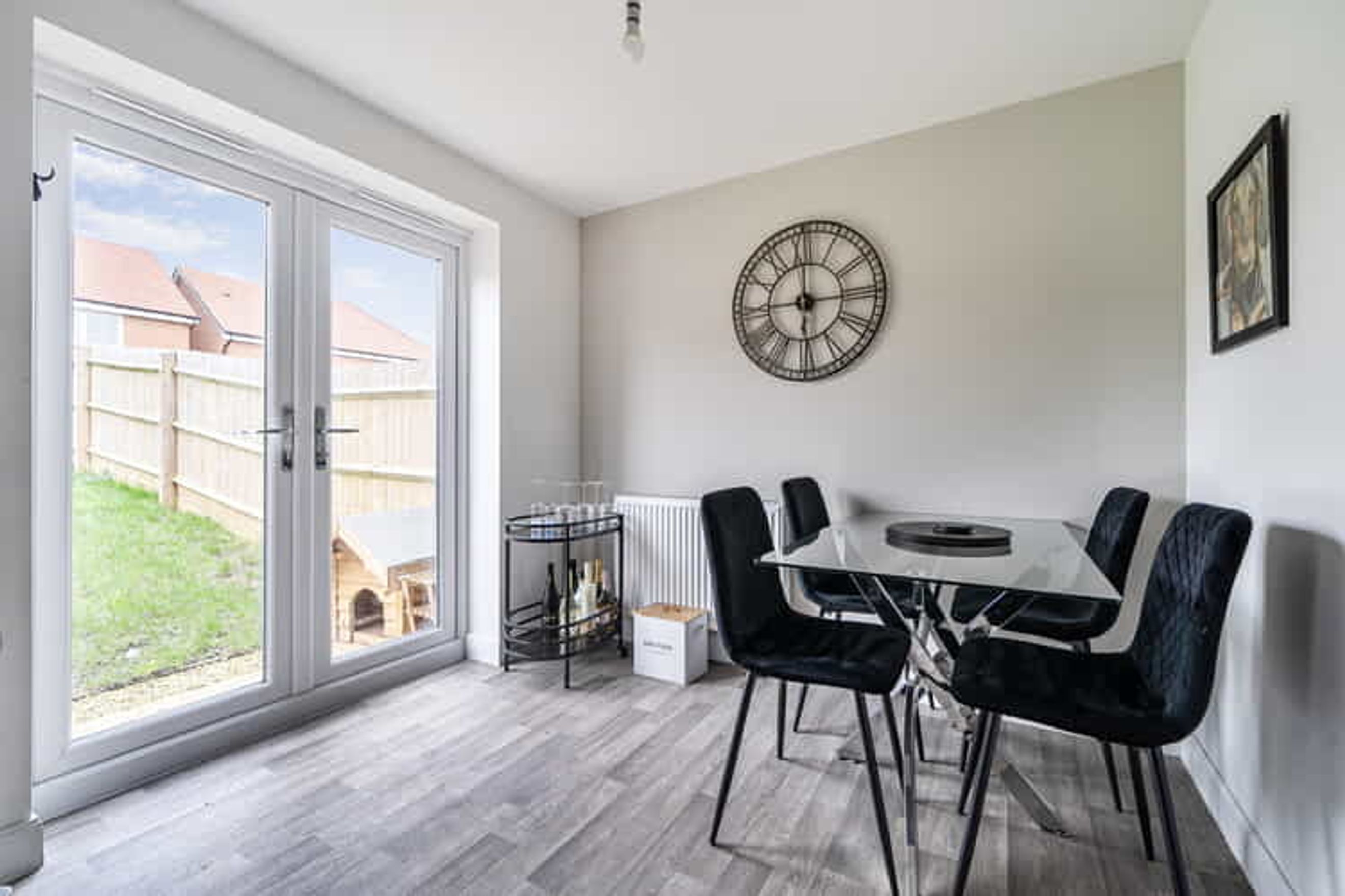 The property on the ground floor comprises an entrance hall, a living room, a modern fitted kitchen with a dining area and a separate WC. On the first floor, there are three bedrooms (one ensuite) and a family bathroom. Perfect for small families.