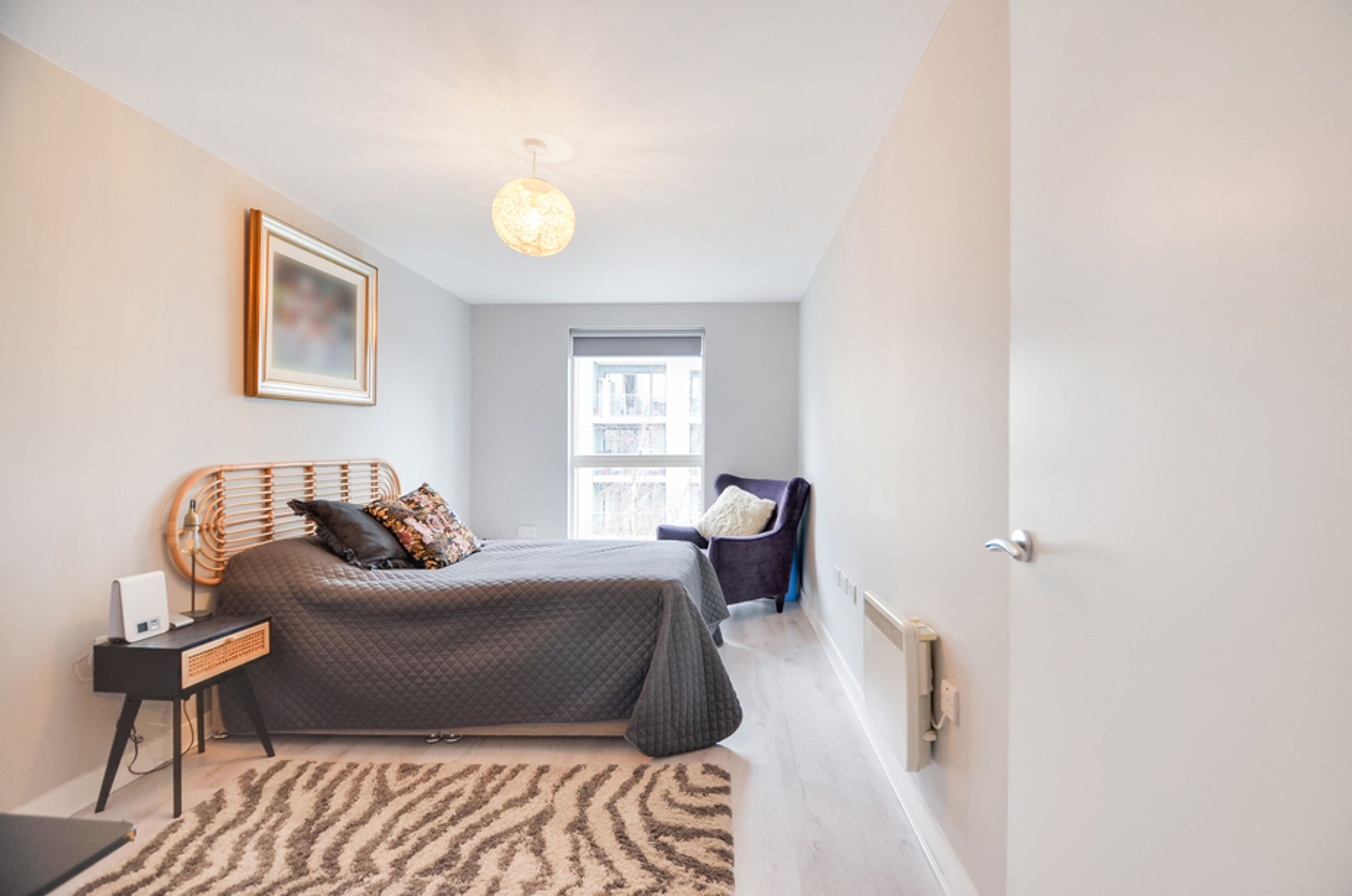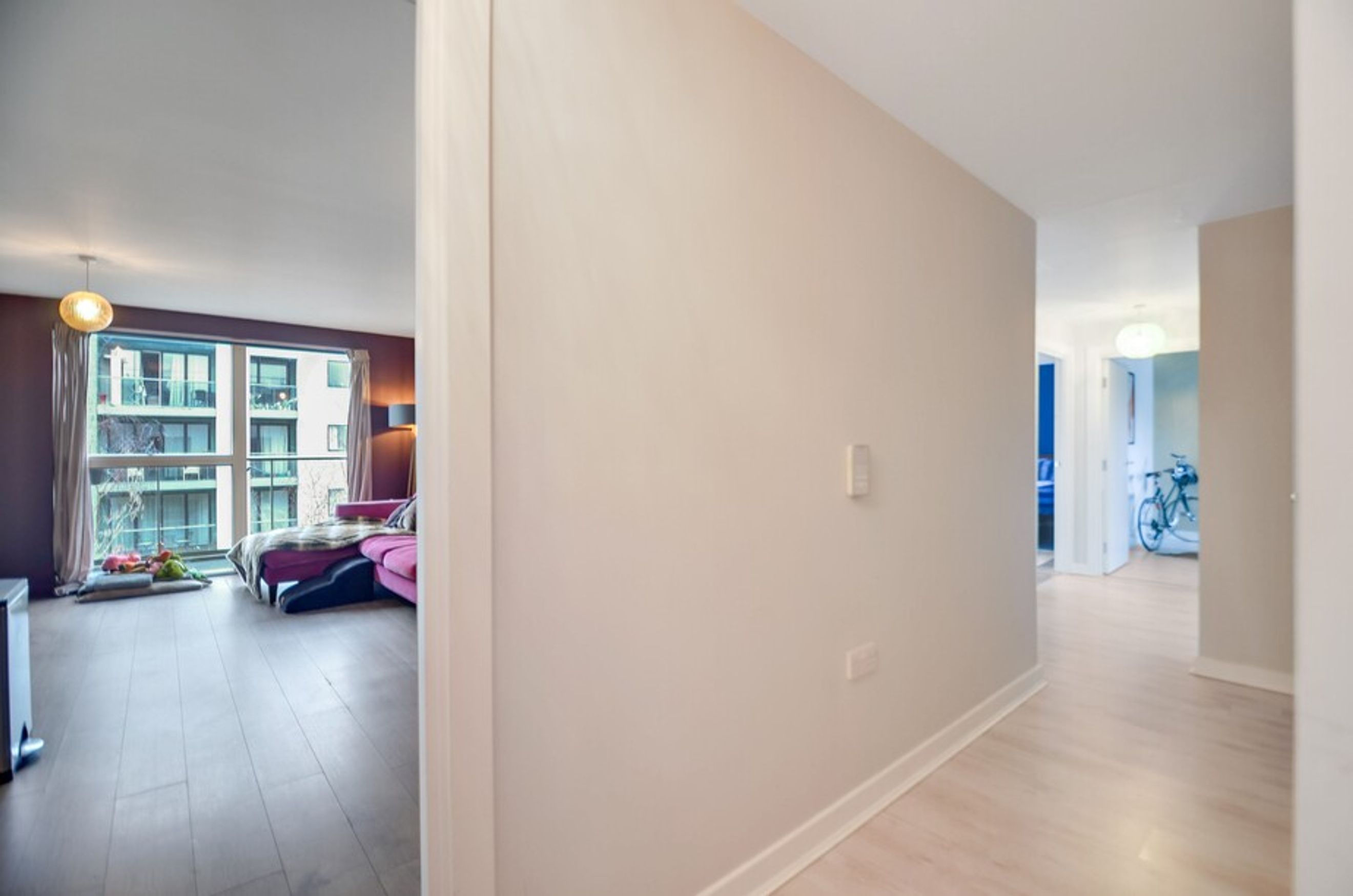 This bright home offers open-plan living with floor‑to‑ceiling windows, a modern kitchen, and a private balcony. The property also benefits from secure underground bike storage and a private allocated parking space for added convenience.