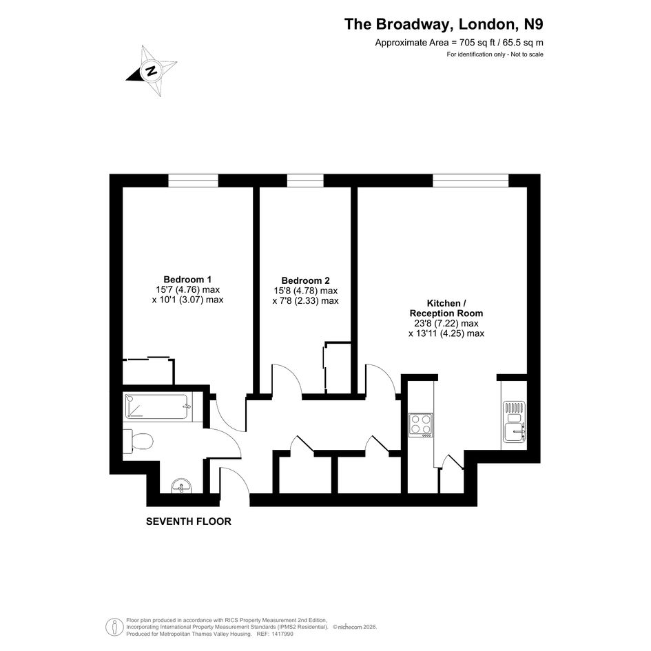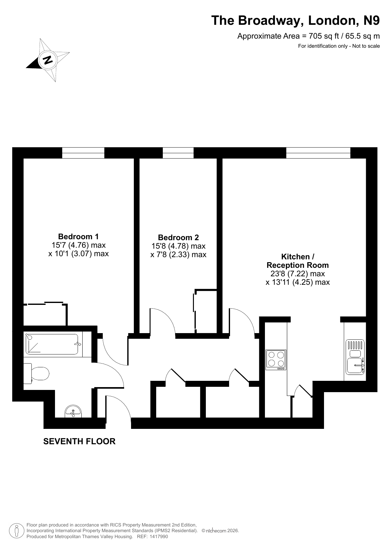 The property on the seventh floor comprises an entrance hallway, living/kitchen area, two bedrooms and a bathroom.