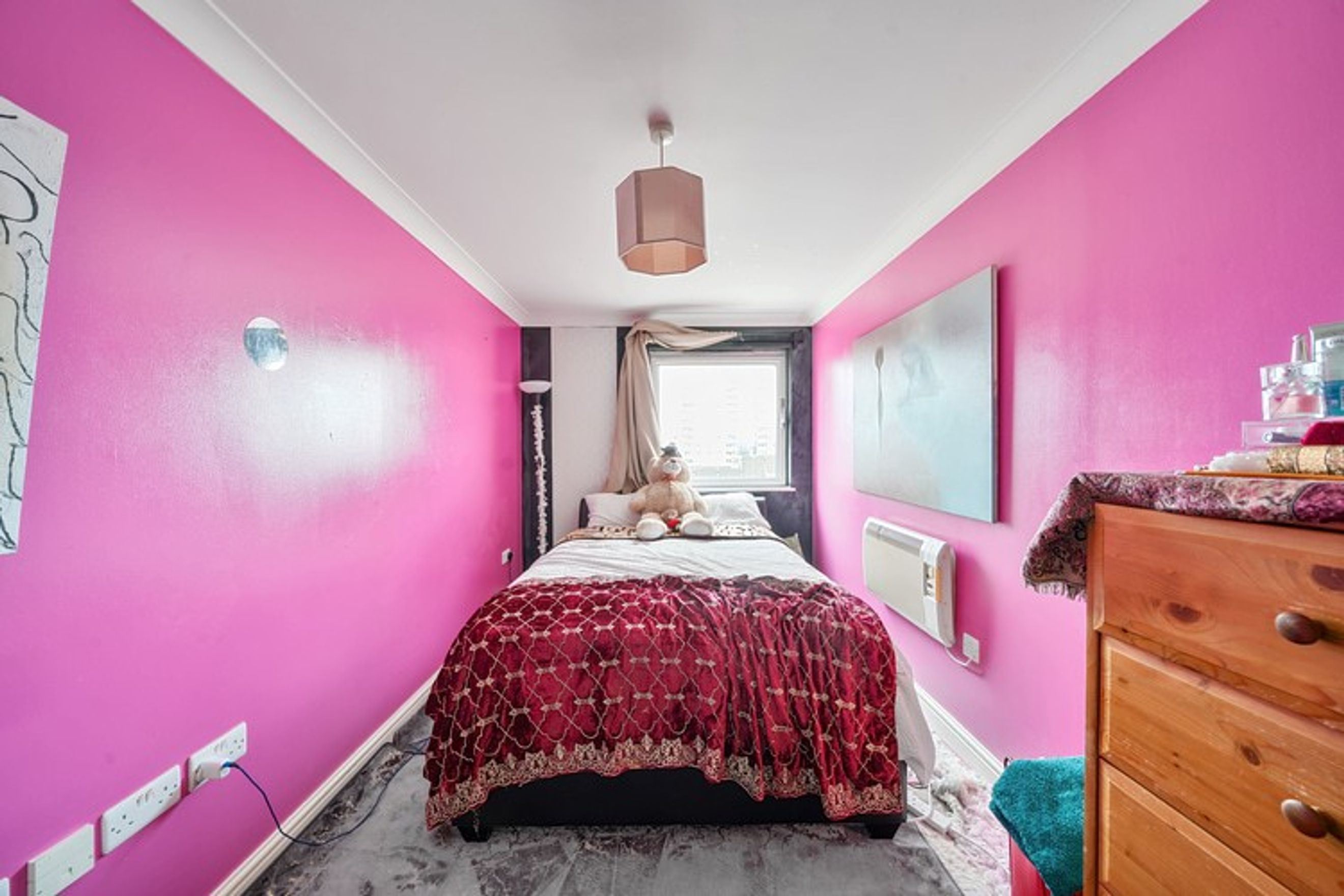 The property on the seventh floor comprises an entrance hallway, living/kitchen area, two bedrooms and a bathroom.