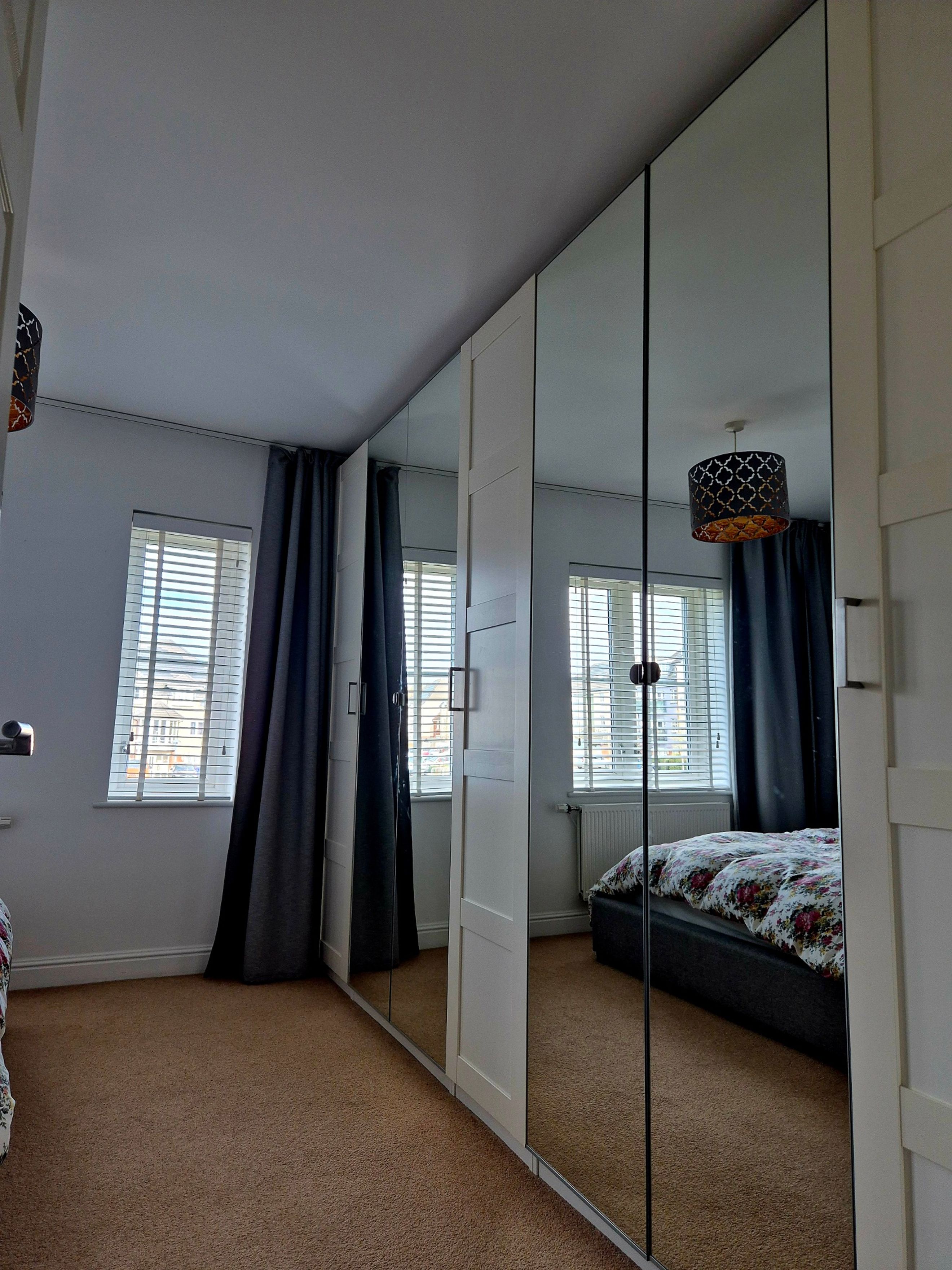 Upstairs, the home offers two double bedrooms, including a master bedroom with a built‑in wardrobe. There is ample internal storage throughout, complementing the property’s well‑arranged layout..